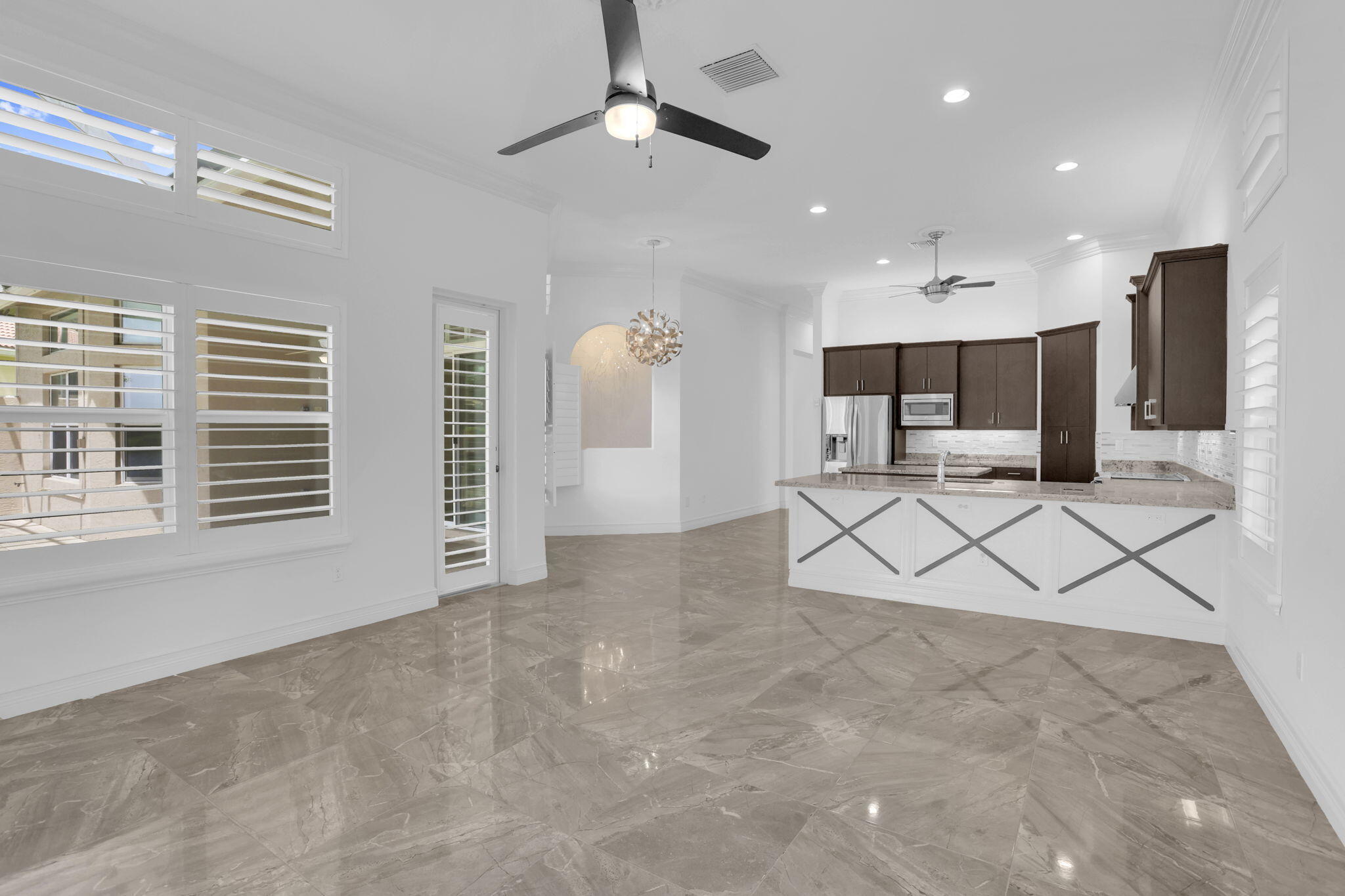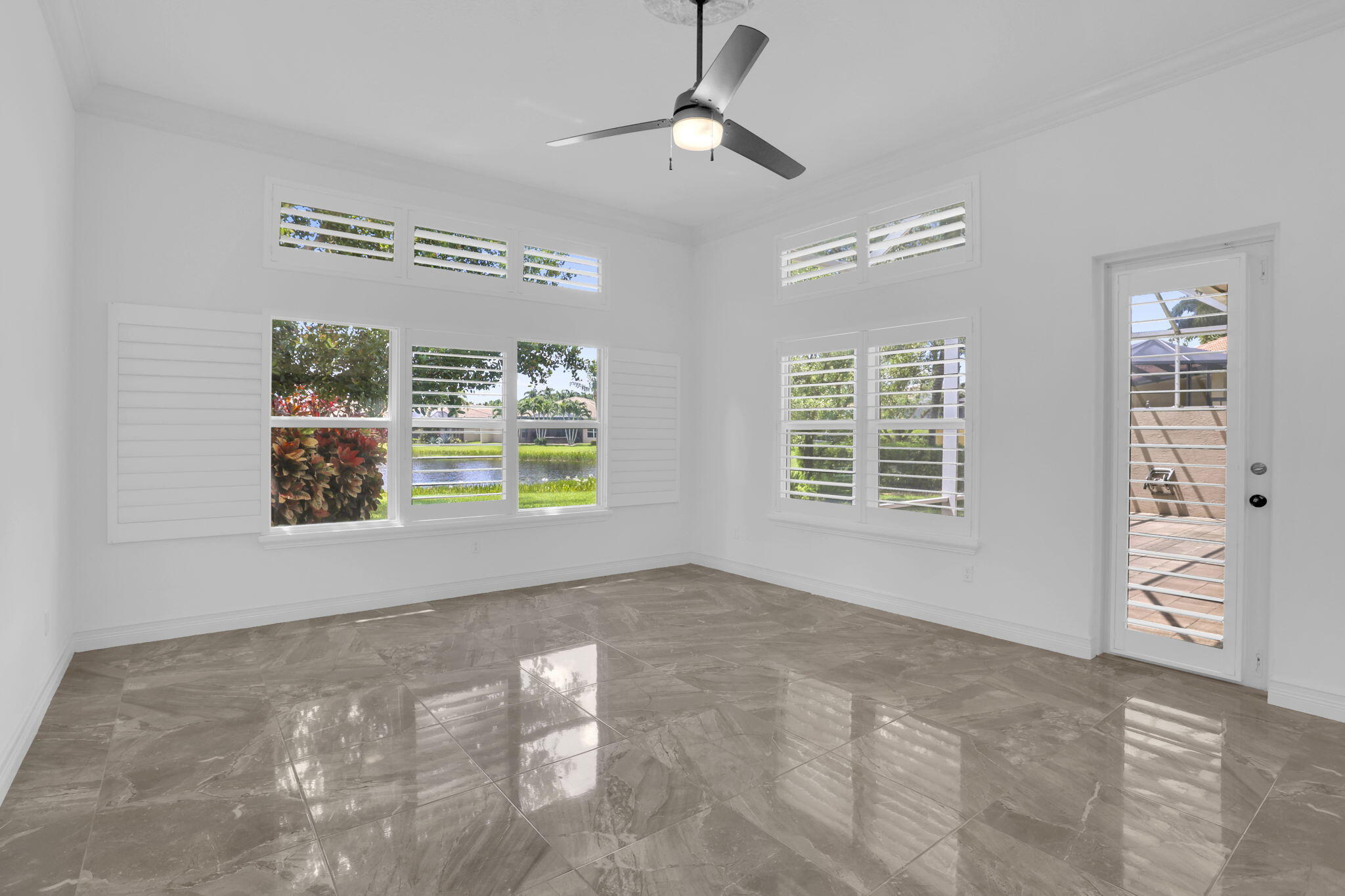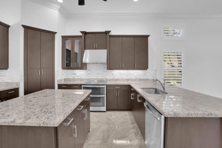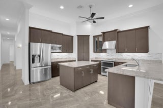 CLICK VIDEO TAB to view narrated video!4 Bedroom, 3 Bath 'Lydia' model with over $100K in Upgrades! Situated on a Builder's Premium Oversized Pie-Shaped Lakefront lot offering a widened driveway, walkway & Extended 2CG with Epoxy flooring! Boasting a Newly Painted Interior, Crown molding, Coffered ceilings, abundance of hi-hat lighting, Italian Tile flooring, Wood flooring in bedrooms, Central vacuum, Custom Plantation Shutters, French doors & Designer light fixtures! The Granite kitchen features stainless steel appliances, custom Espresso cabinetry with under cabinet Vent Hood, and center Island! An open floor plan designed for easy entertaining. The family room is open to the kitchen. Formal living and dining rooms. The master suite features custom built-out walk-in closets, upgradedGranite vanity layout with recessed make-up station, and large shower. Home is complete with Impact glass windows and doors, screened and pavered covered patio, and lush landscaping. Maintenance is $2,205.00 paid per quarter and includes lawn, alarm monitoring, manned gate, cable package, internet, and amenities. Valencia Cove is a premier 55+ lifestyle community featuring a spectacular 39,000 square-foot clubhouse and 10-acre outdoor recreational facility. Endless activities, trips, shows, and clubs of all types. The clubhouse features an expansive foyer and lobby, grand ballroom with raised stage and dance floor, four spacious card rooms, Cafe with indoor/outdoor seating, Arts and crafts room with kiln, Internet/Billiards room, Office, Catering kitchen with separate demonstration cooking studio, Yoga & exercise studio with ping pong, fully equipped fitness center and men's and women's locker rooms with steam rooms, massage room and showers. There are 4 pools - a beautiful Resort-style pool and Shade Pavilions, Lap pool with Swimmers' Lap Lanes, Resistance walking pool, Grandchildren's wading pool, and an Outdoor whirlpool spa. There are 8 har-tru tennis courts with shade pavilions and lighting for night play, tennis pro shop, tennis pro, league play, 6 pickleball courts with league play, 2 bocce courts, half-court basketball and walking/jogging/biking paths throughout and just outside the community. Valencia Cove is conveniently located near shopping, restaurants, houses of worship and major highways!