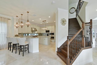 Fully furnished luxury rental in the prestigious gated Royal Palm Polo community, centrally located in Boca Raton. This expansive Ternbridge II model boasts a grand two-story foyer, elegant living and dining rooms with coffered ceilings, a spacious great room with soaring views of the lake and fountain, and a gourmet kitchen with top-tier appliances and casual dining area with rear staircase access. Upstairs, the lavish primary suite features dual walk-in closets and a spa-style bath. Additional highlights include loft, ensuite bedrooms, and first-floor laundry. Enjoy a sparkling pool overlooking the lake, just a short walk to the clubhouse, gym, tennis courts, and resort-style amenities. Experience refined, resort-style living in one of Boca's most sought-after neighborhoods.