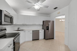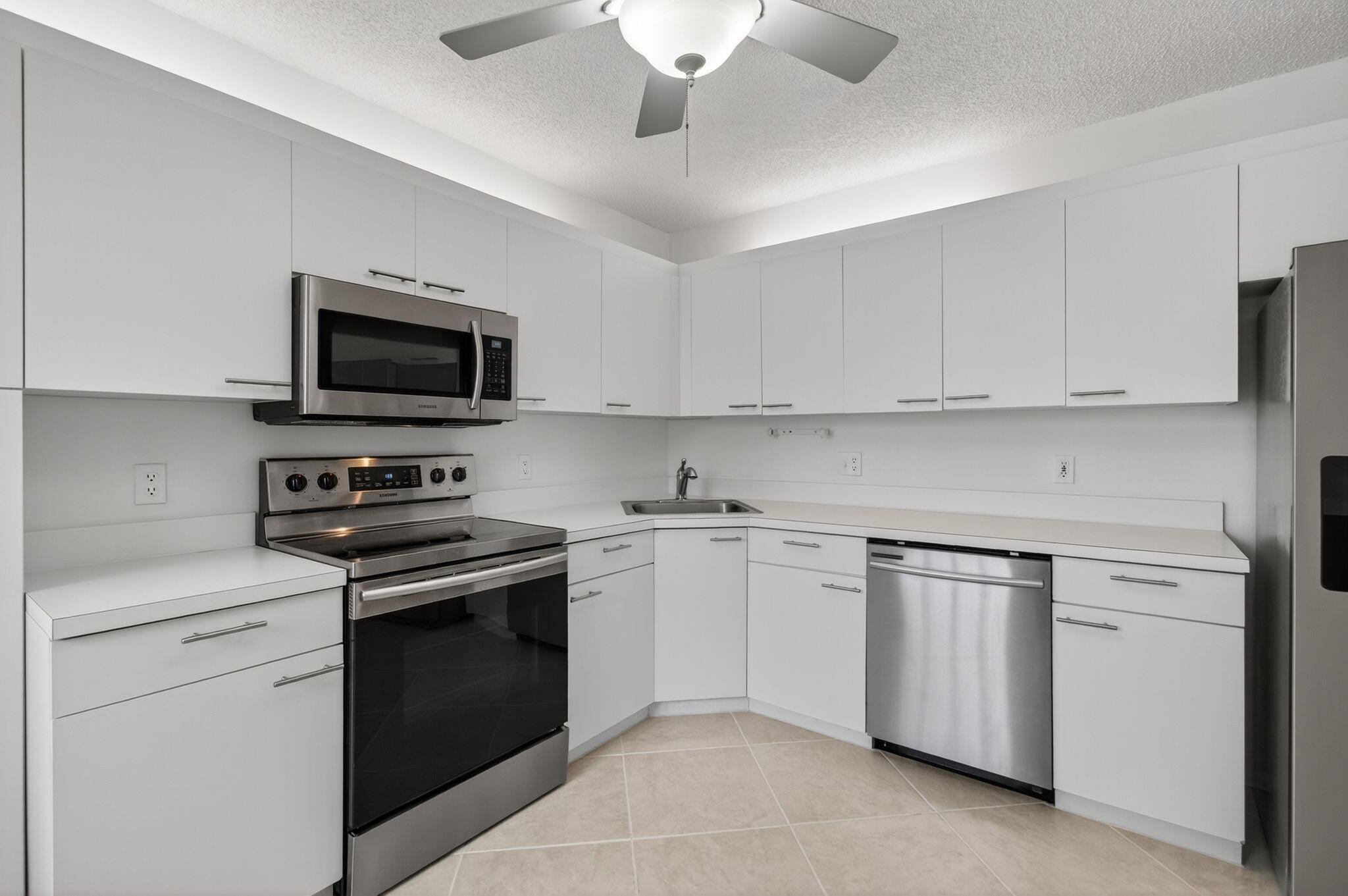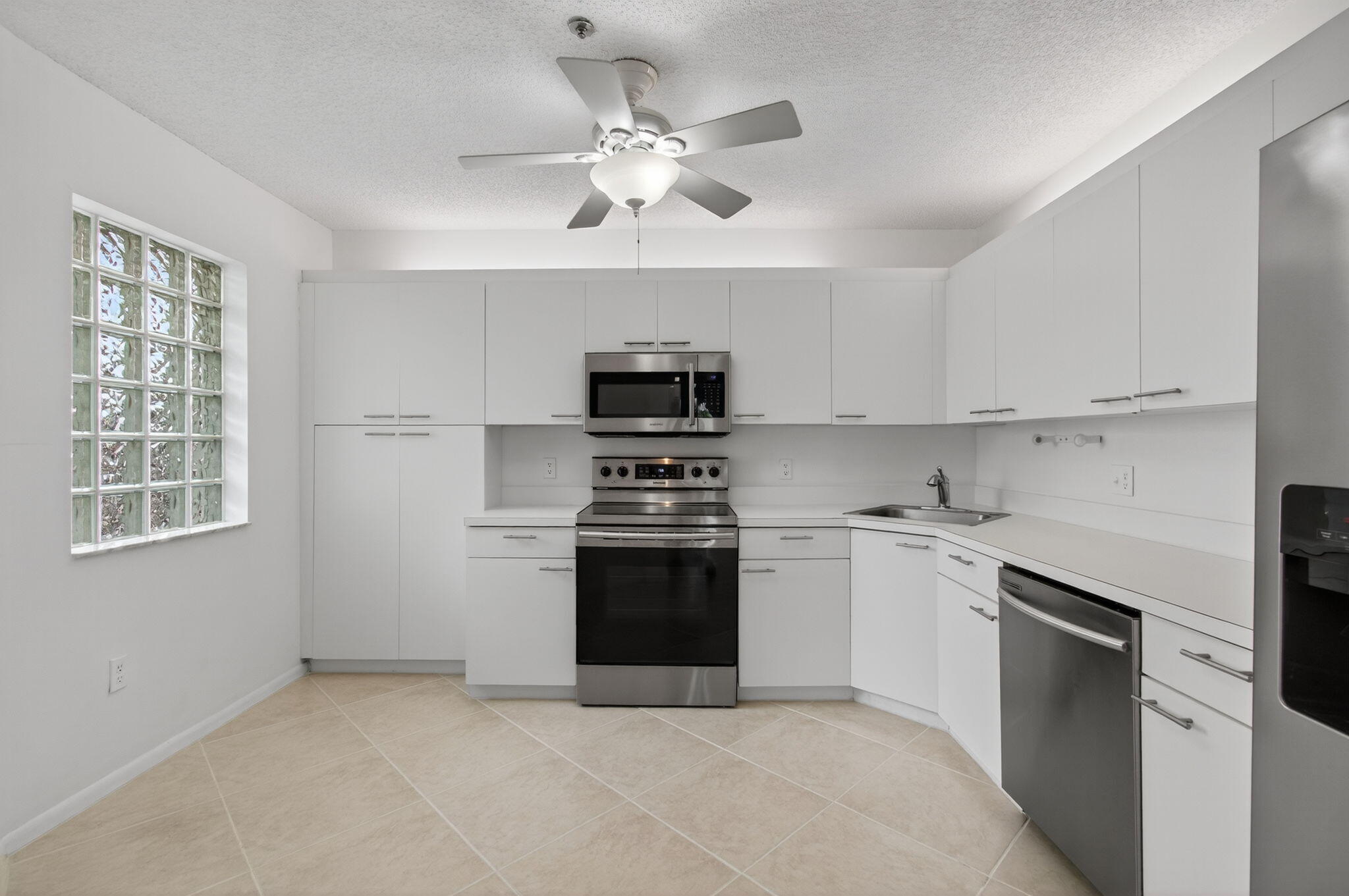EXPERIENCE THIS STUNNINGLY AFFORDABLE WATER VIEW 3BR/2BA condo with elevator access in the all-ages gated community of resort-style Platina in Boynton Beach! Enjoy vaulted ceilings for a spacious feel, a window-enclosed balcony, a large kitchen with stainless steel appliances and eat-in area, and a washer/dryer in unit. The primary suite features a walk-in closet and en-suite bath. The enclosed balcony and all 3 bedrooms have views overlooking the water. Dues include water, sewer, cable (DirecTV), and internet. The community offers 3 on-premises pools, tennis courts, pickleball, shuffleboard, and a modern clubhouse with a cafe open for breakfast and lunch. An unbeatable price for this Florida gem--schedule a showing today!