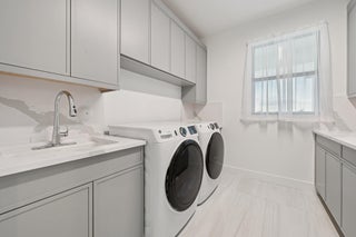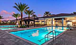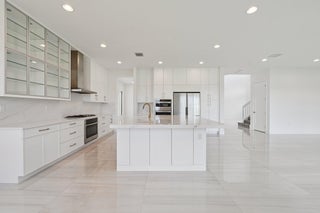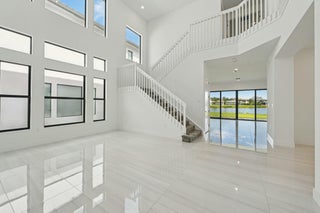 Come & See this Brand New Lakefront Home | 5BD + Den | Designer Finishes Throughout. Stunning new construction home with expansive long lake views and premium upgrades throughout. This spacious 5-bedroom home showcases a rare his-and-her bathroom layout in the primary suite, paired with an oversized walk-in closet. Porcelain tile flooring flows seamlessly through the main level, complementing a chef-inspired kitchen with an apron-front sink, full backsplash, gas cooktop, and elegant gold hardware. All bathrooms feature luxury finishes and refined gold accents. Impact glass and a thoughtfully designed open floor plan blend elegance with everyday comfort, all within a community that truly has it all!