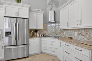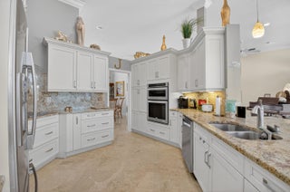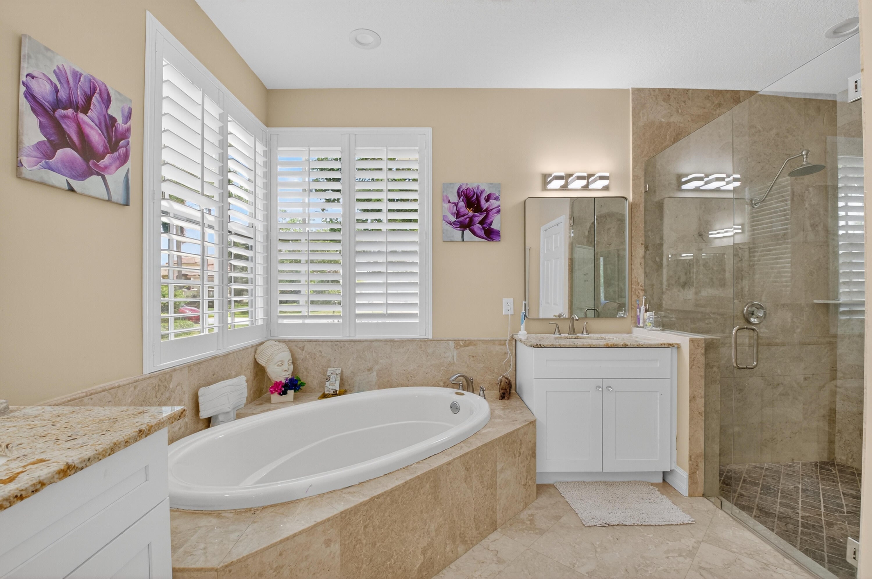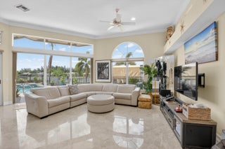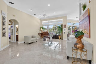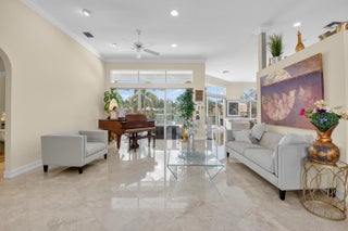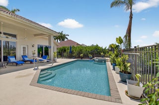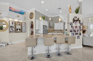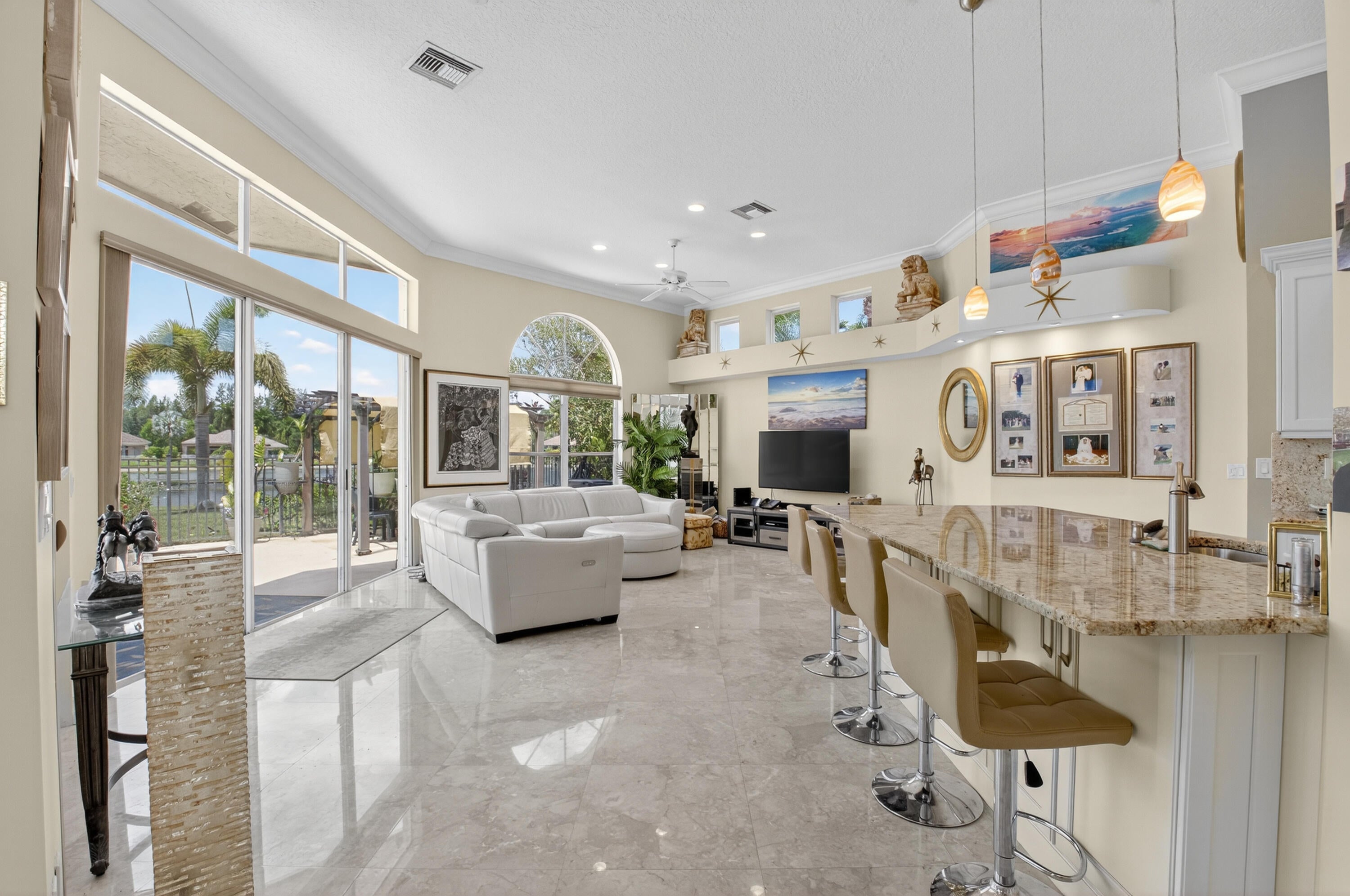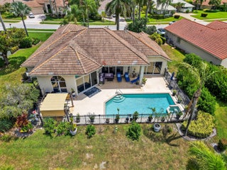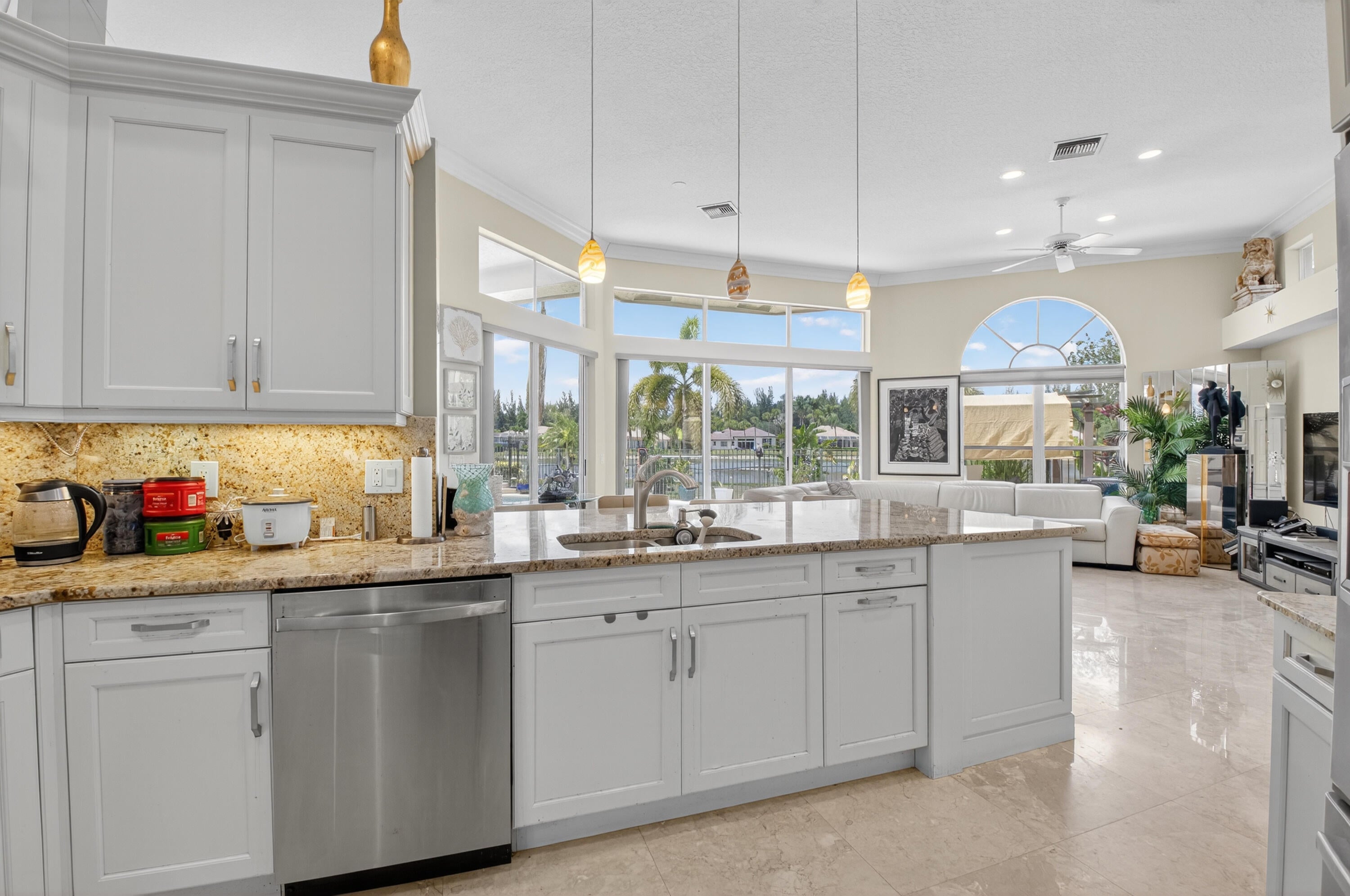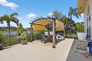This beautifully upgraded home features a bright, open floor plan with marble flooring and abundant natural light. The stunning kitchen serves as the centerpiece of the home with bar seating, ample storage, and an easy flow for entertaining. Two spacious living areas enjoy sliding doors that fill the rooms with light and invite you outdoors. The primary suite offers serene views of the pool and lake, with sliding doors that create a seamless indoor-outdoor living experience. Its spa-like bath includes a soaking tub and upgraded finishes. Step outside to your private retreat, where a spacious covered patio, pool, and spa overlook the tranquil lake -- the perfect setting for year-round outdoor living.Additional highlights include a cabana bath, large pantry, recessed lighting, and a 2.5-car garage. Located in the desirable Aberdeen Country Club, membership is required, offering world-class amenities and a vibrant community lifestyle.