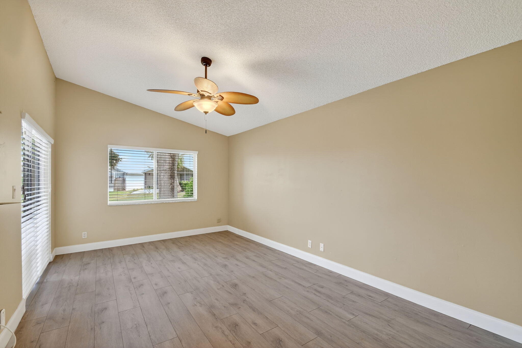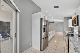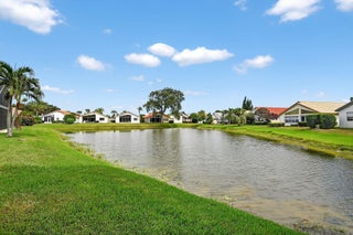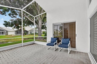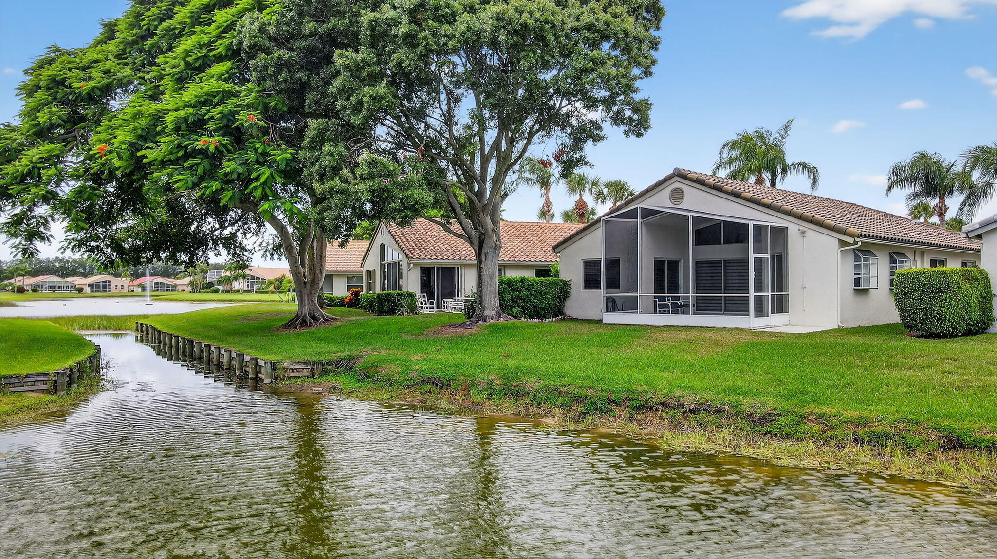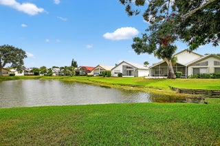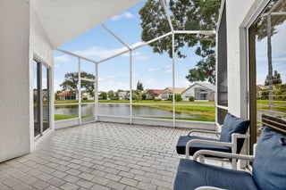 Welcome home to this Beautiful 3 bed, 2 bath lakefront home in the fabulous low HOA 55+ community of LAKERIDGE! Enjoy the stunning kitchen w/ granite counter tops, glass tile back splash, white cabinetry & stainless appliances. The extended roofed screened patio looks over the serene lake, perfect for entertaining, or enjoying quiet moments. Primary suite boasts dual sinks, soaking tub and separate shower as well as access to patio. The home boasts tile floors throughout living areas, laminate in bedrooms. Roof 2018, water heater 2024. Den/3rd Bedroom has double glass doors. Don't miss this move-in ready gem in an active, amenity-rich neighborhood!