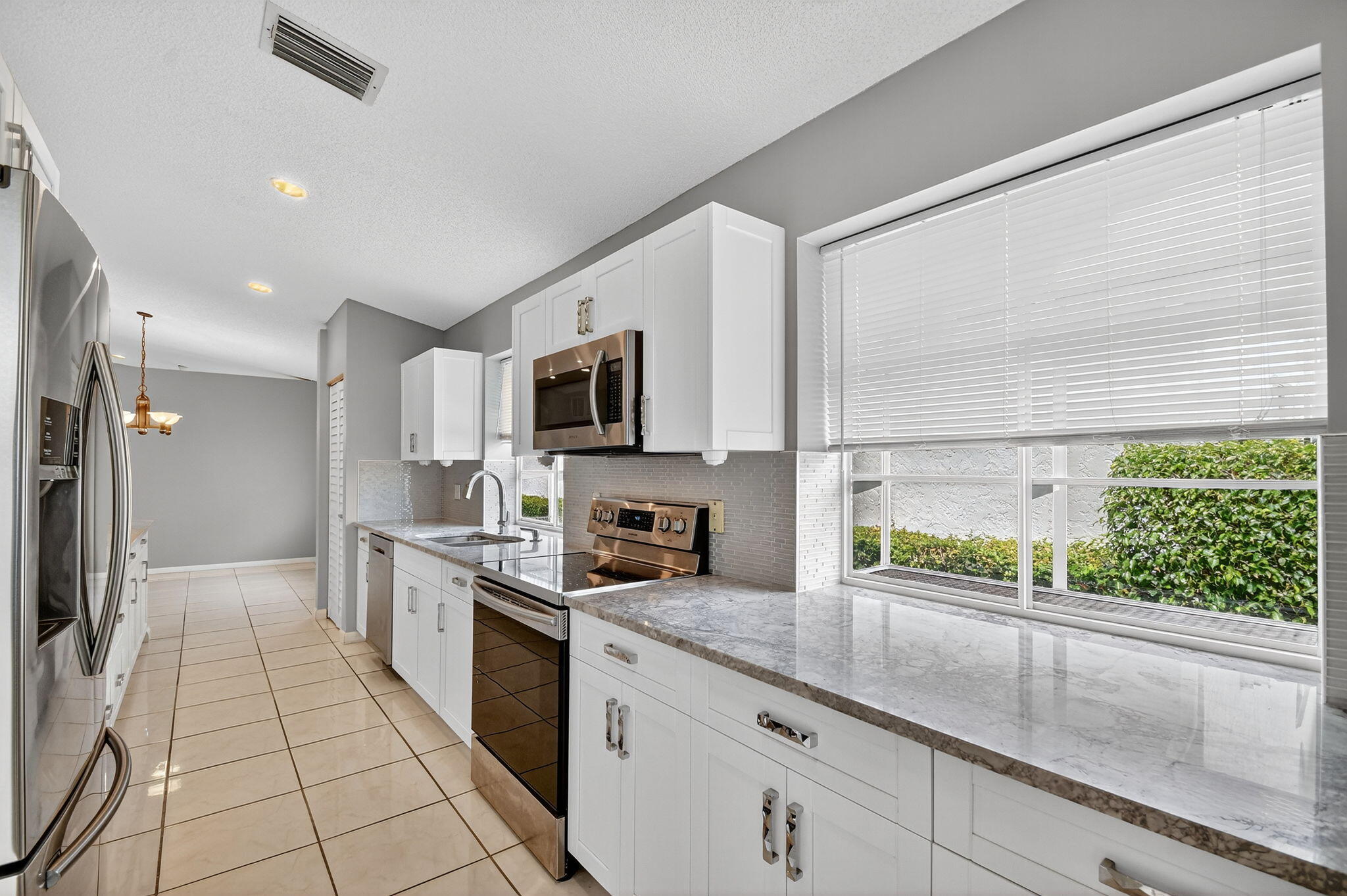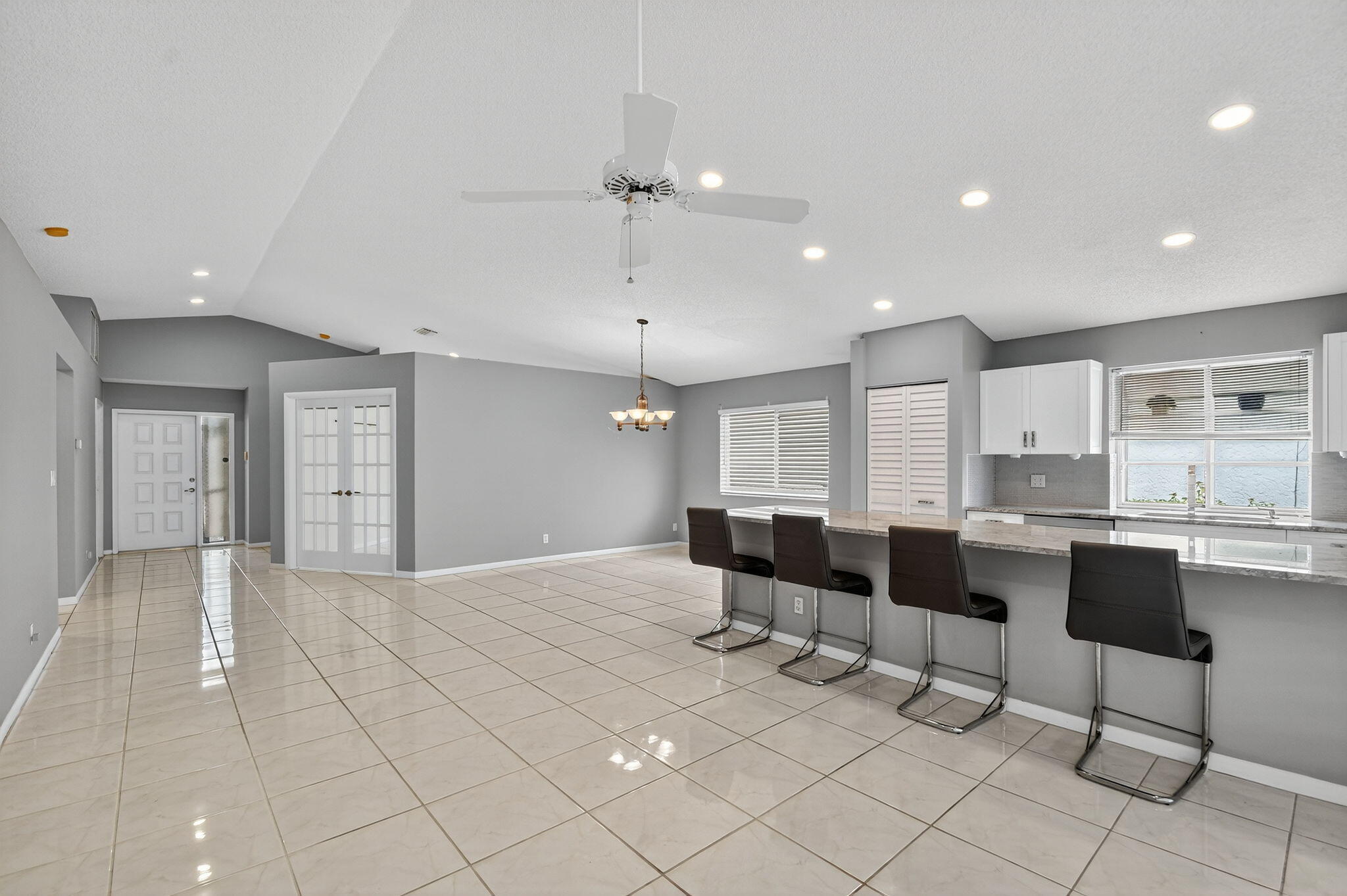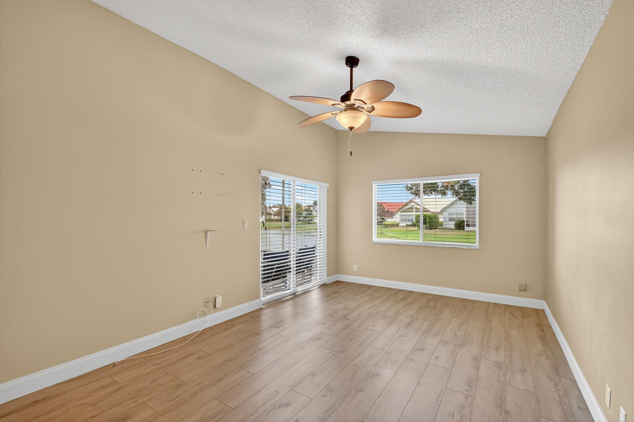 Welcome home to this Beautiful 3 bed, 2 bath lakefront home in the fabulous low HOA 55+ community of LAKERIDGE! Enjoy the stunning kitchen w/ granite counter tops, glass tile back splash, white cabinetry & stainless appliances. The extended roofed screened patio looks over the serene lake, perfect for entertaining, or enjoying quiet moments. Primary suite boasts dual sinks, soaking tub and separate shower as well as access to patio. The home boasts tile floors throughout living areas, laminate in bedrooms. Roof 2018, water heater 2024. Den/3rd Bedroom has double glass doors. Don't miss this move-in ready gem in an active, amenity-rich neighborhood!
