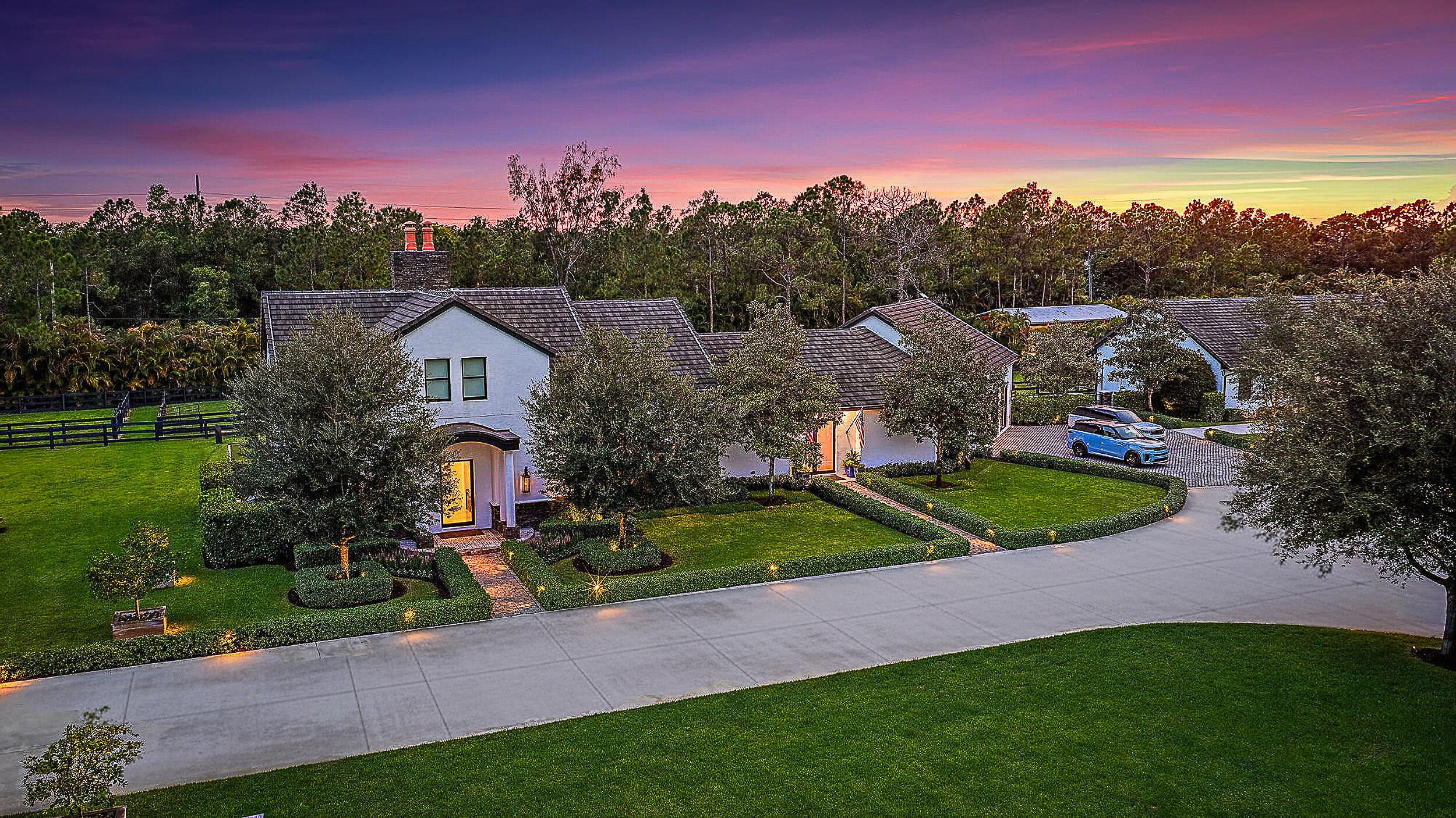 This completely reimagined estate combines timeless charm with modern luxury on 5 private acres in Palm Beach Gardens' coveted equestrian community of Caloosa. Designed as a full retreat, it offers open, sun-filled living spaces and resort quality amenities inside and out.Walls of windows frame the flowing layout, connecting the designer kitchen, dining area, and inviting living spaces. The primary suite features a morning bar, custom wardrobe closets, and a spa-style bath. Multiple guest suites and a luxury in-home cinema provide space for everyone to unwind.A fully automated Control4 smart home system with Josh AI manages lighting, climate, entertainment, and security, delivering convenience to match the estate's beauty. Every detail has already been thought through - evenelectronic shades are installed on all windows, unlike many new-construction homes where you'll still need to add window treatments, security, and smart features. This home is truly move-in ready, offering a complete luxury experience from day one. The backyard is an entertainer's dream with a lap pool with heater and chiller, turf lounging areas, fireplace, covered summer kitchen & bar, Coastal Source audio, and full landscape lighting. Equestrian facilities include an 8-stall Wellington-style barn, full-size riding arena, multiple paddocks, and a separate gated entrance. A massive 2762 sqft. detached building houses car and toys storage, a space for a gym and office, and a man cave, while a finished she-shack serves as an ideal home office. Additional amenities include a pole barn, 1,500-gallon buried propane tank, 500-gallon gas and 500-gallon diesel fill-up station, whole-house generator, mature privacy hedging, and professional landscaping throughout. Finished with craftsmanship and detail often seen in $15M+ Palm Beach Island estates, this property offers elegance, privacy, and functionality. Caloosa features 30 miles of riding trails, a 32-acre equestrian park, and a location just minutes from the best of Palm Beach Gardens-yet this home has everything you need without ever leaving.