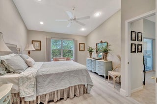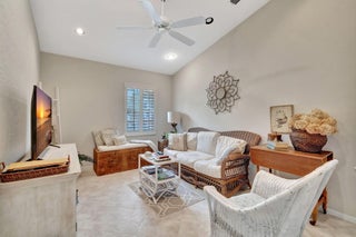Beautifully updated lakefront coach home in The Grove at Boynton Beach. The furnished seasonal rental features two bedrooms, two full bathrooms, a den/TV room, over 1800 square feet of living space, including a large screened-in patio, perfect for relaxing outdoors, a one-car garage, and a PRIVATE ELEVATOR! 1 small pet under 20lbs. Lake views from the main living areas and the primary bedroom. The Grove has a manned security gate, a newly renovated clubhouse with a fitness center, tennis courts, and a resort-style pool.