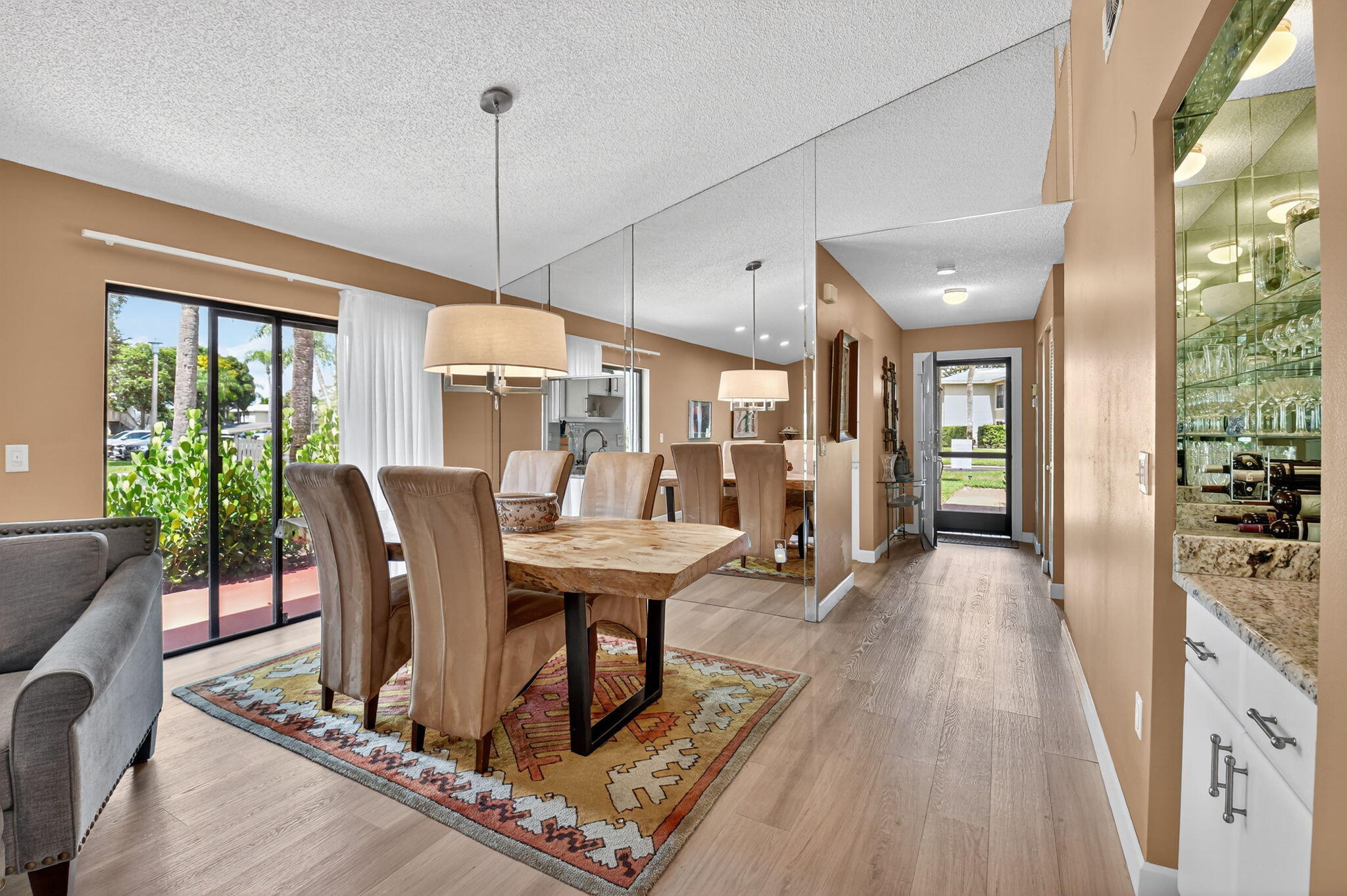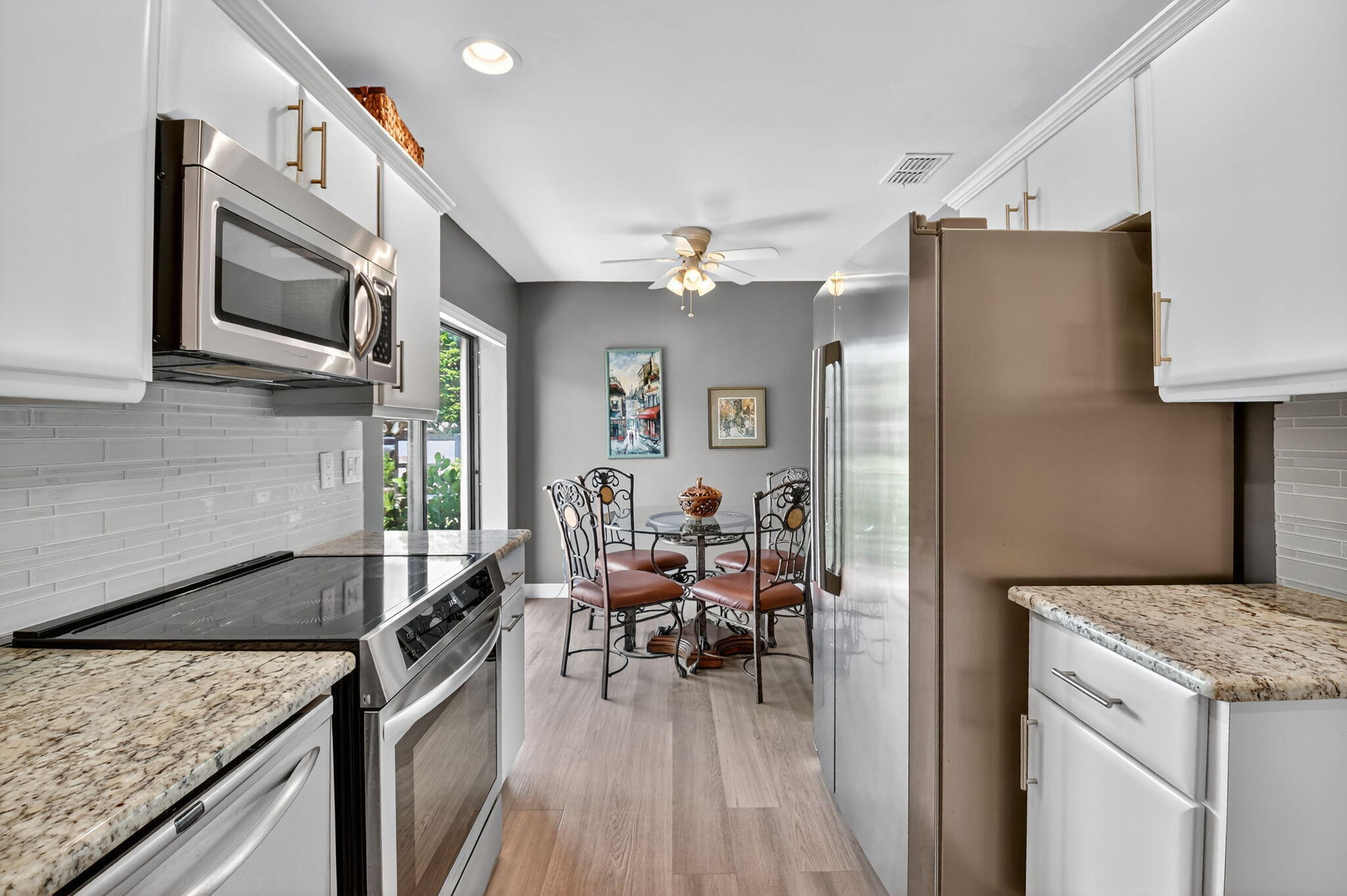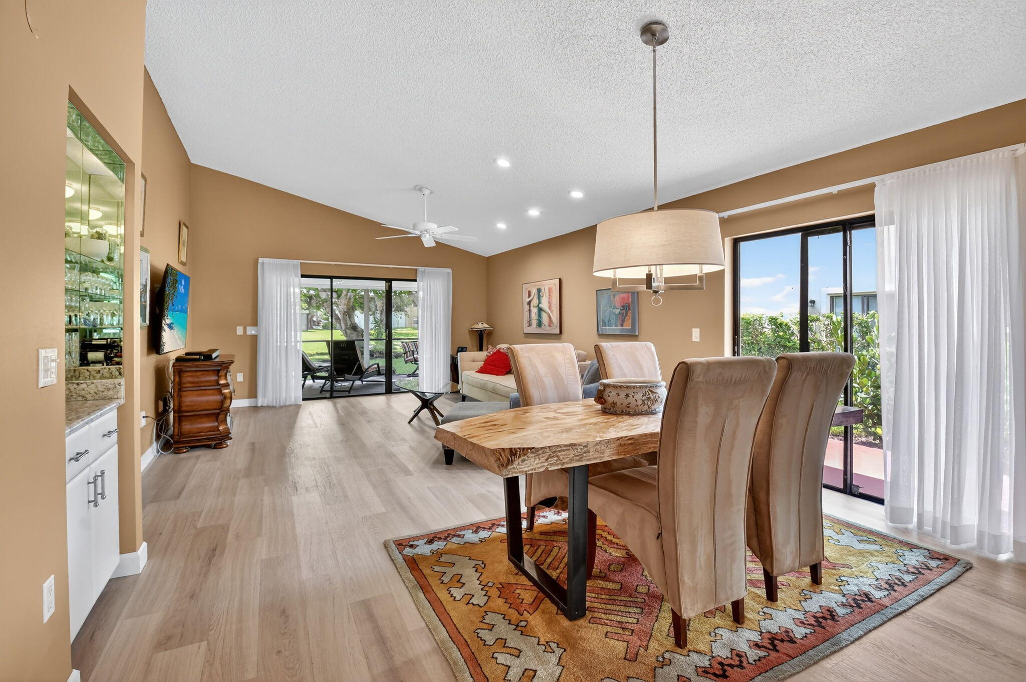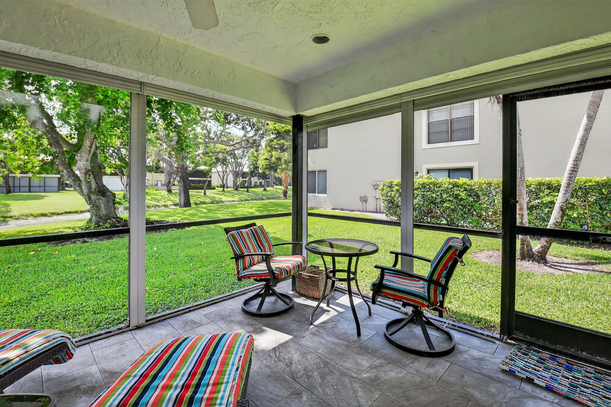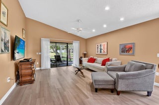 Move-In Ready Villa in Hunters Run!Step into your dream home in the heart of the prestigious Hunters Run Country Club! This 2-bedroom, 2-bath villa has been fully updated & is ready for you to start enjoying the Florida lifestyle from day 1. The modern kitchen is a showstopper--featuring granite countertops, updated cabinetry, stainless steel appliances, & a decorative backsplash that flows beautifully into the dining room through a convenient pass-through. The bright breakfast area opens to a patio through sliding glass doors, perfect for sipping coffee or relaxing in the morning sun & golf cart parking.Both bedrooms are generously sized, & both bathrooms have been completely renovated w/fresh, stylish finishes.Enjoy indoor-outdoor living w/ a screened lanai w/double exposure.