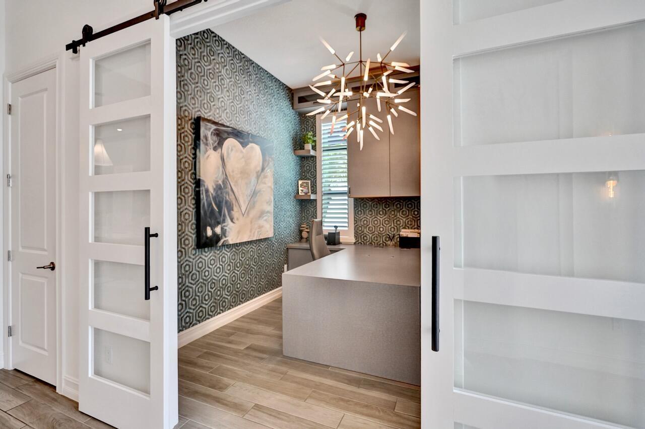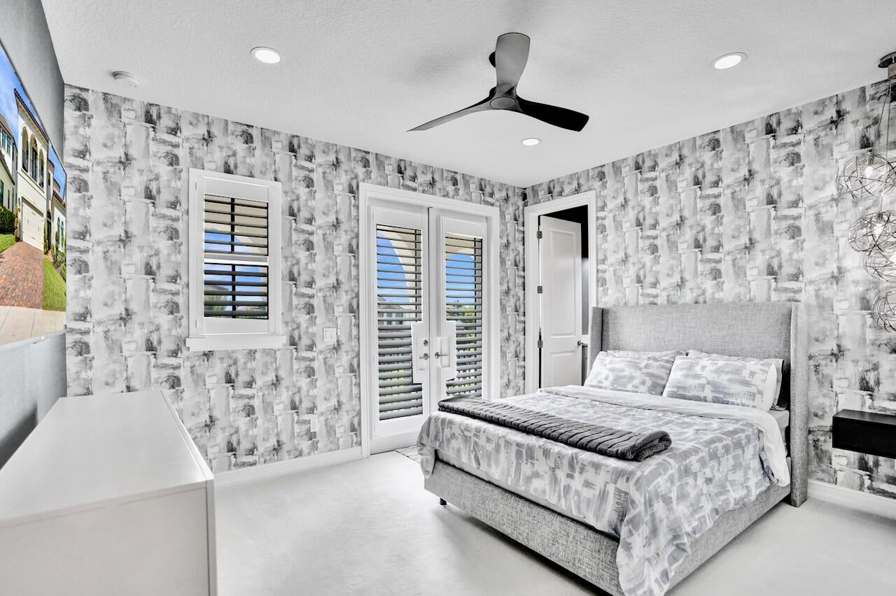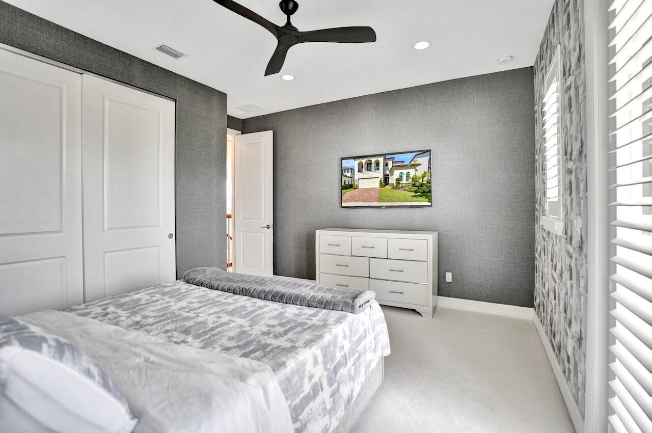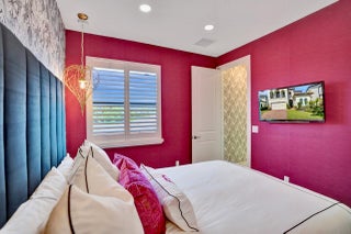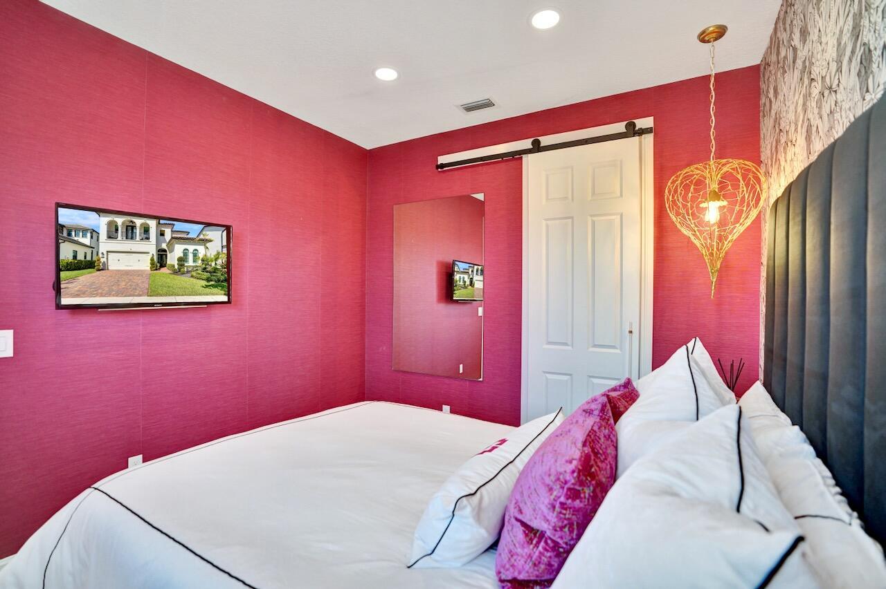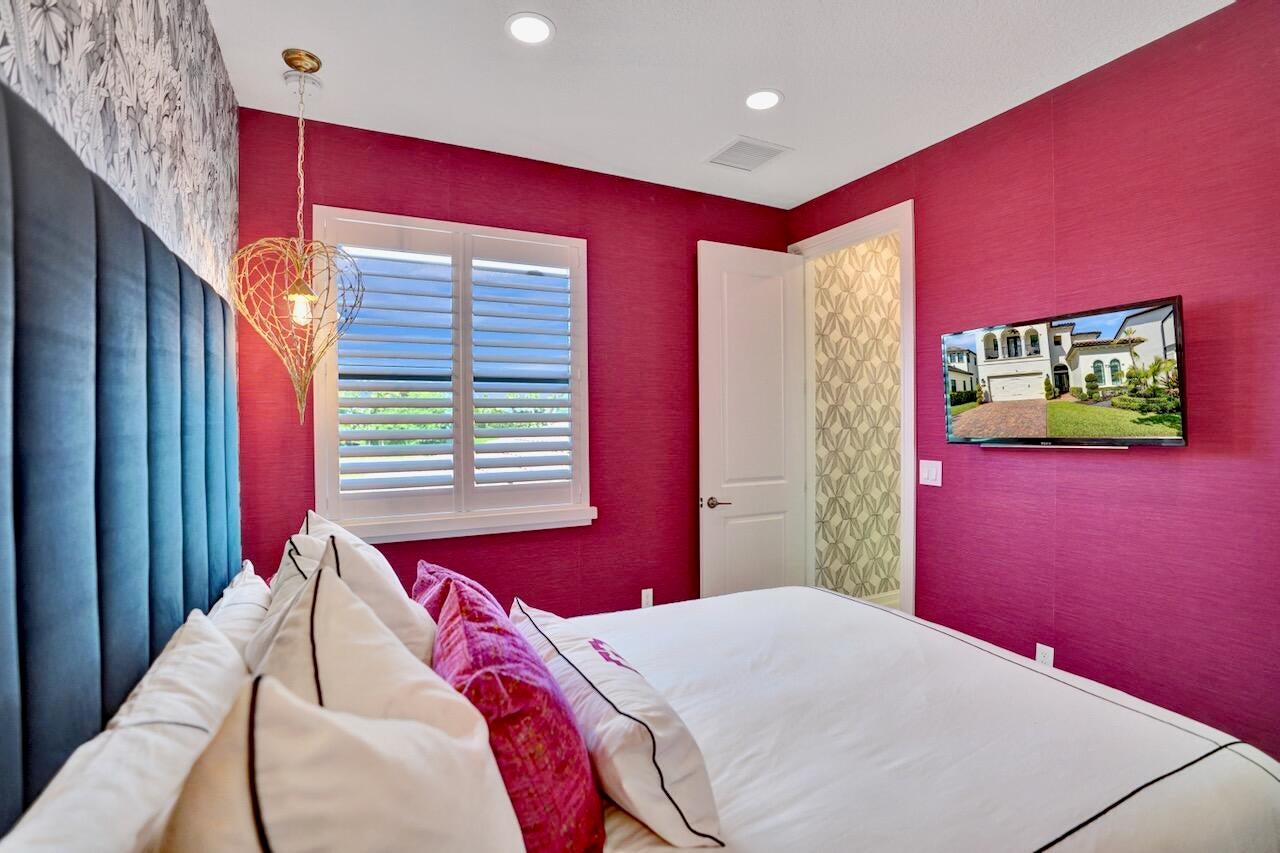 Welcome to Your Dream Home in Palm Meadows Estates! BRING YOUR FUSSIEST BUYERS!This exquisite 4BR / 4.5BA Provence Model with a dedicated office and spacious loft offers over 3,200 sq. ft. of pure luxury. Professionally decorated from top to bottom, this home features high-end upgrades including plantation shutters, designer lighting, elegant trims, custom built-ins, and premium carpeting. It truly shows like a model home- and will not disappoint!Step through upgraded glass double doors into a bright, open-concept living area with custom media cabinetry and an entirely upgraded chef's kitchen. The main level also includes a luxurious primary suite, a home office with barn doors and integrated storage, a second ensuite bedroom, and a custom mudroom with built-in seating.The kitchen is a showstopper- featuring a marble backsplash, quartz countertops, stone accent tile on the island and walls, a walk-in pantry with customized storage, stainless steel appliances, a gas range, and double ovens. The primary suite offers custom electric shades, designer lighting, and two oversized walk-in closets. The spa-like primary bath features a frameless glass shower and a large soaking tub. Upstairs, a spacious loft with custom built-ins and a beverage refrigerator makes the perfect office or lounge. Two additional bedrooms are on this level- one with a private balcony and ensuite bath. All guest baths are upgraded with dimmable anti-fog mirrors, designer fixtures, and frameless shower doors. Outdoors, enjoy stunning lake views from your screened-in lanai with upgraded tile flooring and remote-controlled retractable screens. The professionally landscaped yard features a timed lighting system, and there's ample room for a pool. Additional features include an integrated security system, whole has impact windows and EV charger. Palm Meadows Estates is a gated, resort-style community with a luxurious clubhouse, state-of-the-art fitness center, aerobics room, indoor basketball court, kids' playroom, resort pool, splash zone, jacuzzi, tennis, pickleball, playground, BBQ area, and more. Schedule your private showing today- and don't miss the virtual tour! INFORMATION HEREIN NOT GUARANTEED AND SUBJECT TO ERRORS & OMISSIONS. ALL MEASUREMENTS ARE APPROXIMATE.