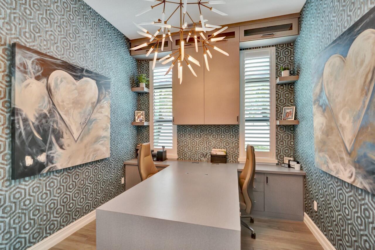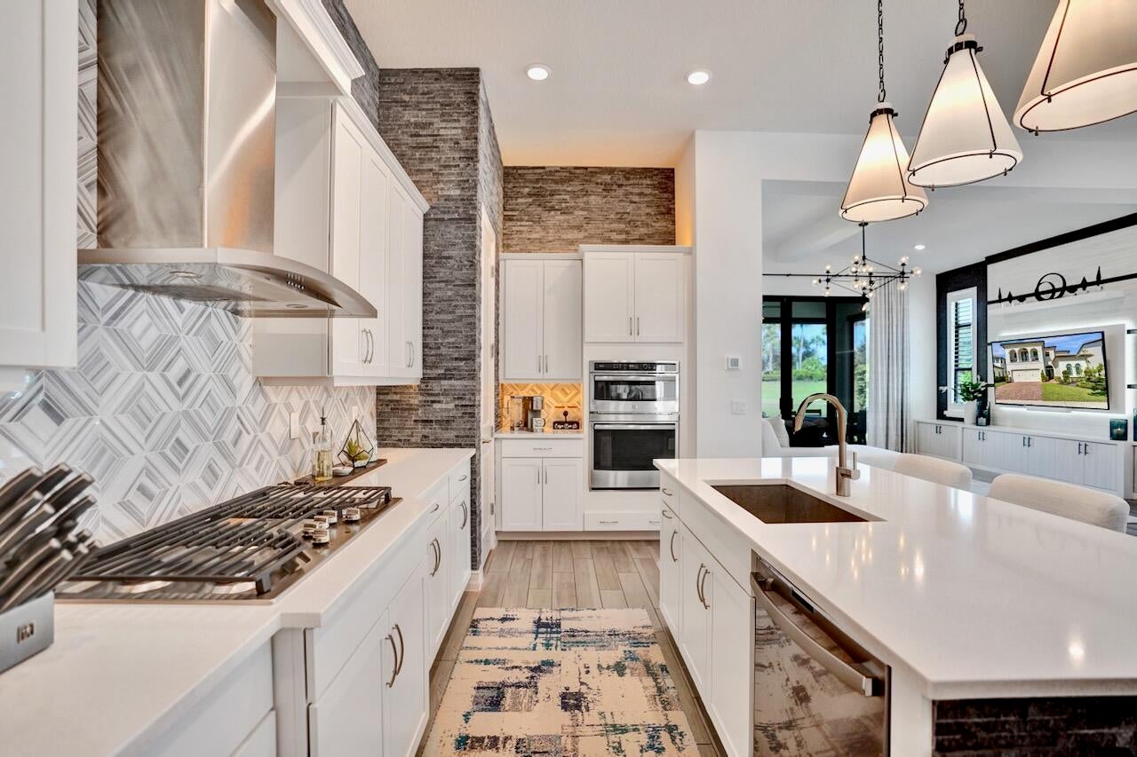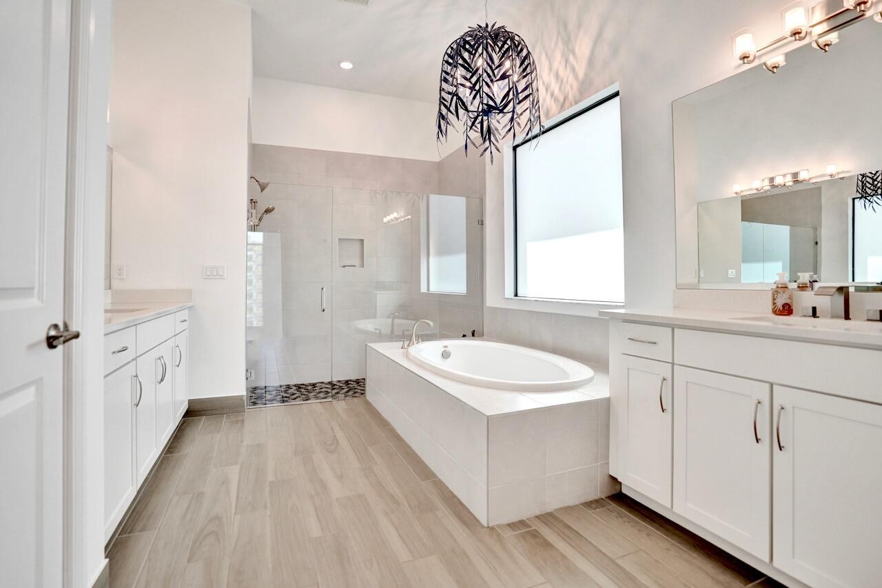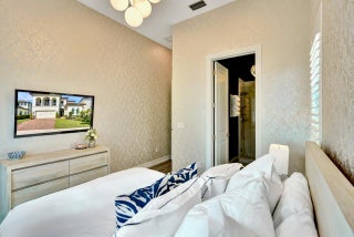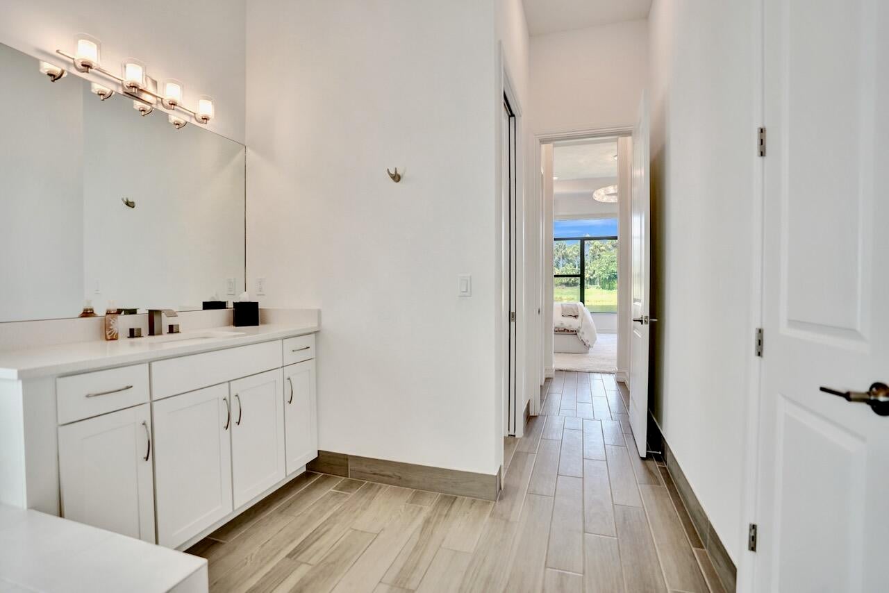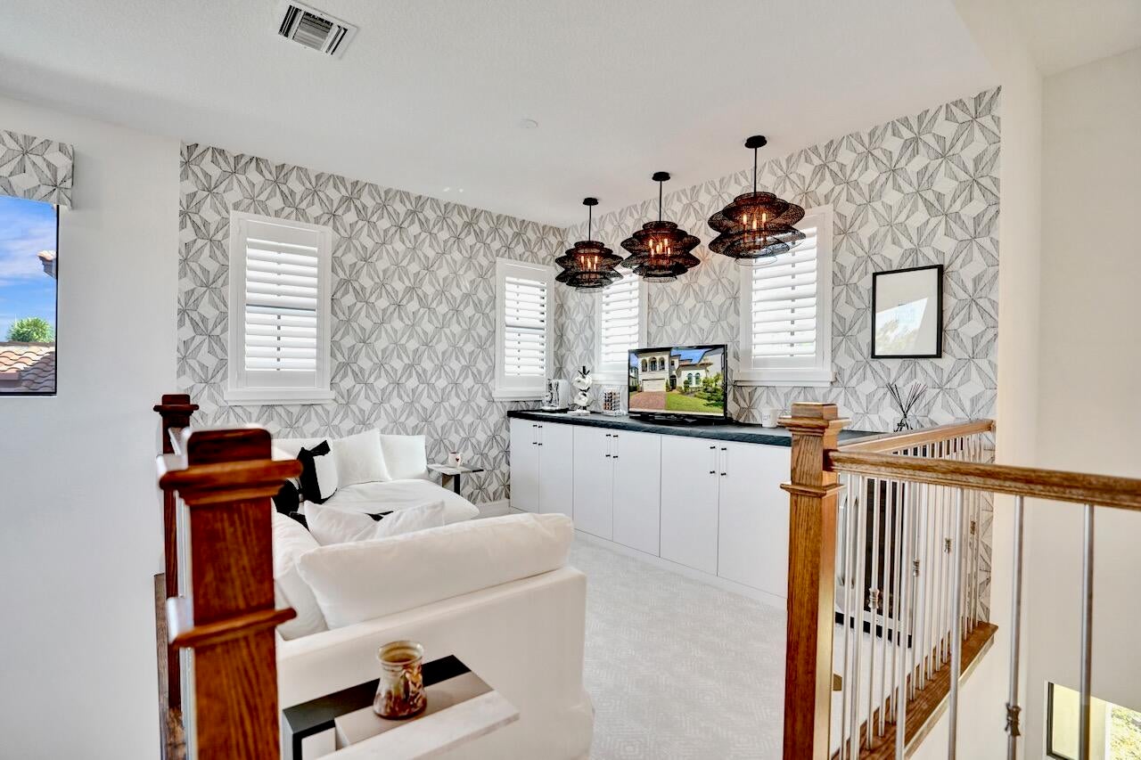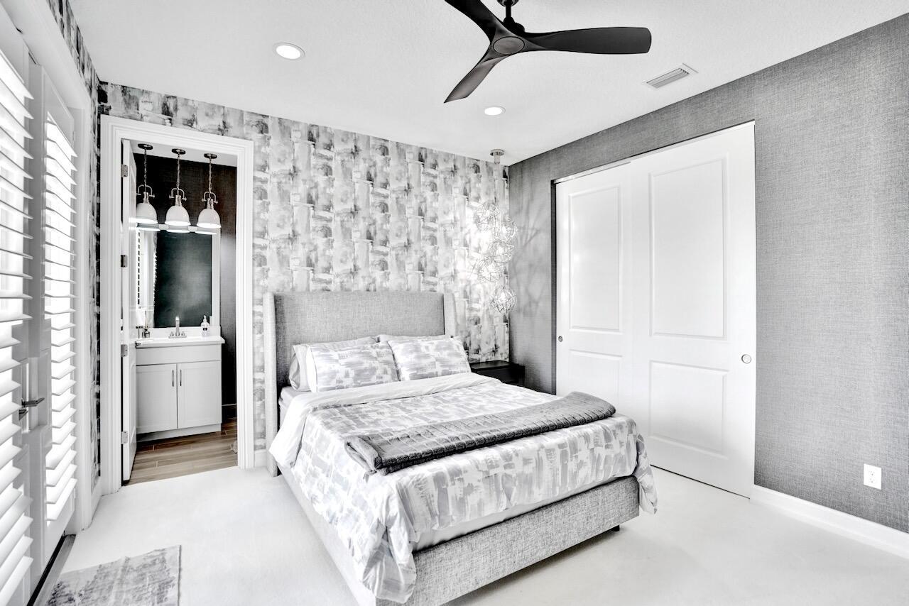 Welcome to Your Dream Home in Palm Meadows Estates! BRING YOUR FUSSIEST BUYERS!This exquisite 4BR / 4.5BA Provence Model with a dedicated office and spacious loft offers over 3,200 sq. ft. of pure luxury. Professionally decorated from top to bottom, this home features high-end upgrades including plantation shutters, designer lighting, elegant trims, custom built-ins, and premium carpeting. It truly shows like a model home- and will not disappoint!Step through upgraded glass double doors into a bright, open-concept living area with custom media cabinetry and an entirely upgraded chef's kitchen. The main level also includes a luxurious primary suite, a home office with barn doors and integrated storage, a second ensuite bedroom, and a custom mudroom with built-in seating.The kitchen is a showstopper- featuring a marble backsplash, quartz countertops, stone accent tile on the island and walls, a walk-in pantry with customized storage, stainless steel appliances, a gas range, and double ovens. The primary suite offers custom electric shades, designer lighting, and two oversized walk-in closets. The spa-like primary bath features a frameless glass shower and a large soaking tub. Upstairs, a spacious loft with custom built-ins and a beverage refrigerator makes the perfect office or lounge. Two additional bedrooms are on this level- one with a private balcony and ensuite bath. All guest baths are upgraded with dimmable anti-fog mirrors, designer fixtures, and frameless shower doors. Outdoors, enjoy stunning lake views from your screened-in lanai with upgraded tile flooring and remote-controlled retractable screens. The professionally landscaped yard features a timed lighting system, and there's ample room for a pool. Additional features include an integrated security system, whole has impact windows and EV charger. Palm Meadows Estates is a gated, resort-style community with a luxurious clubhouse, state-of-the-art fitness center, aerobics room, indoor basketball court, kids' playroom, resort pool, splash zone, jacuzzi, tennis, pickleball, playground, BBQ area, and more. Schedule your private showing today- and don't miss the virtual tour! INFORMATION HEREIN NOT GUARANTEED AND SUBJECT TO ERRORS & OMISSIONS. ALL MEASUREMENTS ARE APPROXIMATE.