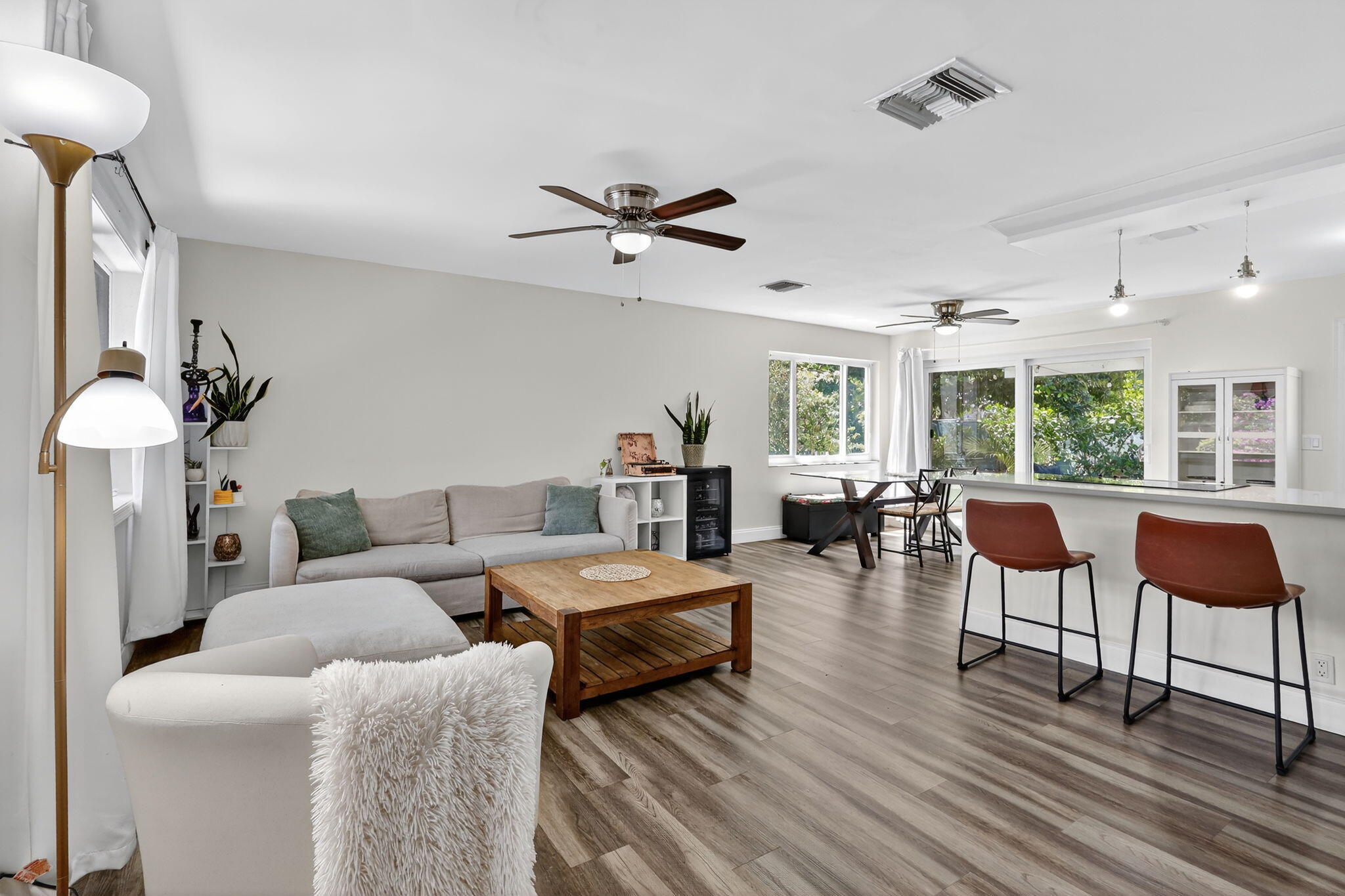 This beautiful 2 bedroom, 1 bath home is in a prime East Boynton Beach location -- just 2 miles from Delray Beach's famous Atlantic Avenue, known for its great shopping, art galleries, and restaurants, and only a quick 7 minute drive to pristine beaches.Light-filled living space with an open layout, updated kitchen, Hurricane-impact windows. Outside, the huge fenced yard is perfect for enjoying the Florida sunshine, complete with a hammock for relaxing, a BBQ grill for weekend cookouts, and a raised garden bed for growing your own fresh herbs. Available furnished or unfurnished, for annual or seasonal rental -- your perfect South Florida getaway awaits. Bring your boat or RV.