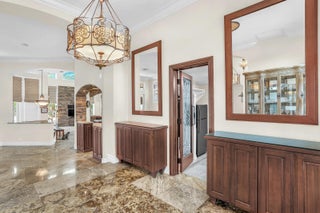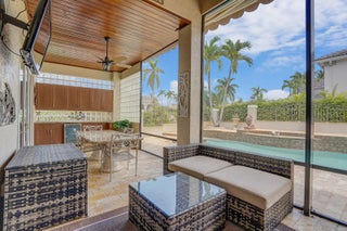 Located in the prestigious Boca Isles South community, this stunning 5BR/3BA Palm Beacher model offers the perfect blend of elegance, craftsmanship, and resort-style living. From the moment you enter, gleaming marble floors set the tone for a home that has been thoughtfully upgraded throughout. The chef's gourmet kitchen is a true masterpiece, featuring a professional Wolf gas oven, GE Avantium wall oven, Monogram appliances, built-in Sub-Zero refrigerator and freezer, U-Line beverage fridge, massive pantry, pot filler and three sinks each with its own garbage disposal. A dedicated coffee station with built-in Miele espresso machine, steamer, spice storage, warming tray, and a vented hood that eliminates cooking odors complete this dream culinary space. The spacious living areas flowseamlessly to the backyard, a tropical oasis designed for year-round enjoyment. Relax by the heated pool, or gather at the fire pit. A power awning, misting system, mosquito spray system, and fully fenced yard with a dedicated dog run ensure comfort for both family and pets. The oversized corner lot accommodates 8+ cars in the driveway and offers exceptional privacy. Additional highlights include PGT impact windows throughout the home, a steam shower in the cabana bath, central vacuum, sprinkler system with outdoor lighting, two new AC units, two water heaters, a 2016 roof, and porcelain tile in the primary suite. Every detail reflects quality and care. This is more than a home - it's a lifestyle.