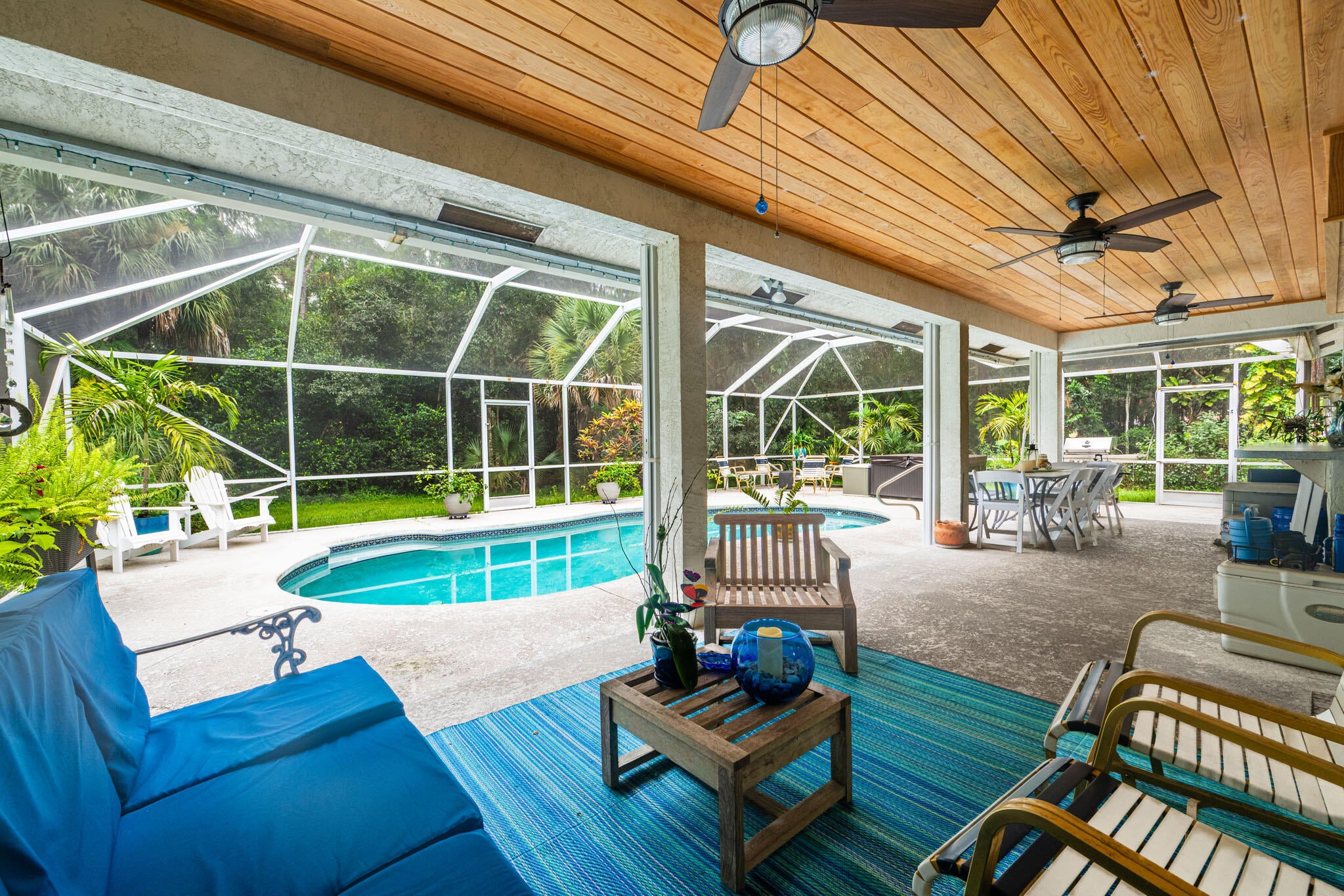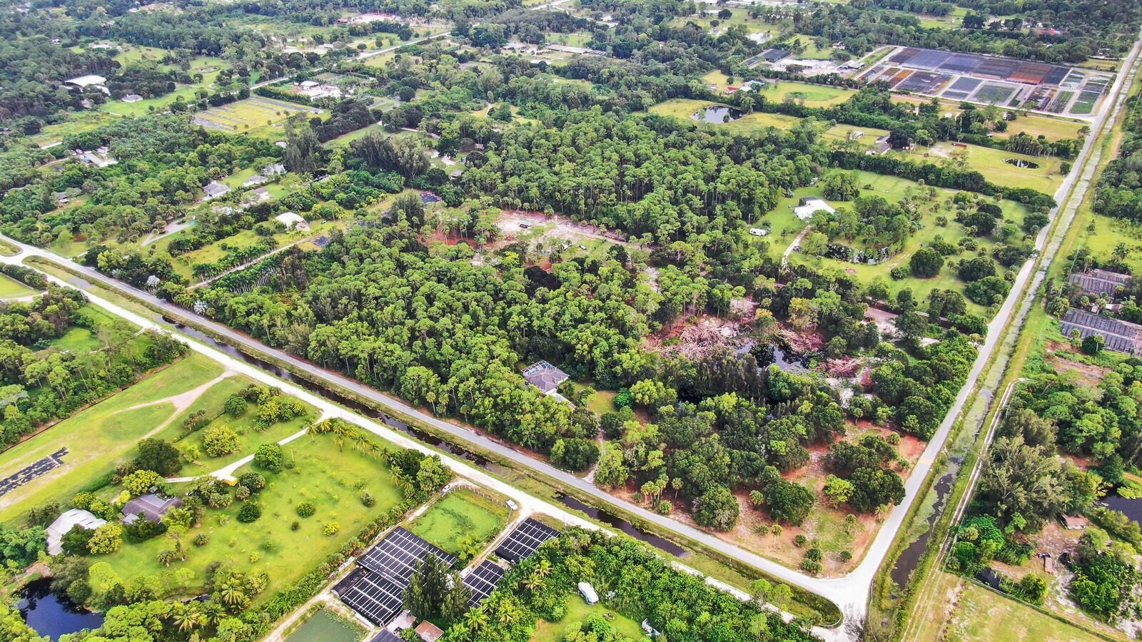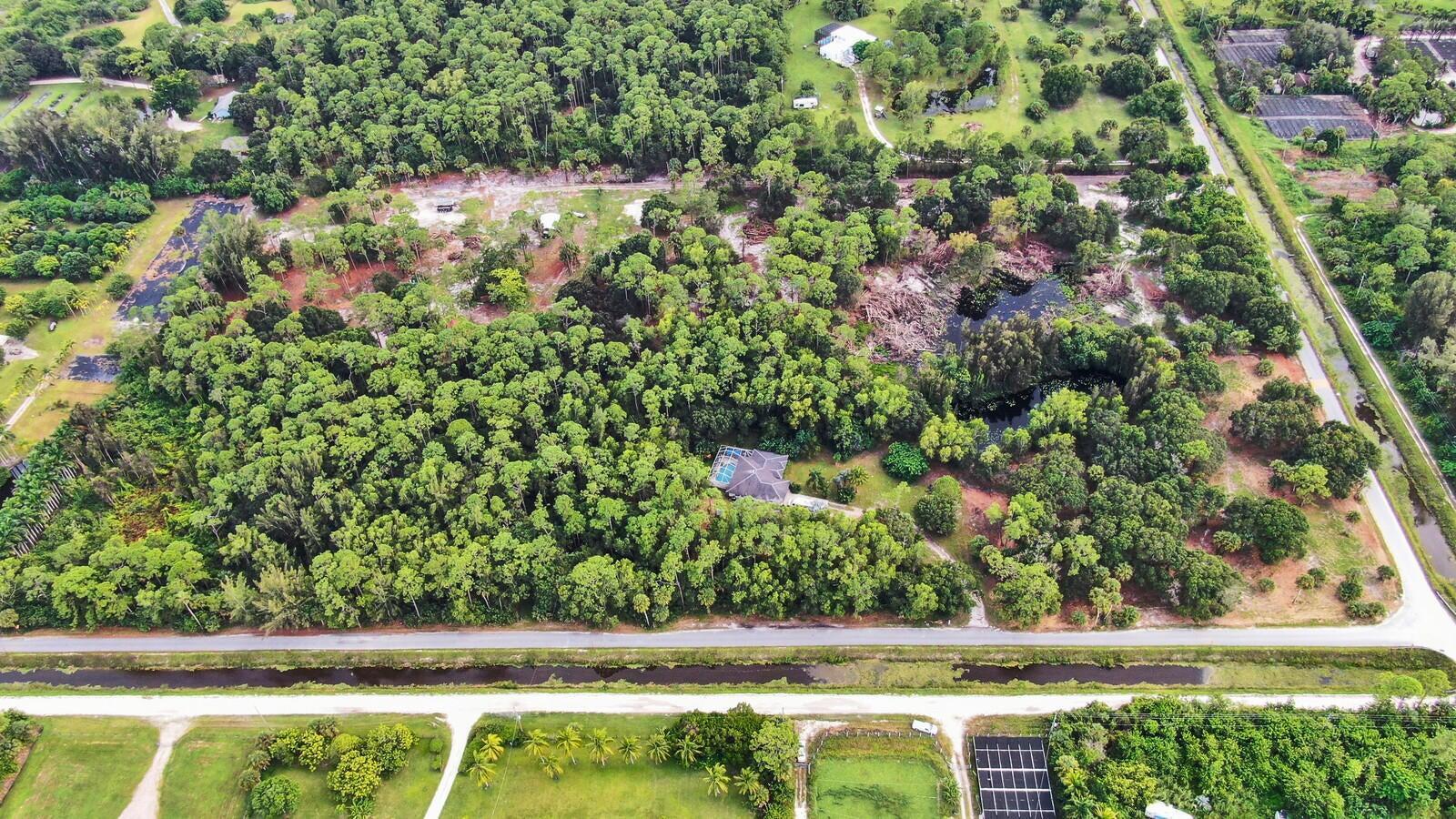 YOUR PRIVATE OASIS ON 10 ACRES!!! This stunning home features 3 bedrooms, 2 full baths, 2 car garage, 1,040 sqft detached CBS garage with two 9 ft garage entry doors in front and back. As you enter the lengthy driveway you are greeted by mature oaks and palms trees, a large pond with lots of fish, bringing you to this beautiful home with soaring high ceilings, a split floor plan, spacious open living areas offering an abundance of natural light with tiled floors throughout. The kitchen is bright with white cabinetry and grey countertops, modern stainless steel appliances, double door refrigerator with water and ice maker, large pantry and eat-in counter, a large window that opens to the spacious terrace overlooking the saltwater heated pool and greenery perfect for entertaining. Gorgeous primary suite featuring tiled floors, large walk-in closet, spectacular en suite bathroom with vanity, shower and soaking bath tub. Two spacious bedrooms with large walk-in closets, a cabana bathroom with access to and from the pool area. The home comes with accordion shutters and aluminum shutters. The screened covered patio brings you to a fenced backyard, property has 2 fire hydrants, peroxide water system, county water is available, A/C replaced 2020, water heater replaced 2022, and brand new roof 2025. This gem is tucked away in a superb quiet equestrian location of Loxahatchee Groves right off of Okeechobee Blvd and A Road with equestrian trails, shopping, fine dining, recreational parks, Lion Country Safari and Wellington's World Class National Polo Center, golf courses, beaches and much more just minutes away! Come see why Loxahatchee Groves is highly sought after and take in the fresh country air and peaceful sounds of nature. John Deere 4300 Diesel tractor with many attachments and hot tub are included. No HOA fees, high and dry corner lot and paved roads! Bring your toys, trailers, pets, horses, build stalls, an arena the possibilities are endless!!!