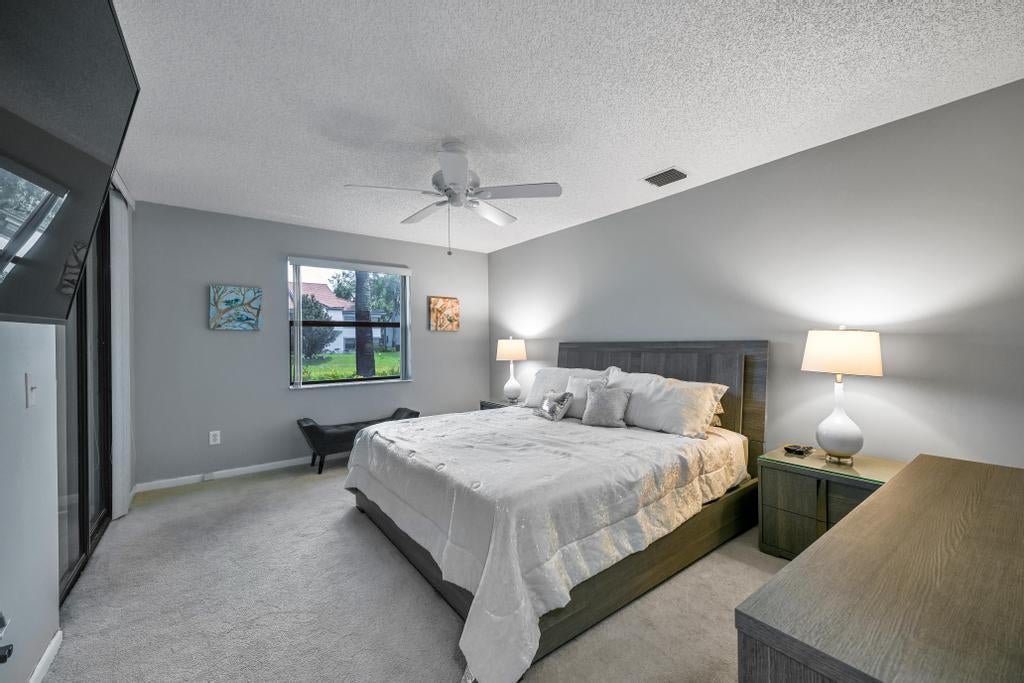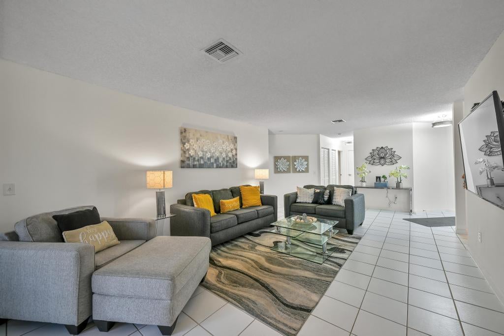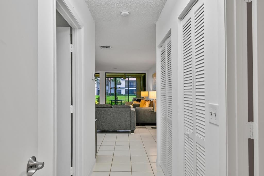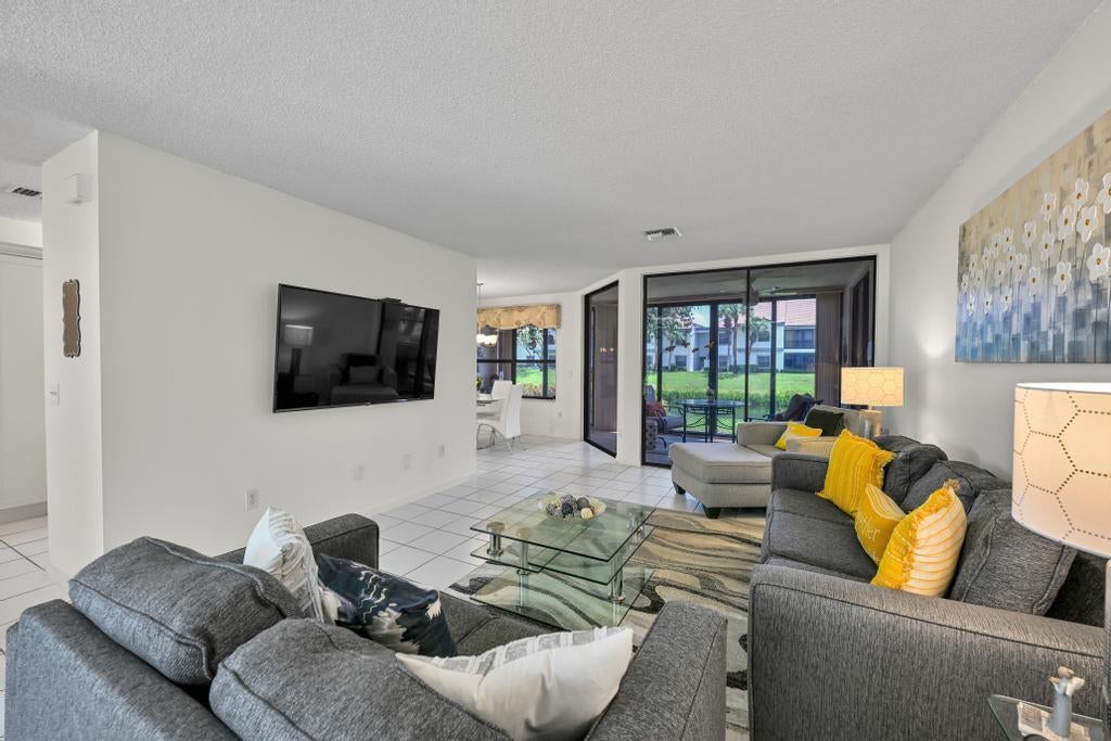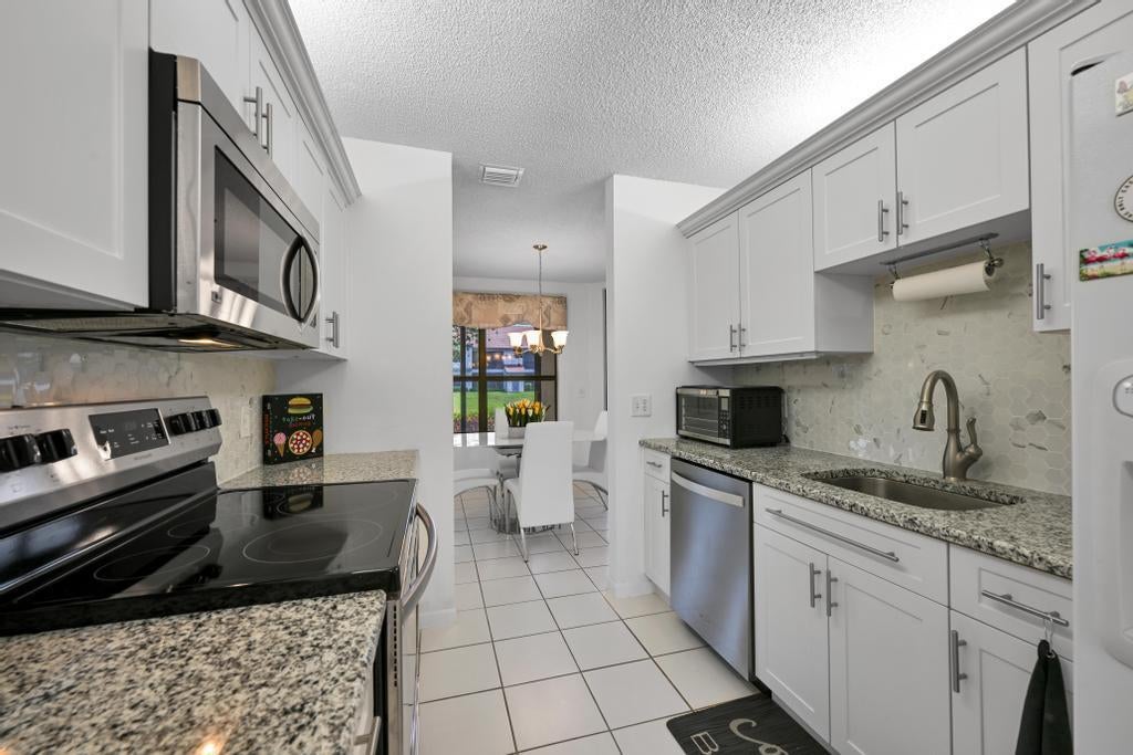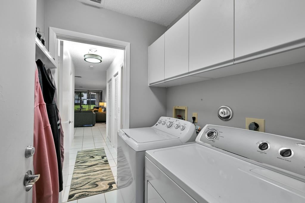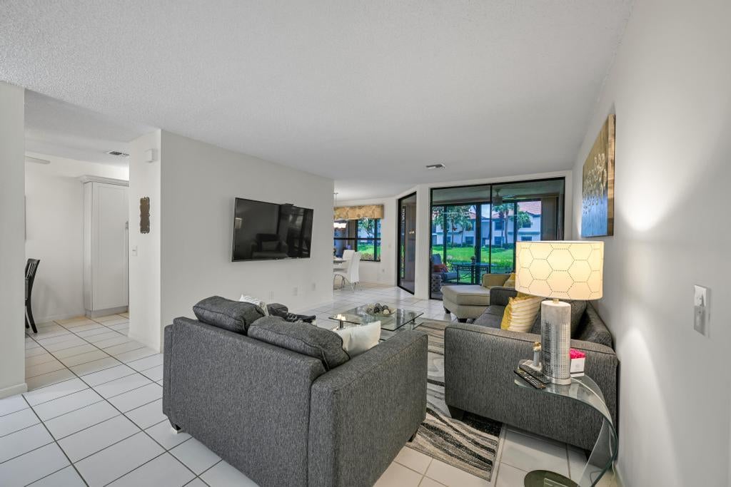 ALL AGES ,GROUND FLOOR ,STEPS TO CLUBHOUSE , Onsite Cafe. Fantastic location close to 95 ,Turnpike.Shopping ,schools.Spacious bedrooms and plenty of Storage. Updated Kitchen and newer appliances. A wonderful Ground floor unit with your own Garage, laundry room AC-2018,WH 2014.Roof 2013 (Condo responsibility).Walking Distance to Clubhouse and Pools.Sit on the patio with a peaceful and relaxing view. All you pay is electric. Condo Fee covers ,Cable, Direct TV.Gym,Tennis,Pickleball and VERY large Pool.Water, trash , maintenance, all maintained by association,security,bldg insurance. There is a camera in unit.