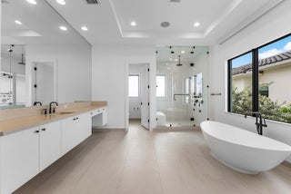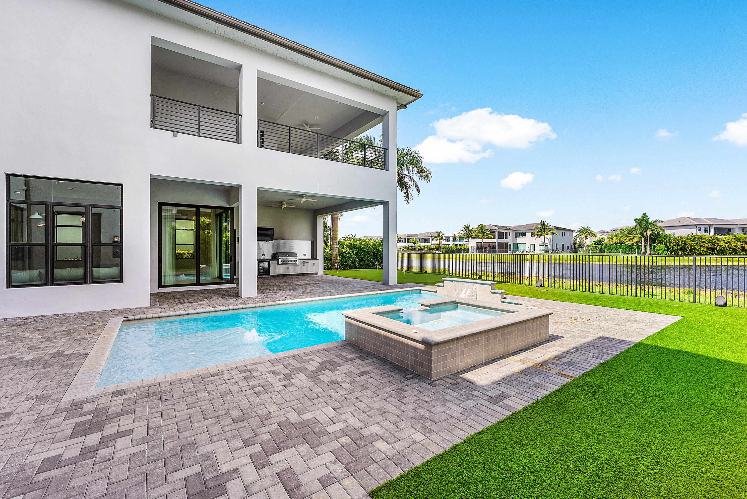 A Masterpiece in the Estate Section of Boca Bridges' Most Coveted LakefrontBoca Bridges -- complete with lavish amenities and elite security -- provides the prestigious backdrop for this meticulously customized Vanderbilt Grande Contemporary. Perfectly positioned on a sprawling, premier long-lake lot, this estate captures breathtaking sunset views and delivers inviting resort-style allure to the luxury residential experience.Spanning over 11,000 total square feet with 8,179 square feet of living space, the exquisitely designed layout offers six ensuite bedrooms, a powder room, a cabana bath, a warm and inviting family room, a loft with private balcony, and a 4-car garage. Inside, striking design elements include a glass-railed staircase, designer millwork, and a sleek gas fireplaceanchoring the main living area. A private lounge, fully equipped home theater, and whole-house generator elevate the lifestyle experience. The state-of-the-art gourmet kitchen showcases premium appliances, including a custom hood, 60" Sub-Zero refrigerator/freezer, 48" Wolf range, and a built-in banquette. Light-filled spaces bring the outdoors in, creating a seamless flow to the backyard retreat a heated saltwater pool with spa, covered loggia, summer kitchen, and turfed yard, all set against sweeping water views. The prestigious Boca Bridges community offers residents an unparalleled lifestyle, with a 27,000 sq. ft. clubhouse featuring an elegant lounge with bar, a card room, a game room, and an indoor sports area. First-class amenities include fitness facilities, swimming pools, tennis and pickleball courts, and activities for all ages, rivaling the finest resorts.
