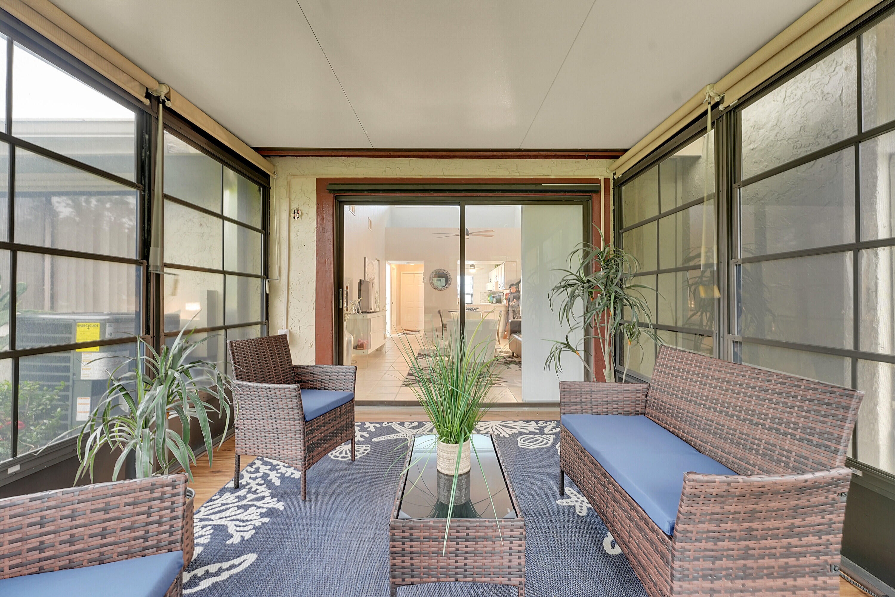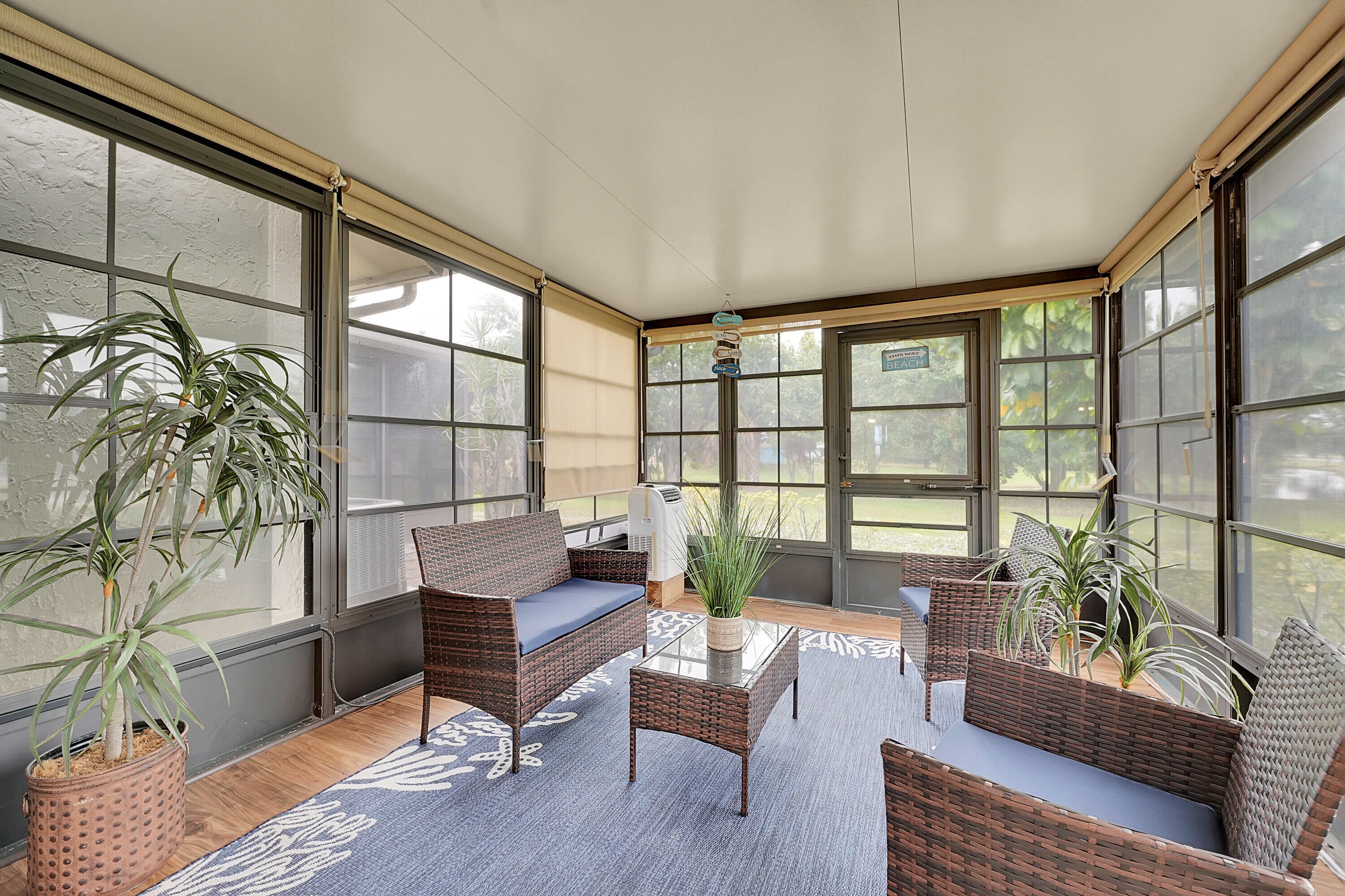 What a little jewel - this 2 bedroom 2 bath one car garage is totally renovated and upgradedIt shows like a model and is turnkey ready for youThe kitchen has quartz countertops, tile back splash and is fully upgraded.The bathrooms are remodeled The vaulted ceiling give the unit and light, large airy feelingThe brand new furniture is negotialble.newer roof 2022 - new A/C 2025The Florida room is perfect for relaxing in cooler weather and enjoying the park likesetting backing up to a water way The villa is just minutes from the beach,shopping, restaurants, hospitals and the Mid Florida Event Center Perfect as for retirement or second home