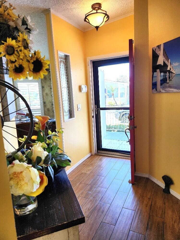 ON LARGE CORNER HOUSE!This beautiful well maintain home located Boynton Beach with its own sprinkler system. Tile floors, eat in kitchen, granite counter tops and stainless appliances. Accordion shutters plus storage room.two bedroom/two bath the living room is large that can become a living dining area. There is an enclosed lanai with a separate entrance on the side of the home. There is a double car parking, Double sink vanity in the large master bedroom.