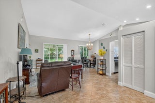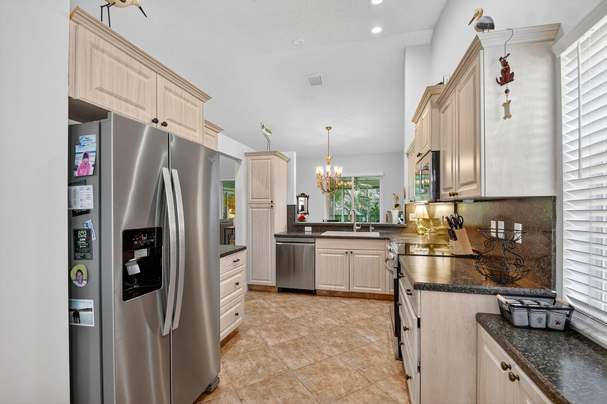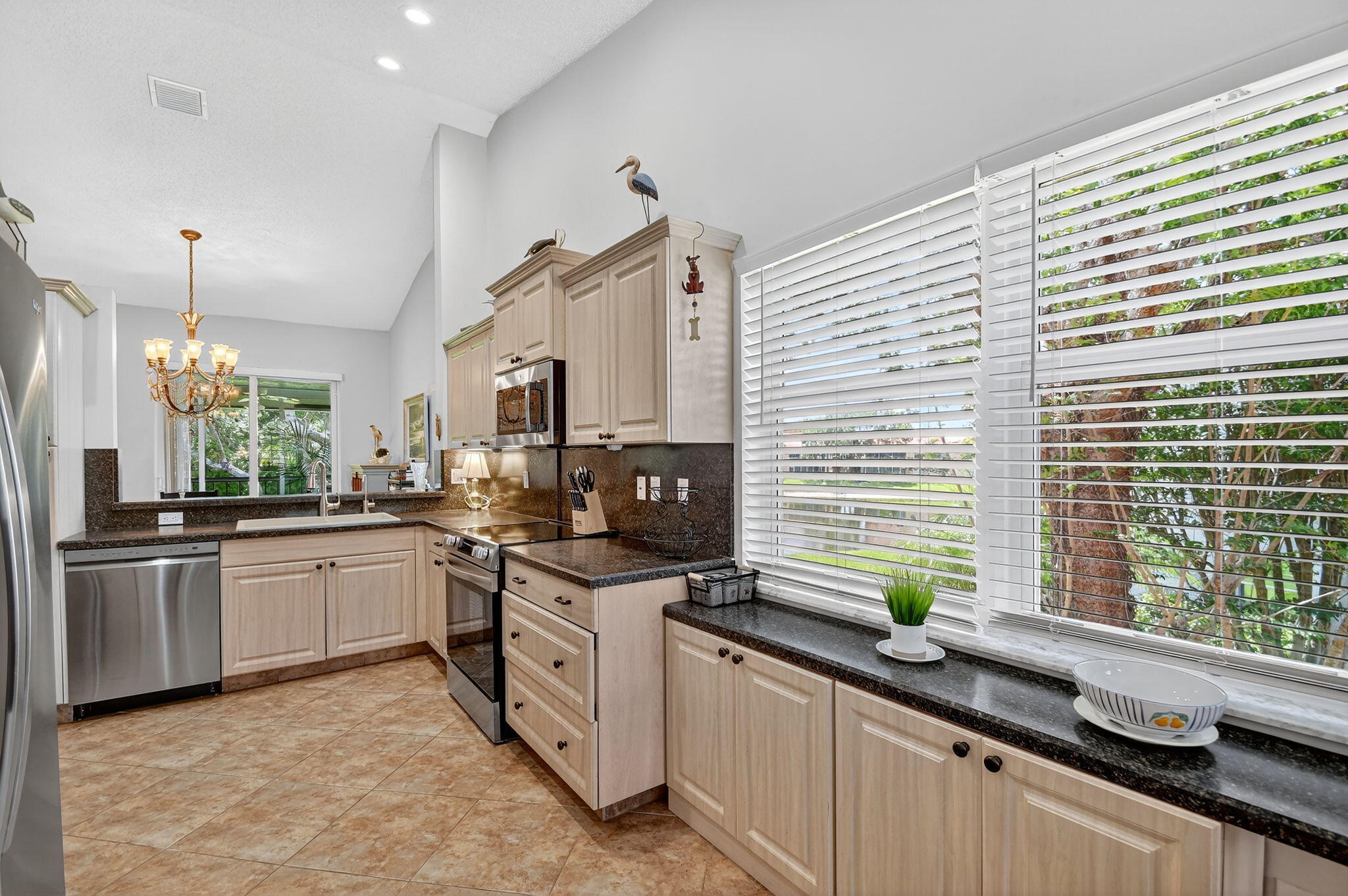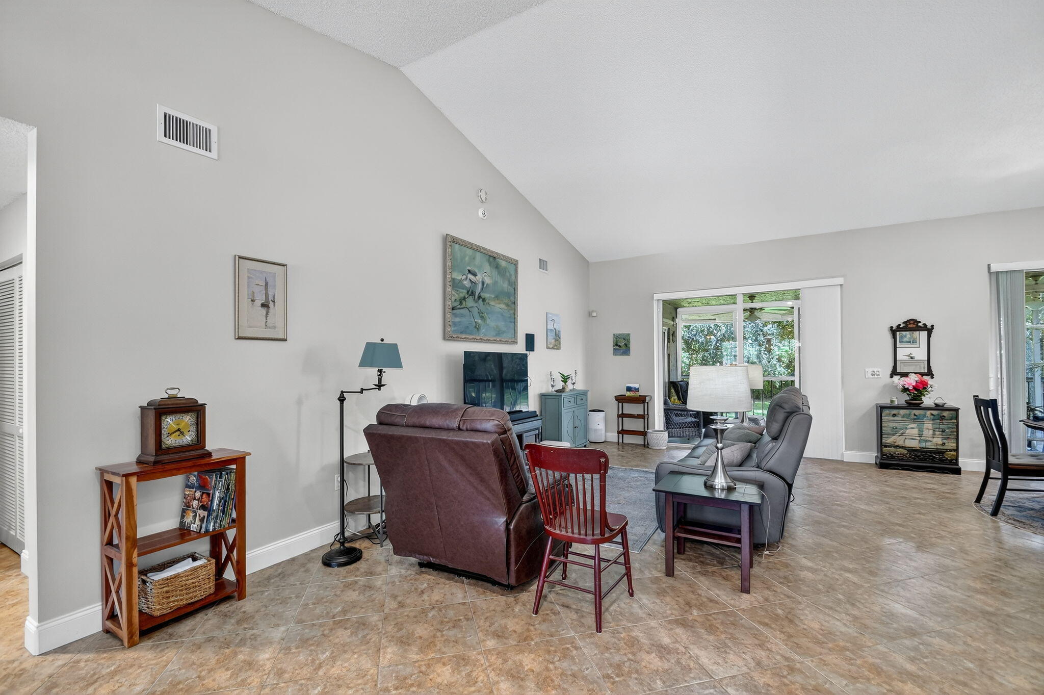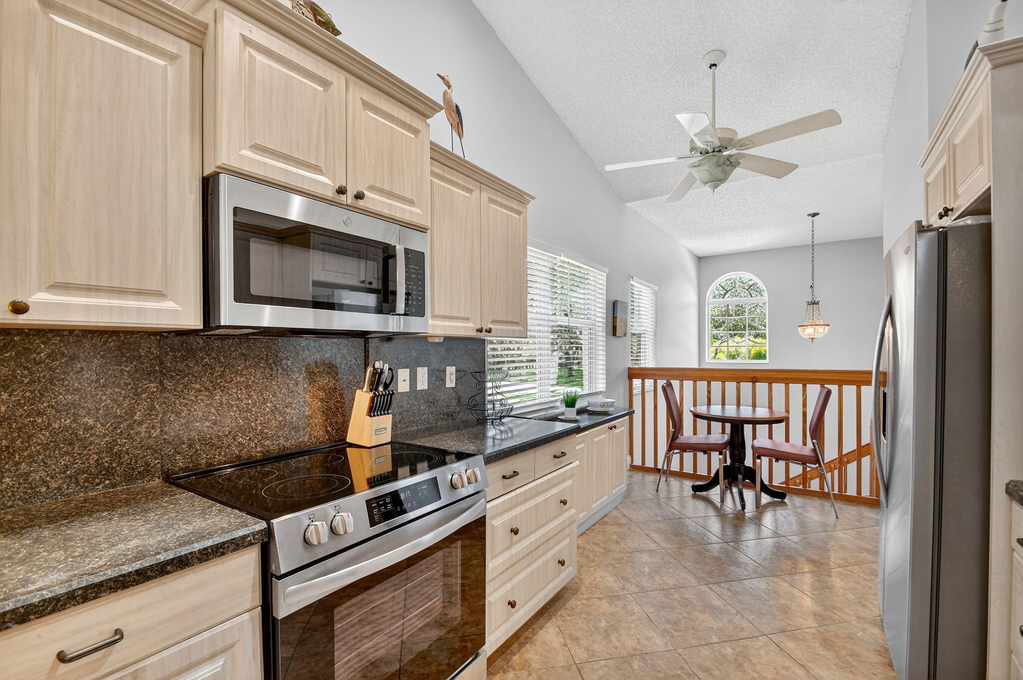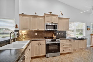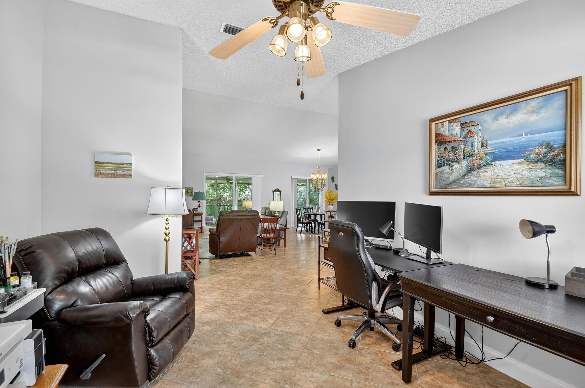 Come experience Florida living at its finest in this beautiful end unit with open floor plan and perfect, serene location with lake views. Home has new AC with new impact windows and sliders throughout. Spacious 3 bedroom, 2 bathroom with third bedroom being used as an office. The private, glassed in and screened, lania provides ample space for outdoor entertaining and relaxation while overlooking the lake. Eat in kitchen has all new stainless steel appliances and a reverse osmosis drinking water filtration system. Full washer and dryer in unit. . Guest bathtub replaced with beautifully tiled walk in shower with niche. Newly renovated club house will be opened soon and hosts loads of amenities. Open 7 days on-site cafe. Special assessments for completion of clubhouse all paid.