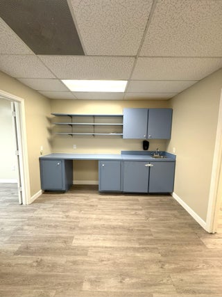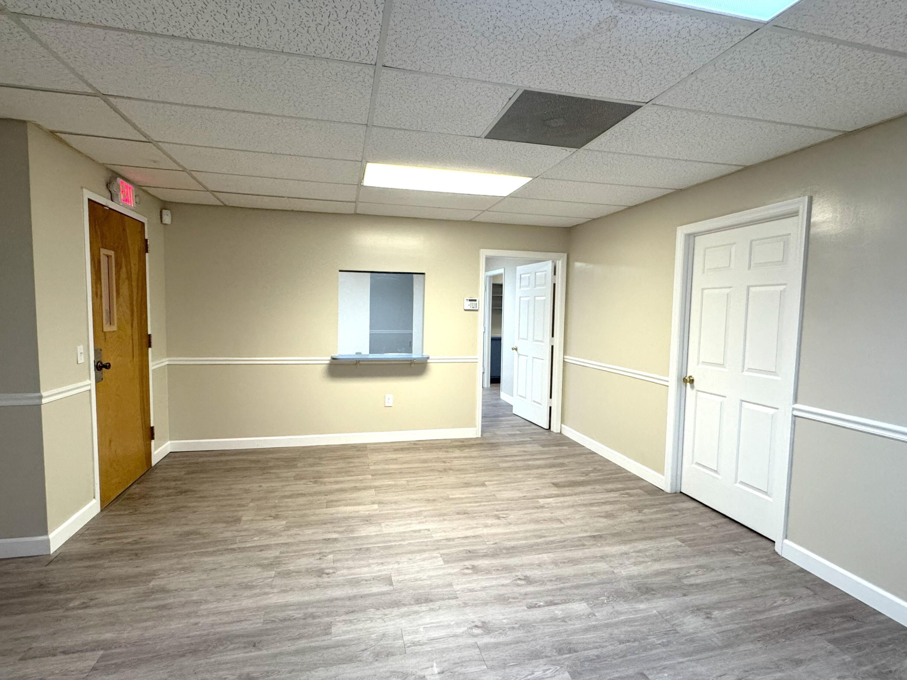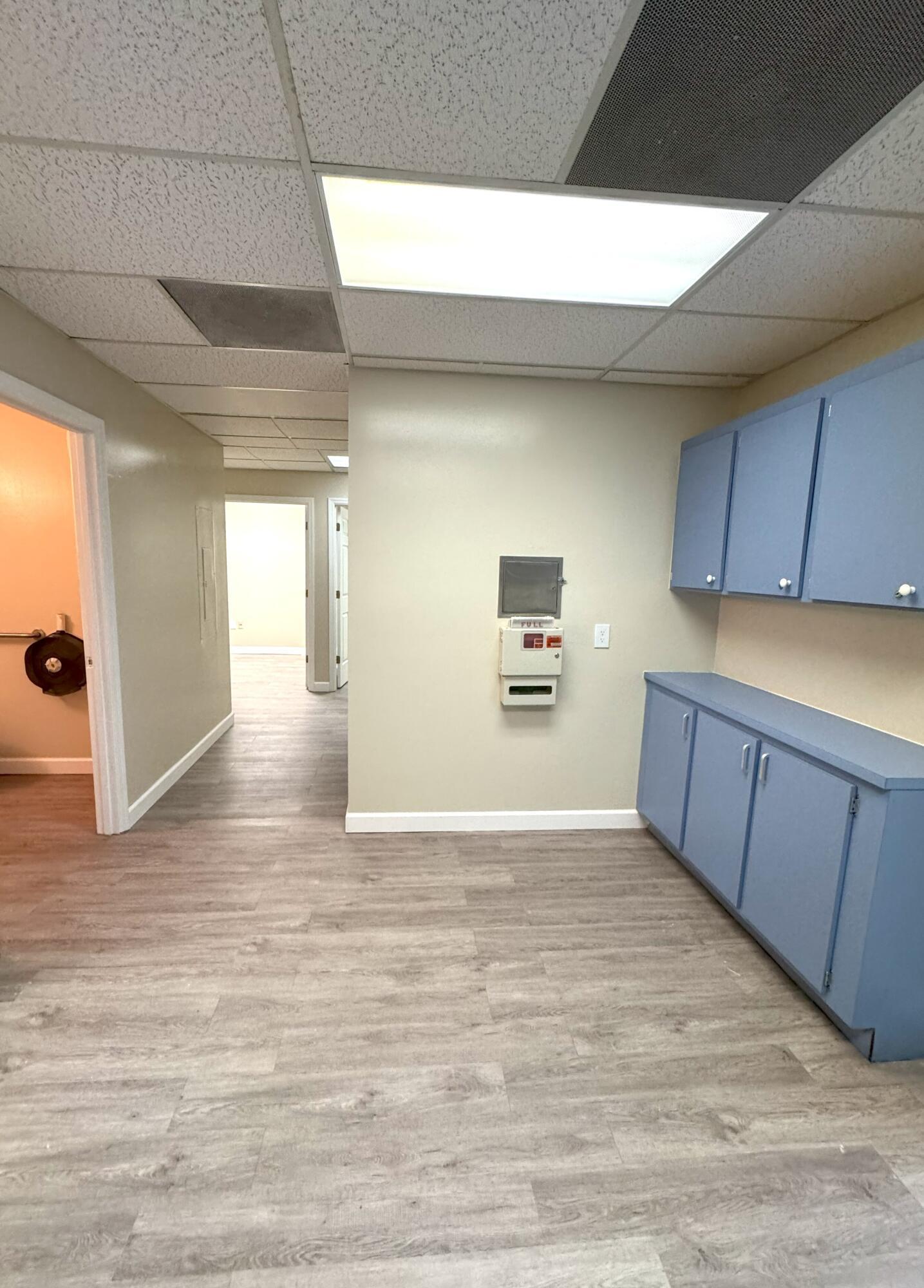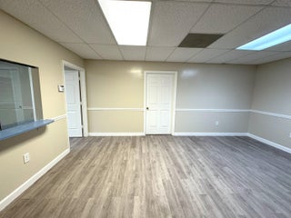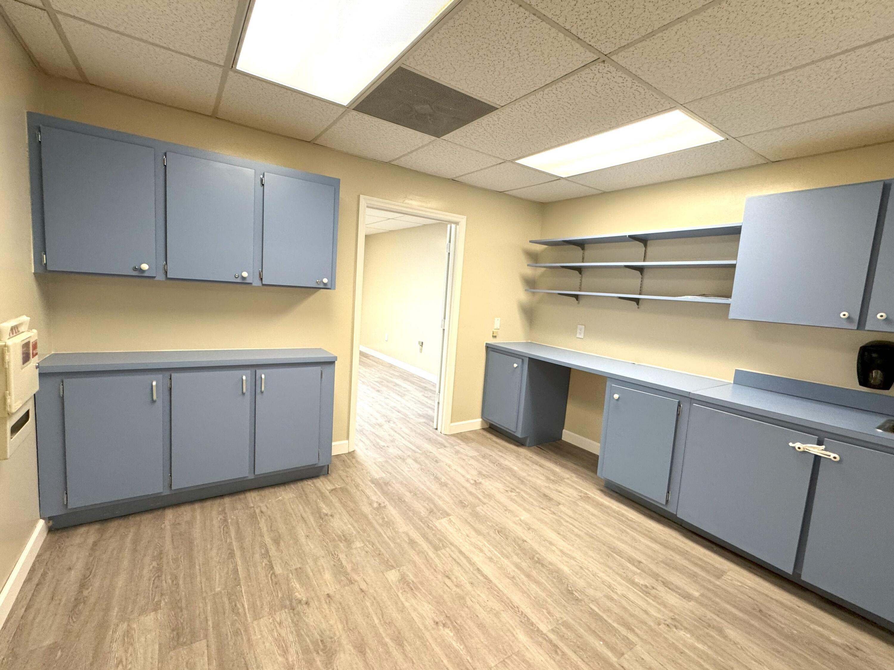 Professional Medical Offices in a well maintained building with a total of 8 offices. Ready to move in suite 106 has awaiting area for patients well lit and with direct access to the 4 examination rooms. There is a TRIAD section for the nurses, an ample reception area with plenty of room for filing systems and electronics.A doctors office, two handicap adapted bathrooms and storage areas for supplies.
