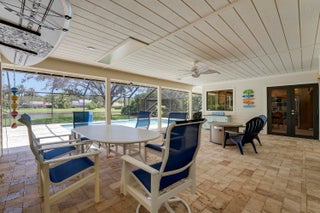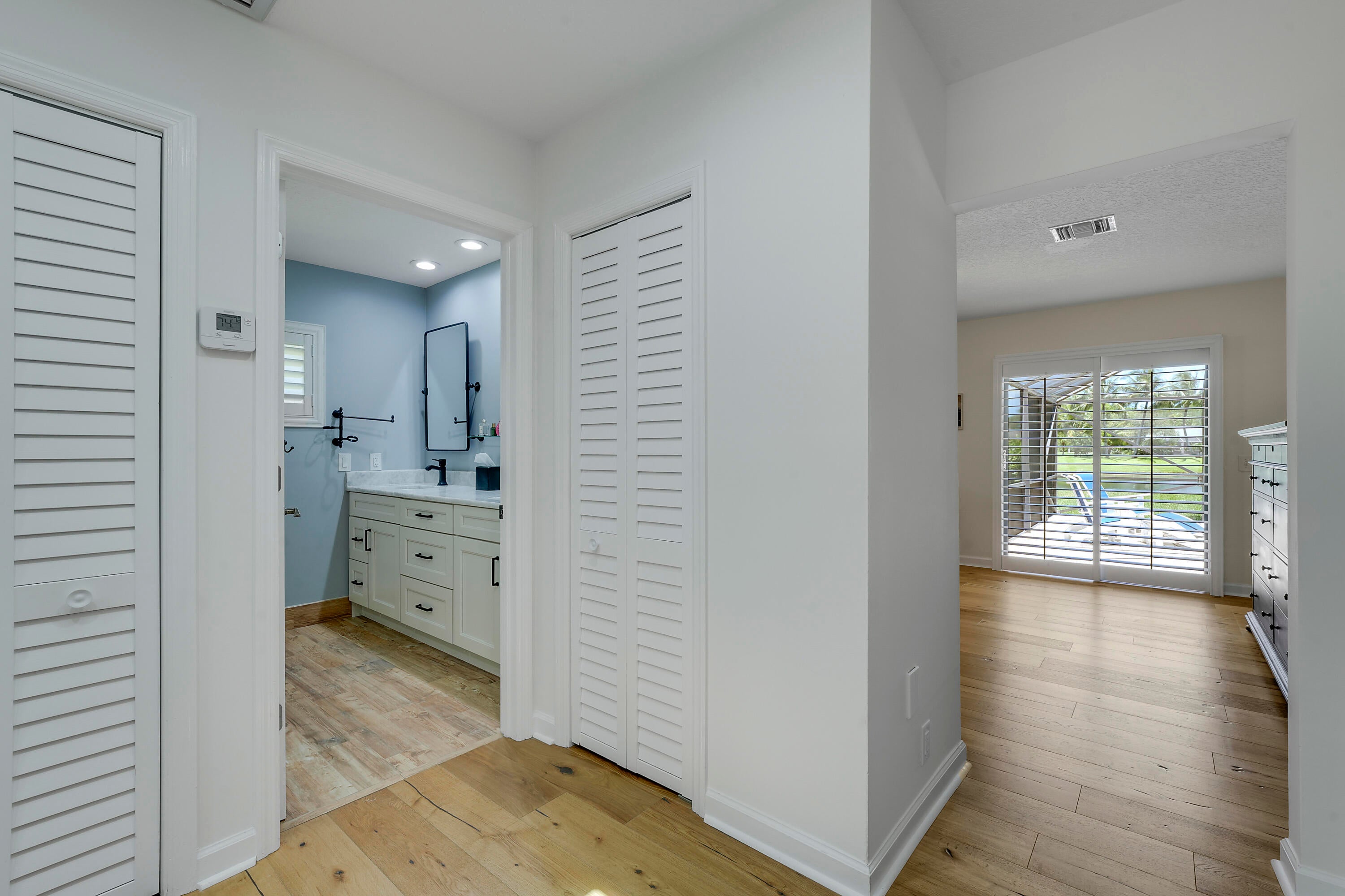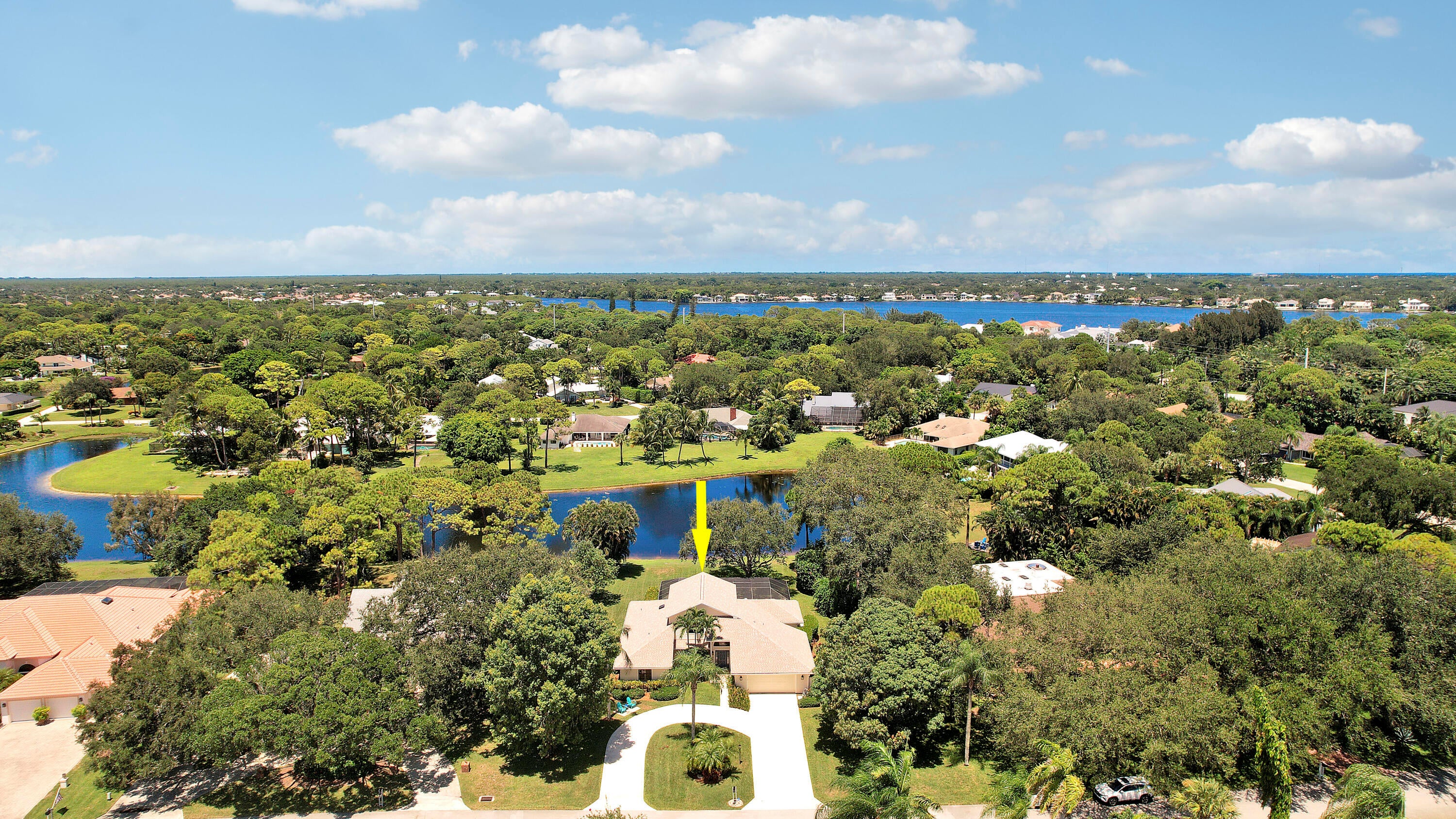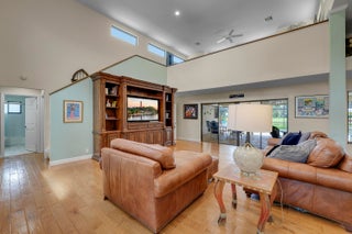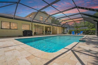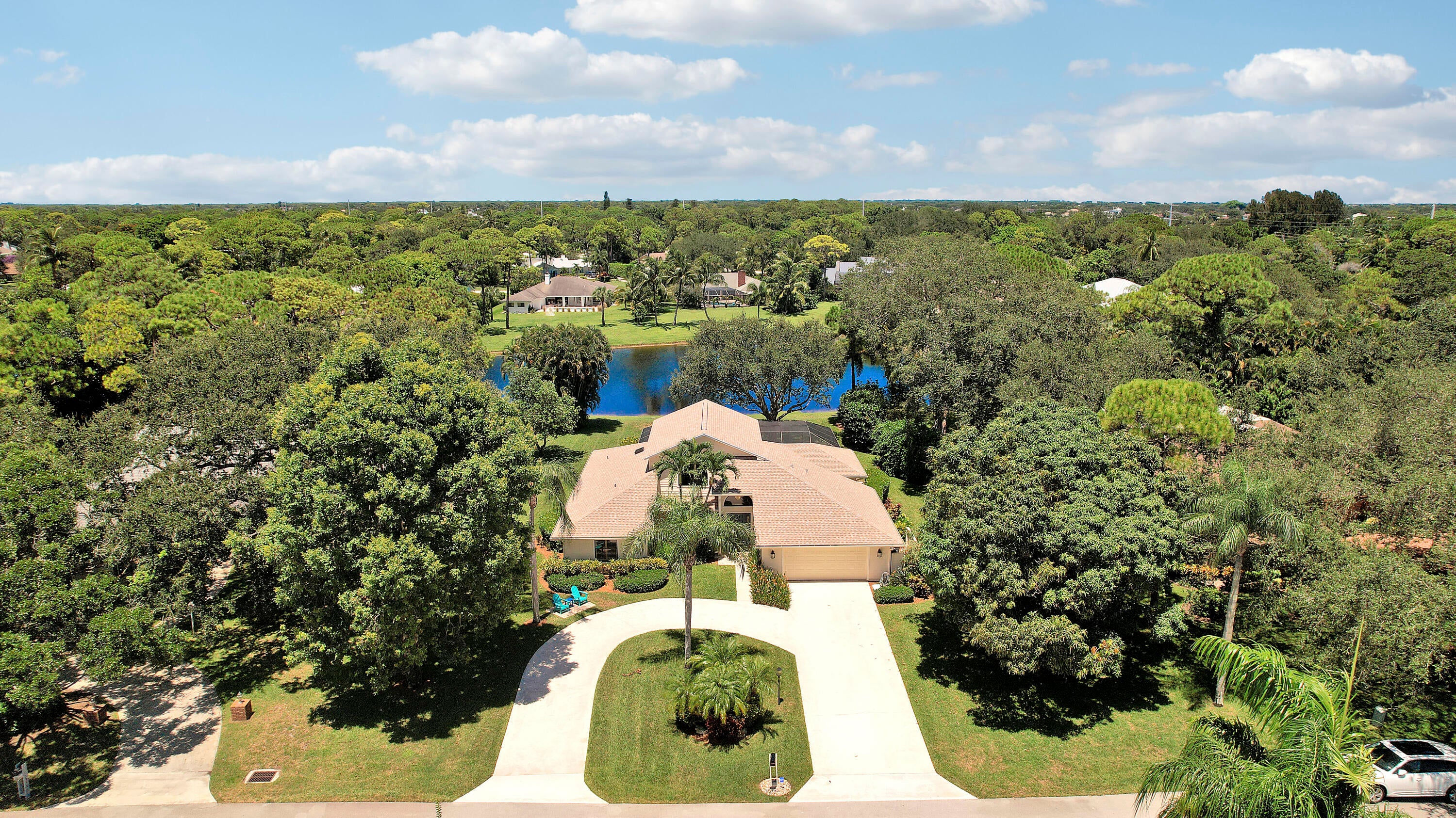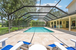 Lakefront Living in the Heart of Jupiter. Welcome to this well appointed 4 bedroom, 2-bath home (4th bedroom is a versatile loft), offering nearly 2,500 square feet of open-concept living on a half-acre lakefront lot. Soaring ceilings and abundant natural light create an airy, inviting atmosphere throughout.The spacious kitchen is a chef's dream, featuring a large island with granite countertops, newer stainless-steel appliances including a double wall oven--perfect for entertaining. The split-bedroom floor plan ensures privacy, with generously sized rooms and thoughtful design. Step outside to your private oasis: a screened-in pool with glass tile accents, a new saltwater system, and light pavers that surrounds the pool and extends into the covered patio with custom wood paneled ceilinga place where you can entertain and enjoy your friends and family year-round. Additional highlights include: 2025 New roof, Hardie plank siding, Newer A/C units, Impact-rated front door, garage door, and select windows, New gutter system, Wood flooring and updated bathrooms, Large storage room off the laundry area - convertible to a third full bath, Circular driveway for easy access and curb appeal. This home blends comfort, style, and functionality in one of Jupiter's most desirable settings. Whether you're looking for a peaceful retreat or a vibrant space to entertain, this property delivers.