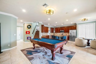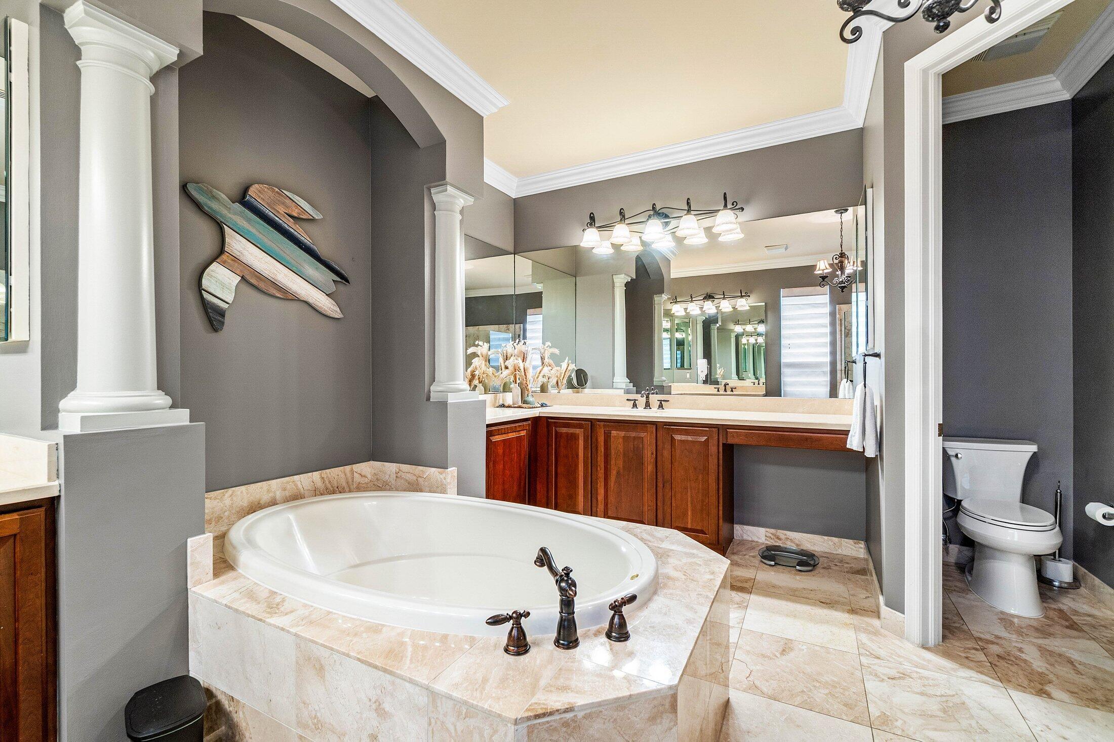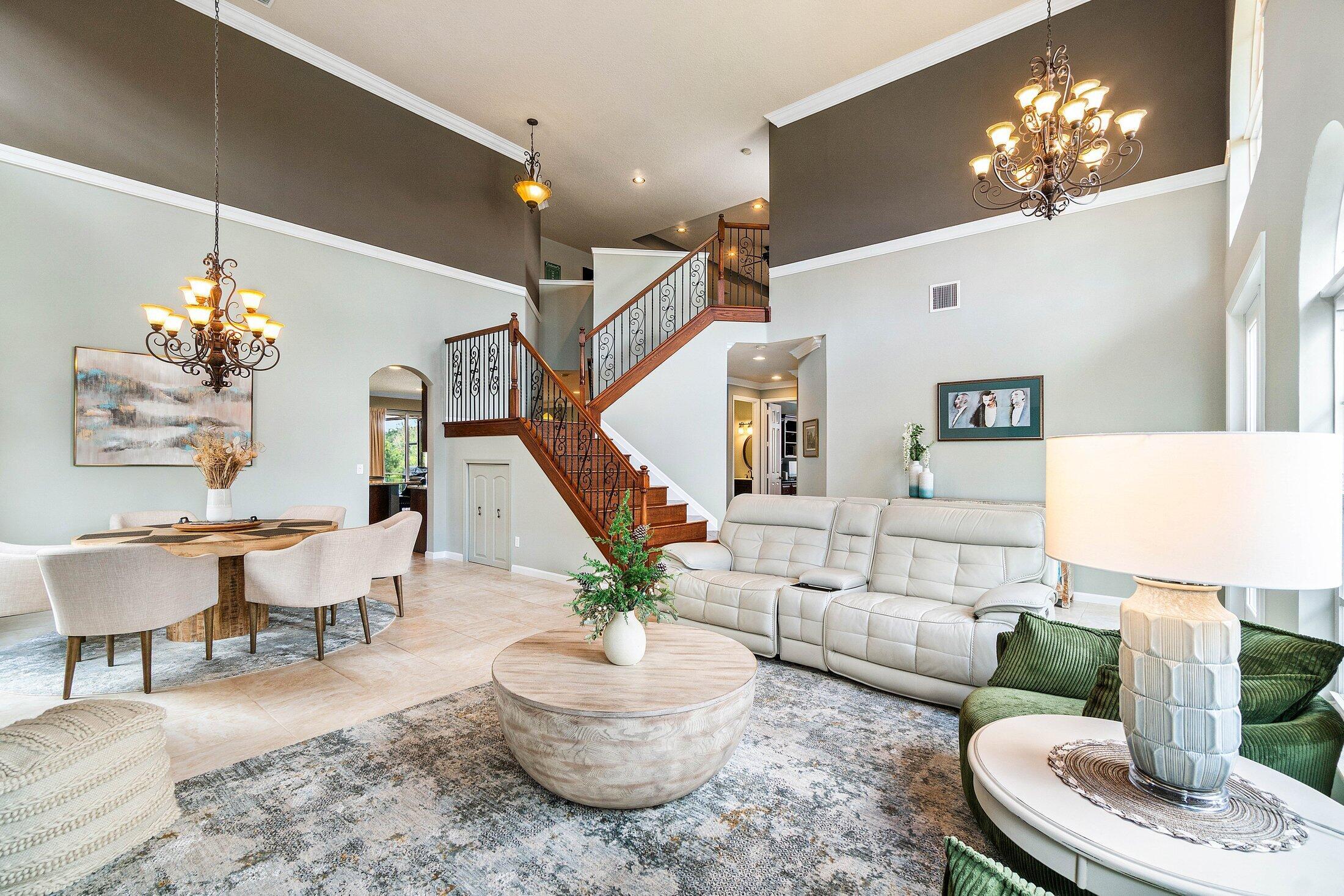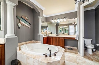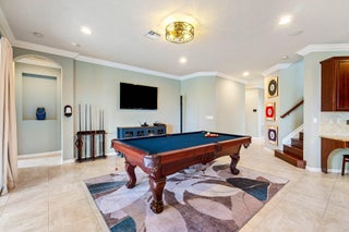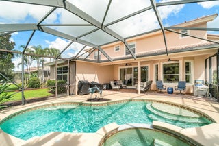 Tranquil lakefront home residing in Legacy Cove of Stuart. This Brookfield model commands Southern exposure and offers 3,646 square feet of living space, four bedrooms, study, three full bathrooms, powder room along with an expansive loft. Finishes and noteworthy attributes; impact windows throughout, new double impact front door, freshly painted interior throughout, new fans, dual vanity primary bathroom with separate water closet, new commodes, salt chlorinated pool and spa with new cell and motherboard and a three car garage complete with dedicated Level 1 and Level 2 EV receptacles.