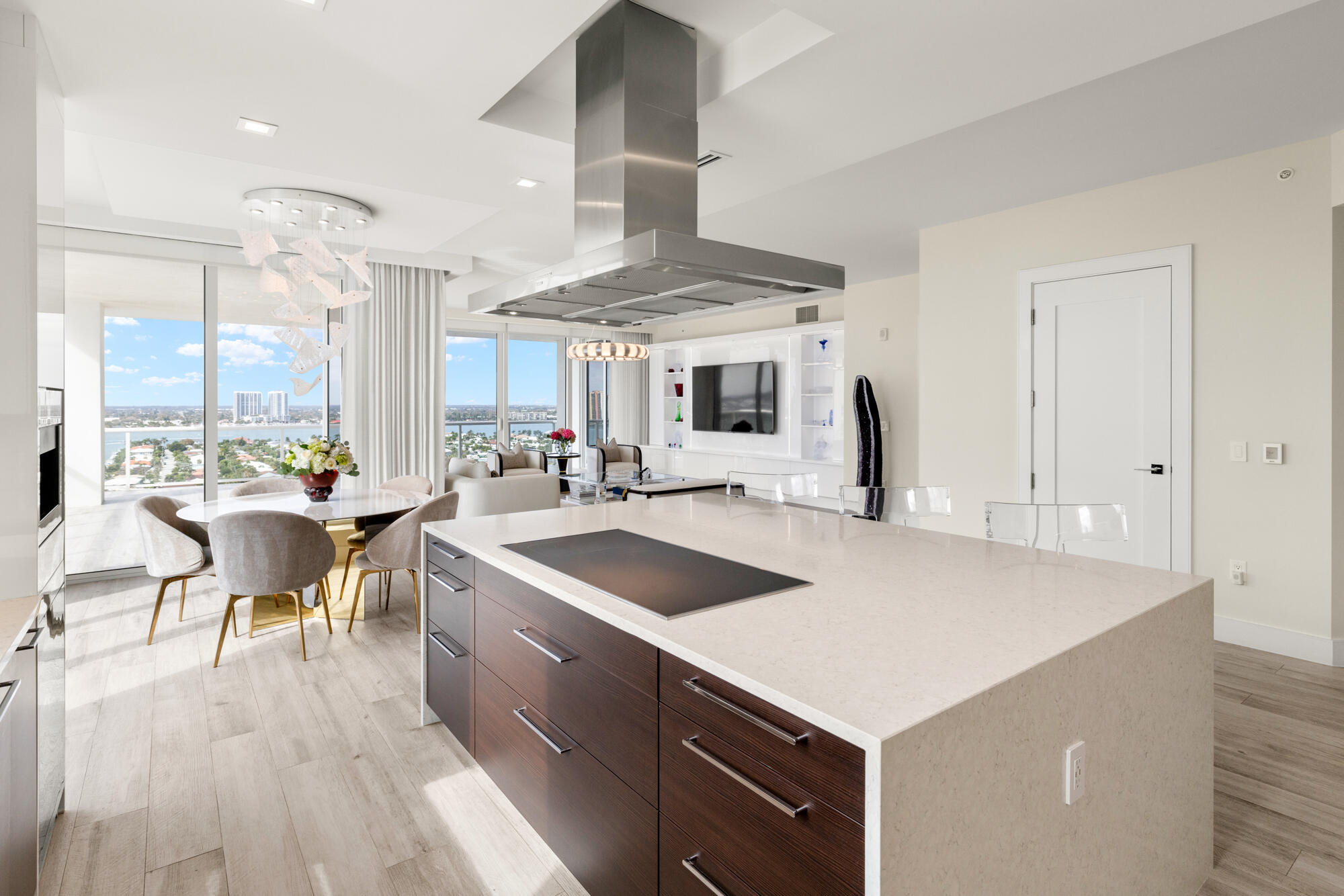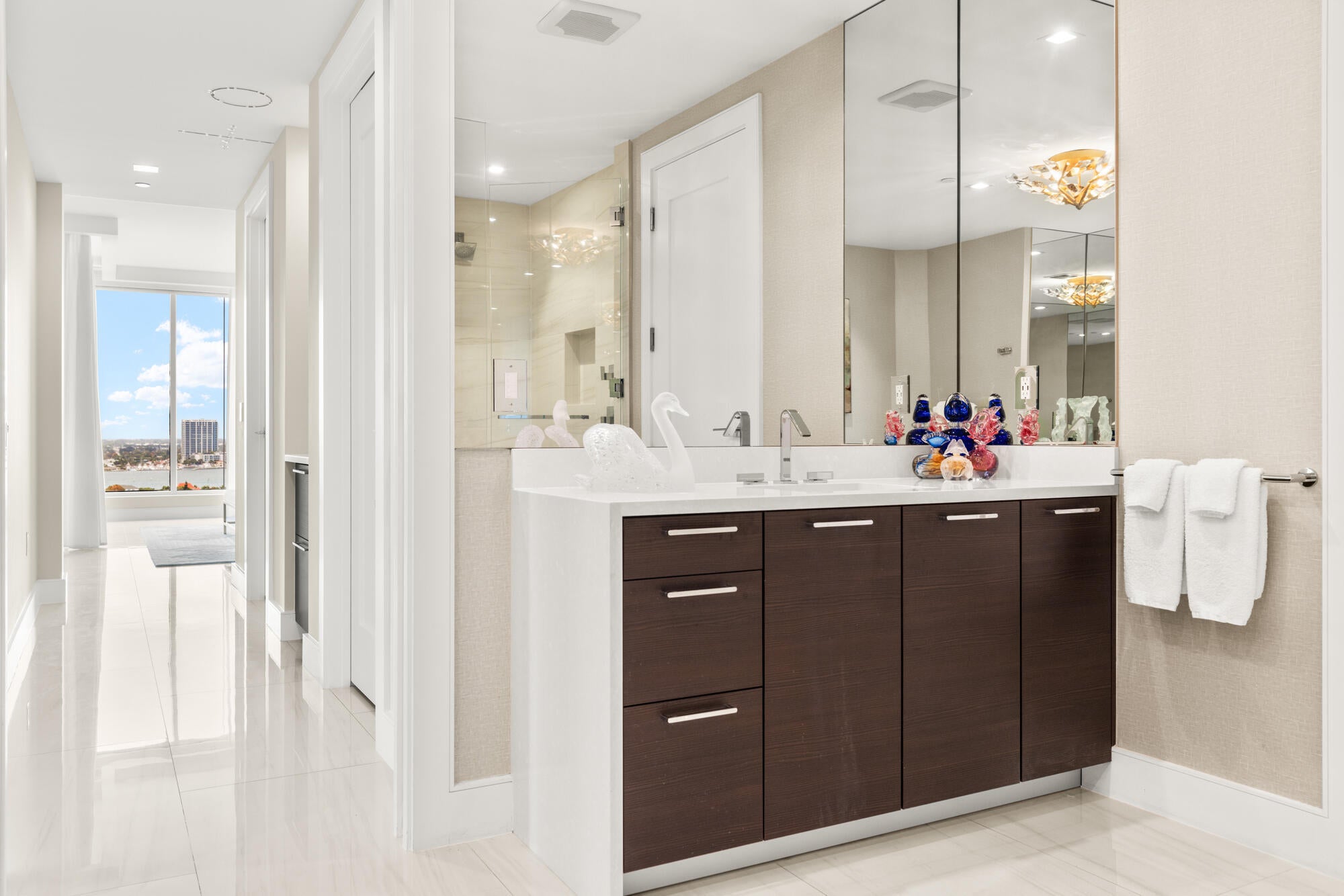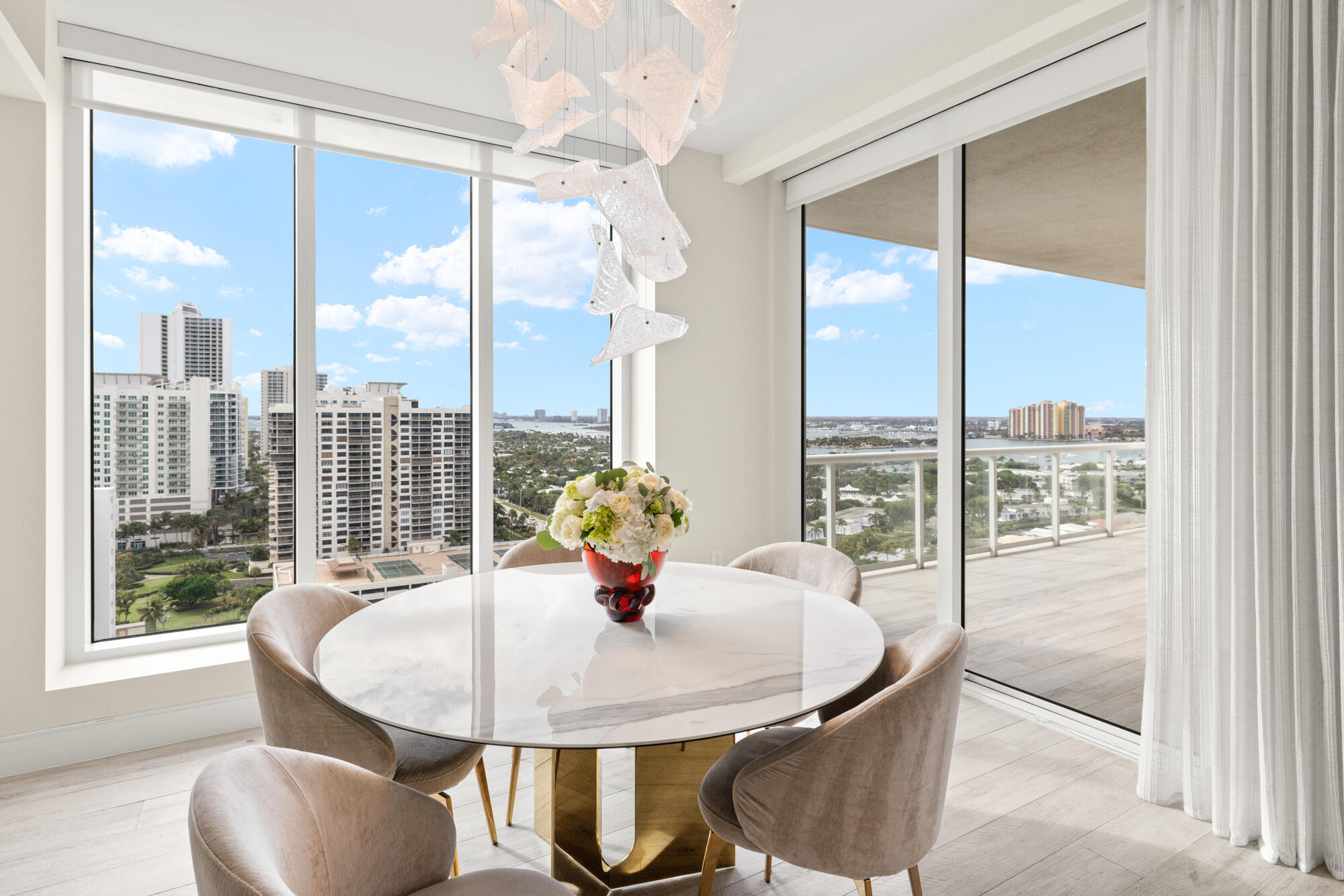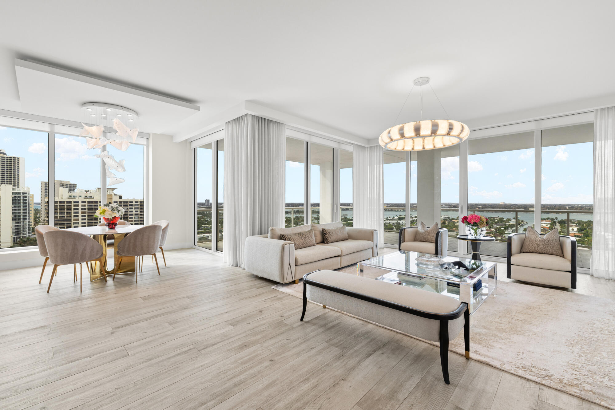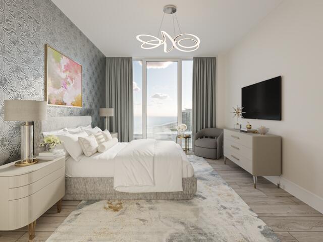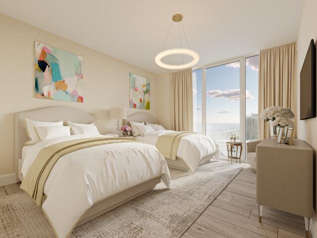 Indulge in unparalleled luxury at Vistablue with this exclusive residence. Featuring sweeping city, Intra-coastal, and ocean views 17 D is the epitome of sophistication. This 17th-floor residence has been elegantly crafted by Haleh Design. Complementing its design is Poggenpohl custom cabinetry, quartz counter tops, and premium Miele and Subzero appliances, complemented by Lutron shades and high-impact glass throughout. Enjoy lavish living with high-end furnishings amidst five-star amenities including a gated entry with security, on-site concierge services, an elevated pool terrace, cabanas, spa pool, and a state-of-the-art fitness center. With an expansive private beach and social lounge, this residence exemplifies sophistication and opulence at every turn.VistaBlue is where coastal elegance meets high-end lifestyle with the iconic Palm Beach Island just 20 minutes from Vistablue.