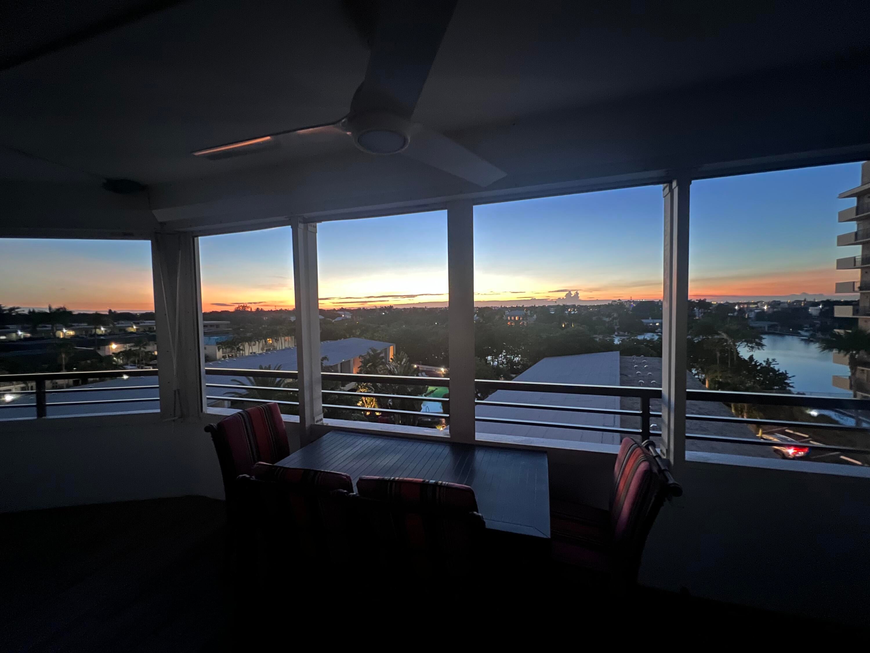 Updated 2/2 on barrier island! Tranquil Intracoastal and Sunset Views! Split bedroom floor plan. Renovated kitchen with granite counters, plus designer baths! Inviting living area with generous space for entertaining and relaxing with family and friends. The heart of the space is balcony, which connects a bedroom, kitchen and primary living area. It is deep and long, so the space is wonderful for all occasions. The condo has impact windows and shutters, so it is ready for storms. The property has a pool on the ICW plus an ocean club on the sand, with additional pool and outdoor BBQ and indoor kitchen. Beach access is provided. The community has a gym, sauna, doorperson and loads of guest parking. New AC 2023/H2O Heater 2022. Community finished new roofs and concrete restoration.