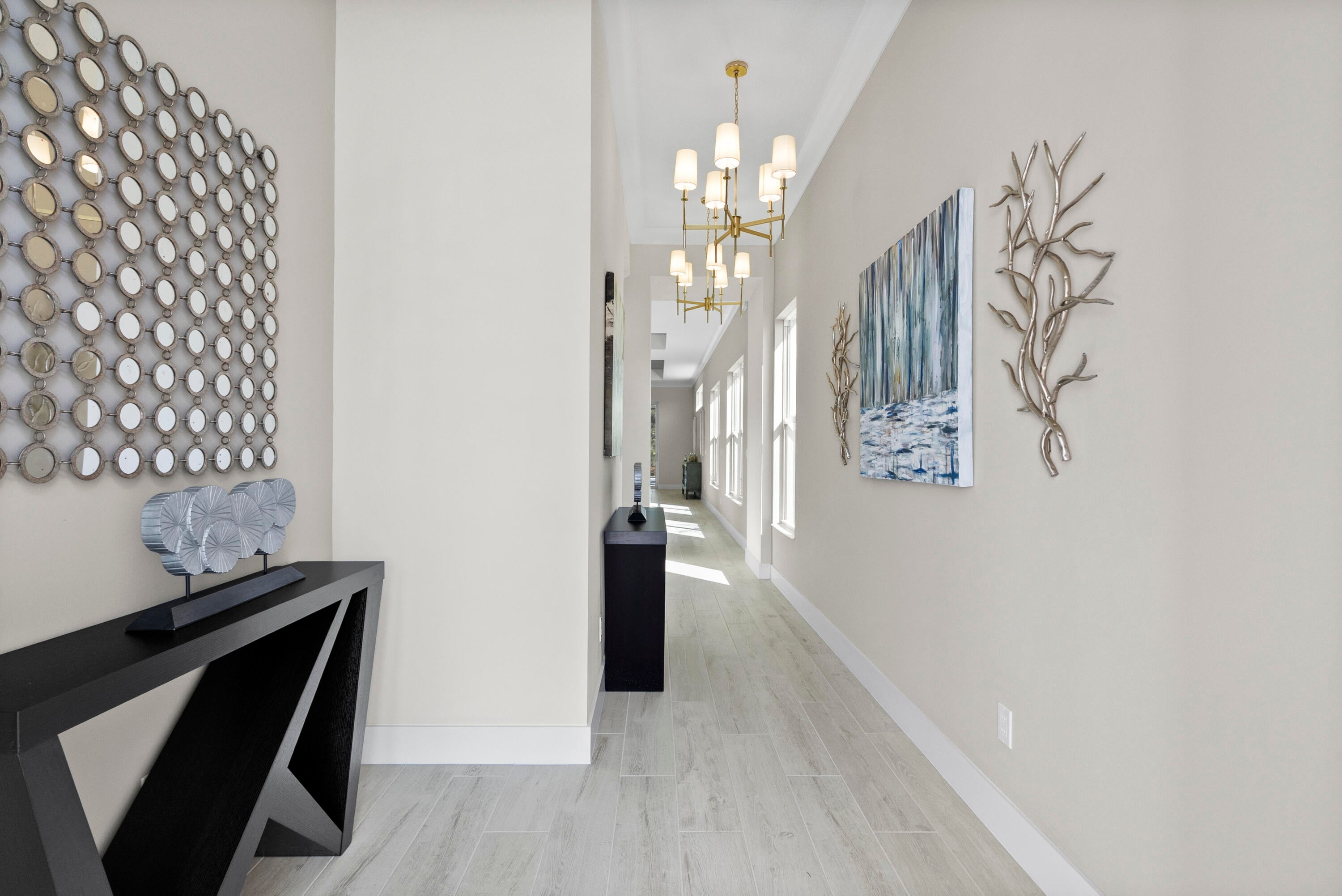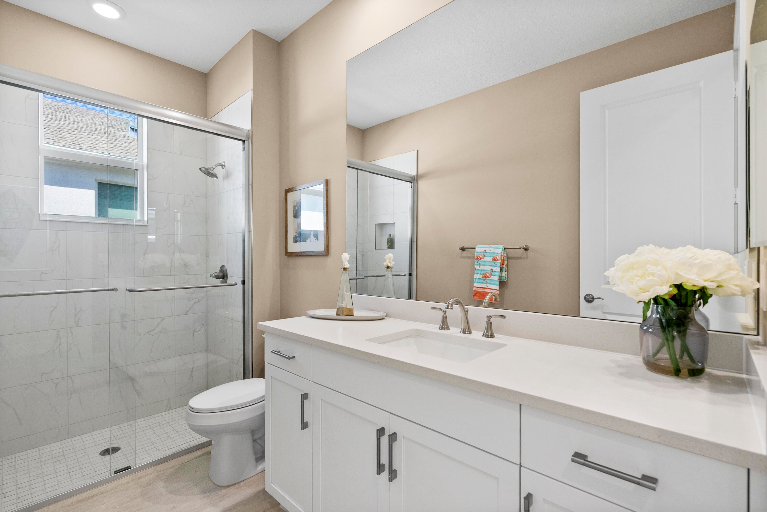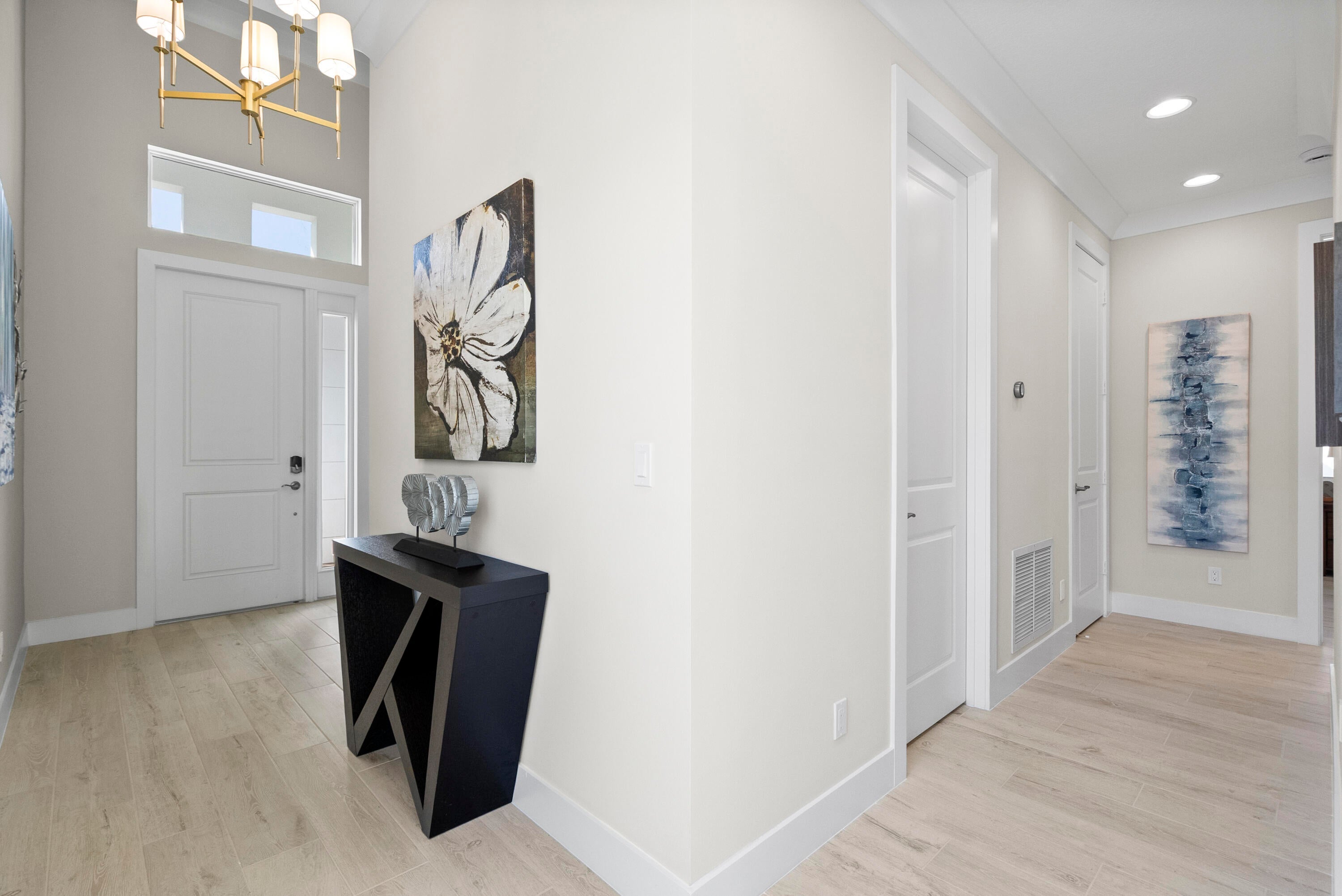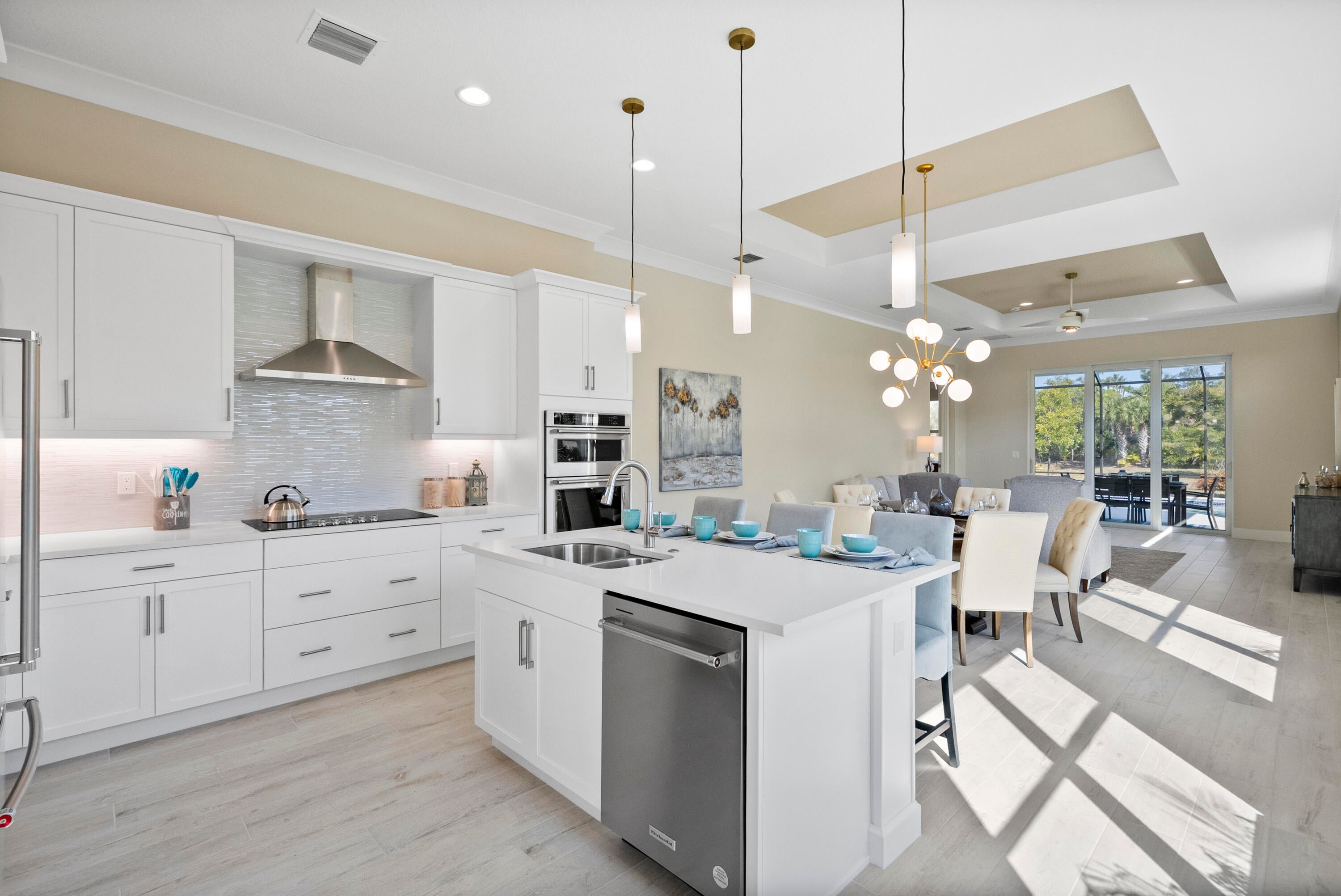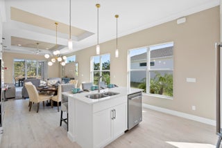 This is a beautiful Mirador floor plan. The kitchen has been upgraded with premium stainless steel Kitchen Aid appliances, elegant white cabinets featuring soft-close doors and drawers, and luxurious quartz countertops. The entire home is adorned with porcelain plank tile floors and crown molding and in the main living areas. Beautiful lighting fixtures, Solid core doors and impact-resistant windows and doors are installed throughout the home.The Master Suite located at the rear is complete with a tray ceiling and large windows to allow plenty of natural lighting. The screened-in pool and lanai are perfect for those who want to enjoy the Florida lifestyle.