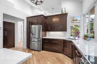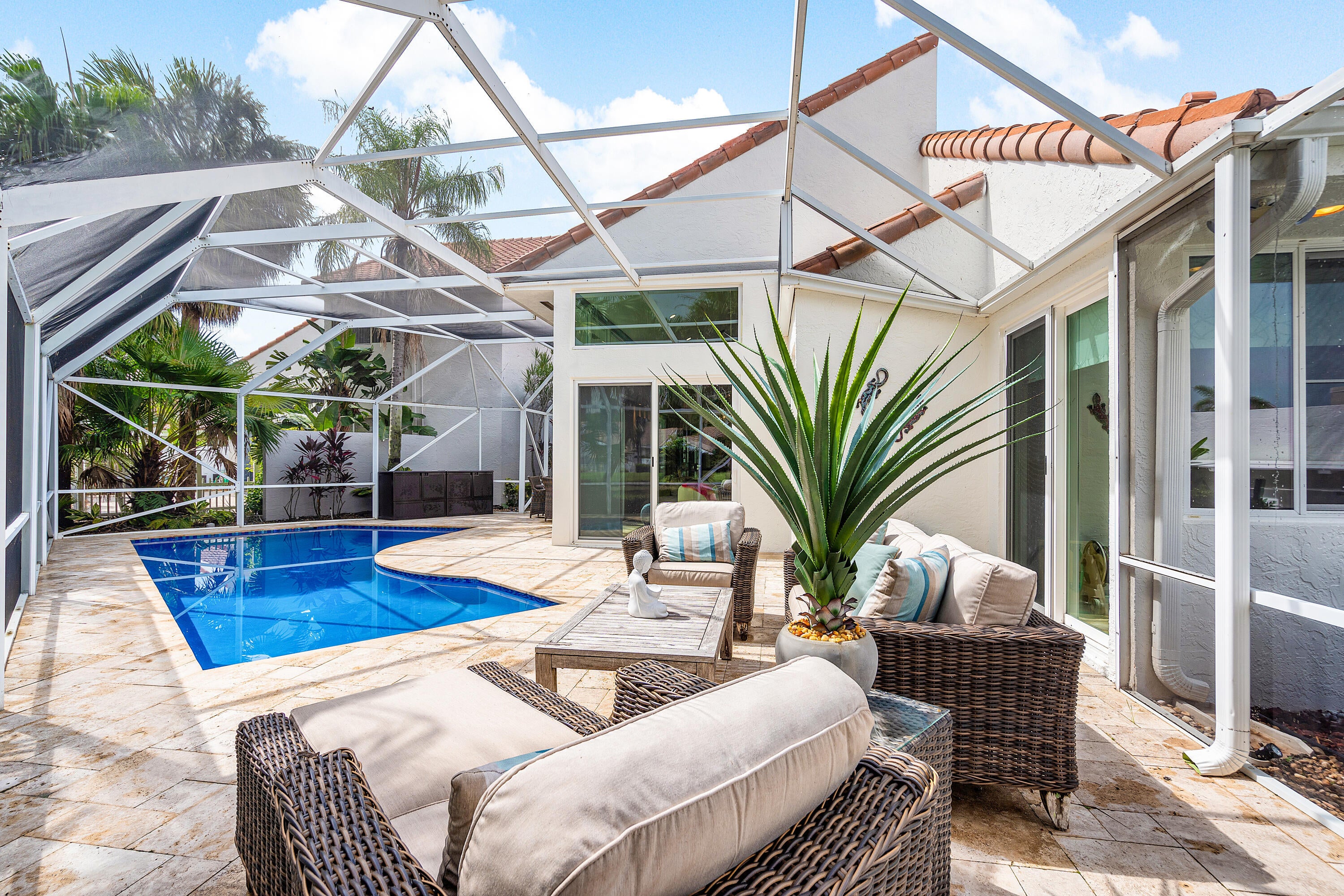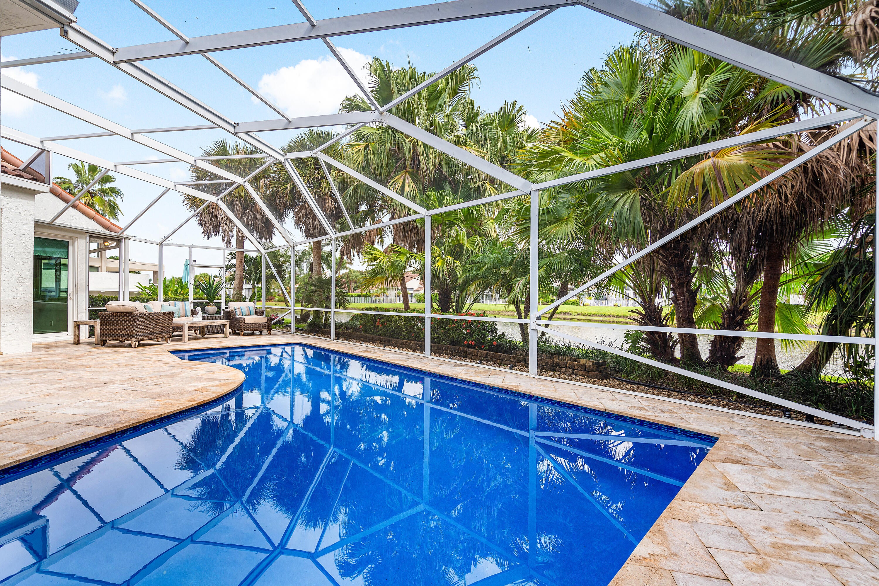 Stunning 3BR/2.5BA lakefront pool home in Newport Bay Club! This residence offers an open floor plan with complete impact windows/doors, Cristalo quartzite countertops in the kitchen, breakfast niche, and outdoor bar. Beautiful hardwood floors throughout the main areas and primary bedroom. Enjoy the redesigned screened pool area with new travertine deck, pool tiles, heater, and salt filtration system--perfect for entertaining. Additional features include 2 new AC units and flexible ducts, new water heater, Swarovski chandeliers, and a huge custom master closet. Exterior painted in 2025 with all new professional landscaping, lighting, and coach lights--this home is move-in ready and beautifully appointed inside and out. Live the country club lifestyle without the mandatory equity dues.