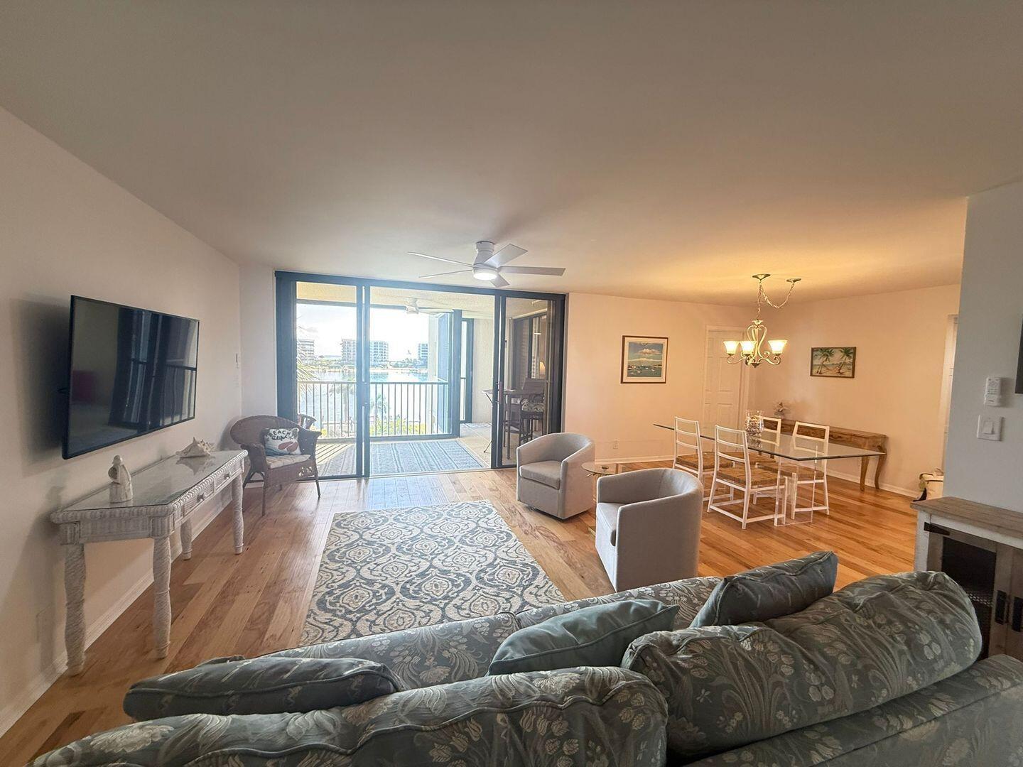 THIS IS THE NORTH BUILDING. Luxury, furnished seasonal rental, Tequesta! Stunning Intracoastal PropertyExperience Breathtaking Intracoastal and Ocean Views from a Lavish 4th-floor Floor Condo Available as a seasonal rental, where you can wake up to stunning, panoramic views of the Intracoastal Waterway and the Atlantic Ocean. This meticulously maintained 4th-floor condo offers a unique and spacious floor plan in an ideal coastal location with the area's finest amenities. The unit features two large suites, each with its own balcony access, ample closet space, private dressing area and full bath. Recent upgrades include a new A/C unit, new water heater, in unit washer and dryer, and updated appliances. Beautiful hardwood floors and freshly painted walls and ceilingsthroughout are complemented with brand new carpeting in each bedroom. The spacious glass enclosed balcony provides an additional living area, perfect for opening the windows and enjoying the easterly ocean breezes as you watch the boats sail by. This community is an oasis of its own, with a heated waterside pool, a day dock for fishing or just relaxing, and two private sandy beaches. Enjoy paddleboarding or kayaking with convenient beachside storage, or stay active on the community's private tennis and pickleball courts. Additional amenities include a recently remodeled clubhouse with a gym, men's and women's saunas and locker rooms, and a spectacular waterfront grilling and indoor/outdoor dining area. Check out the resident turtles, manatee, and other marine life on your own, or join in on one of many social opportunities available... Sandpointe Bay has it all. This prime location is just a short drive from excellent restaurants and shopping, world class beaches and natural coastal trails, and the courses that have attracted so many top professional golfers to the area. With both international airports and world renowned islands of Jupiter and Palm Beach within reach, this peaceful paradise is as convenient as it is luxurious. *Views: Intracoastal and Ocean *Amenities: Heated waterfront pool, private beach, day dock, tennis and pickleball courts, kayak/paddleboard storage, bike room, gym, locker rooms/sauna, assigned covered parking plus ample additional resident & guest parking, storage locker for luggage, golf clubs, beach chairs etc, outdoor grilling and dining area, clubhouse with a variety of activities available *Upgrades: New A/C, Water Heater, and Appliances; New Carpet and Fresh Paint