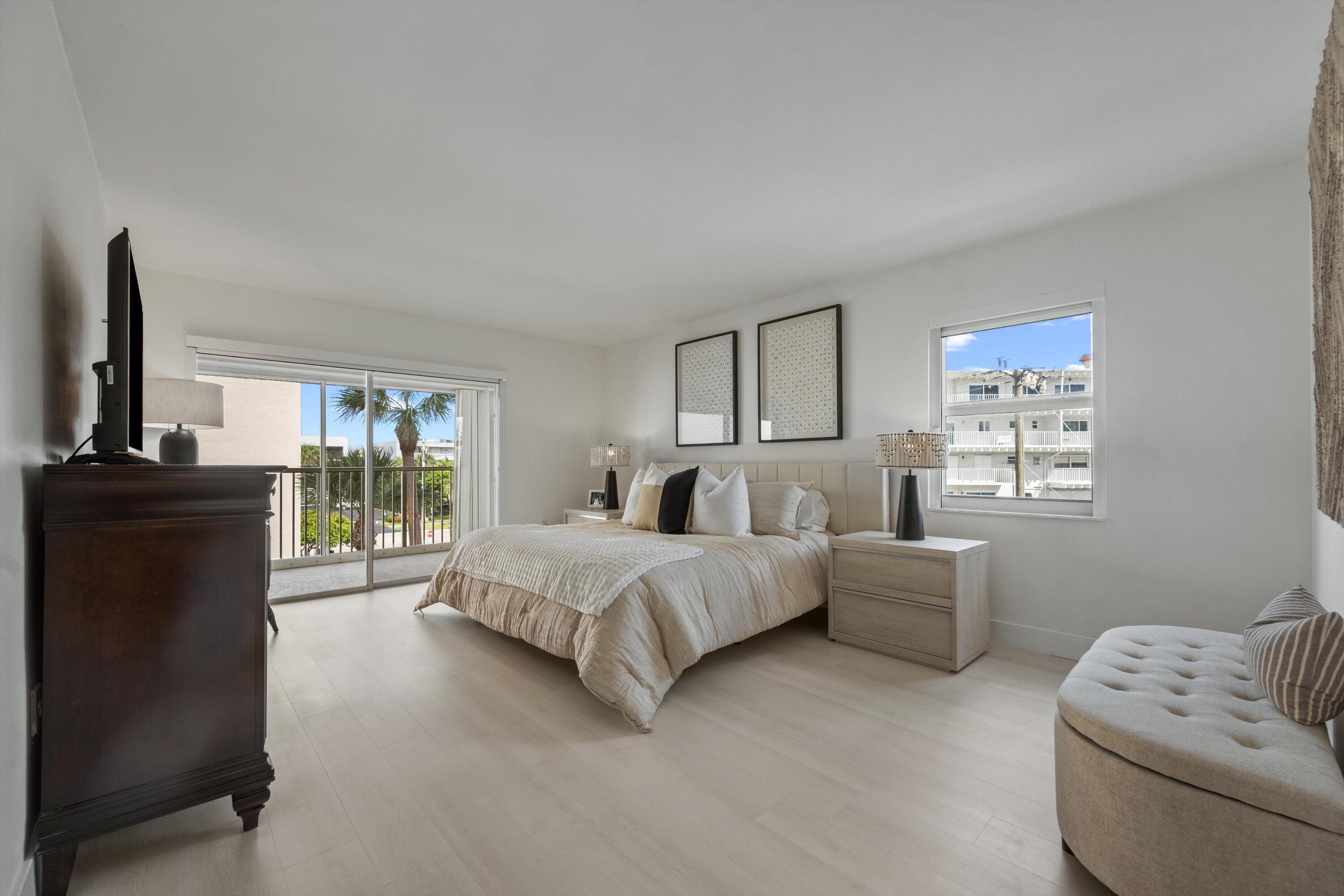 Welcome to coastal living at its finest with direct beach access! Nestled in the heart of South Palm Beach, this stunning condo offers an open and airy layout with southeastern exposure. The unit features three spacious bedrooms, including a primary ensuite, providing both comfort and style. Custom-fitted closets provide ample storage space, ensuring an organized and clutter-free home. The living area boasts recently remodeled and permitted bathrooms, updated electrical panel. new laminate flooring, lighting, fresh paint, and hurricane impact windows fitted with hurricane shutters on the patio for peace of mind. Kitchen is equipped with stainless steel appliances and roll-out shelving in the pantry fitted with real wood cabinetry. Professionally decorated, furnishings negotiable.