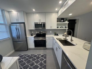 Newly remodeled condo MINUTES from Downtown West Palm Beach and PBI AirportSpacious modern style 2/2 with a large storage/laundry room that could be made into a den, gym, etc.Entrance through private gate at Land of the Presidents.Quartz countertops and ceramic tile.