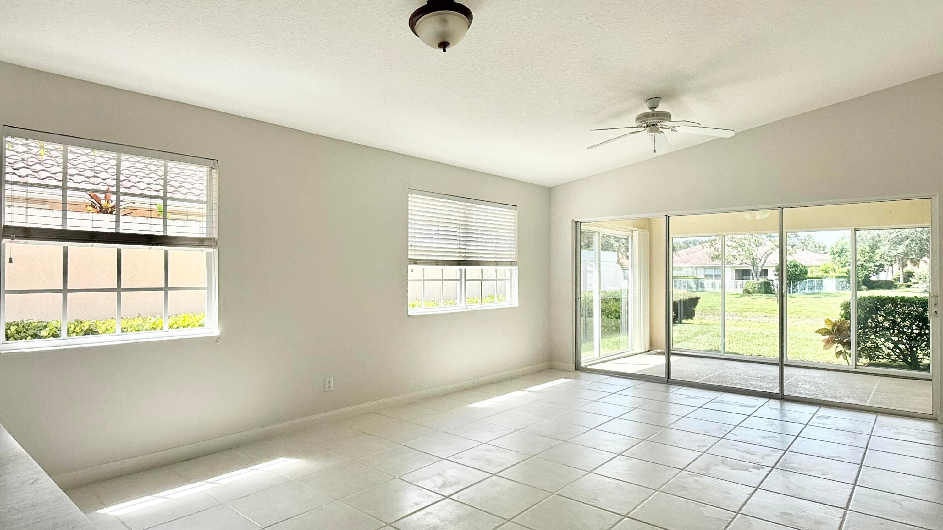 Welcome to this stunning villa that blends comfort and style with serene lake and bridge views. Featuring an open floor plan with vaulted ceilings, this home is perfect for entertaining or relaxing in your own private retreat. Highlights include: --Spacious Great Room with custom wall unit and tile throughout the main living areas -Brand-new luxury plank vinyl flooring in both bedrooms-Principal suite with a large walk-in closet, en suite bath with double vanity, and walk-in shower-Guest bedroom with private bath, shower/tub combo, and walk-in closet -Lanai with sliding glass doors, creating a bright sunroom to enjoy year-round -Private backyard offering peace and privacyModern updates include a new AC (2022), brand-new GE oven/range, central vacuum system Plus security system for convenience and peace of mind. This villa combines low-maintenance living with beautiful indoor-outdoor spaces, making it the perfect place to call home. aqua aerobics, foreign language classes, crafts and more are some of the other fun activities offered! River Walk offers luxury resort-style living, without extravagant ''country club'' fees! Conveniently located near the turnpike, Palm Beach International Airport, the Outlet Malls, Kravis Center, Downtown, and Palm Beach Island.