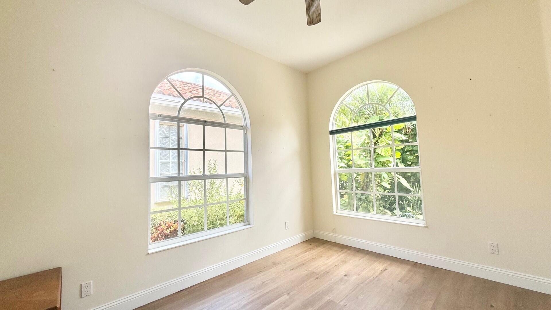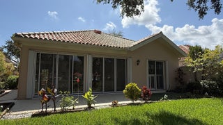 Spacious and beautifully maintained, this extended Oakmont model offers 3 bedrooms, 2 bathrooms, and a 2-car garage. The open floor plan features ceramic tile throughout the main living areas and luxury vinyl plank flooring in the bedrooms and den. Soaring 12-ft ceilings in the great room seamlessly connect the living and family rooms, creating the ideal space for entertaining.The principal suite boasts a unique double bathroom arrangement with walk-in shower, Roman tub, walk-in closet, and two additional wall closets. Two guest bedrooms on the opposite side of the home share a full bath, ensuring comfort and privacy for family or visitors. The laundry room includes a utility tub with updated washer and dryer. Added conveniences include a central vacuum and security system.Enjoy tranquil lake and bridge views from the open patio, surrounded by lush tropical landscaping that highlights pride of ownership. Located near the cul-de-sac with close proximity to the Town Center, this home combines space, functionality, and a prime location. The heart of this unique residential community is its waterfront Town Center where you can grab lunch or dinner at the on-site "Centanni" Italian restaurant; enjoy the tennis and pickle ball experience on the eight Har-tru lighted courts with on-site tennis instructor and active tennis program. Take a swim in one of the three heated pools, fish from one of the many picturesque bridges; stop by the library, play ping pong or pool. Also located in the Town Center is the full service Illustrated Properties real estate office, beauty salon, mail facility and children's playground. Enjoy 12 miles of scenic pedestrian pathways, take a bike ride or enjoy a vigorous work out in the renovated fitness center or play bocce - all for the exclusive use of River Walk residents! Yoga, mahjong, bridge, aqua aerobics, foreign language classes, crafts and more are some of the other fun activities offered! River Walk offers luxury resort-style living, without extravagant ''country club'' fees! Conveniently located near the turnpike, Palm Beach International Airport, the Outlet Malls, Kravis Center, Downtown, and Palm Beach Island.