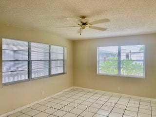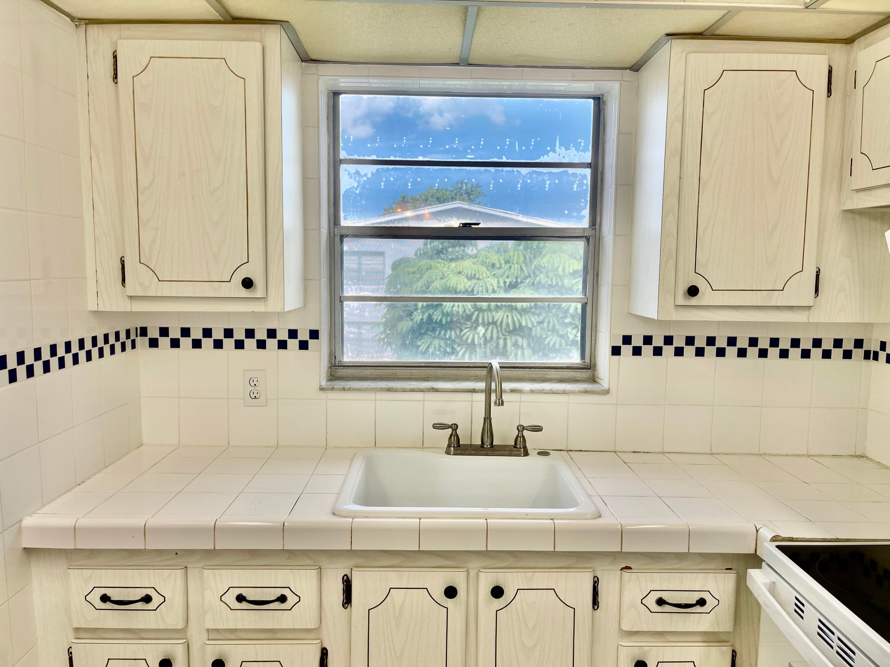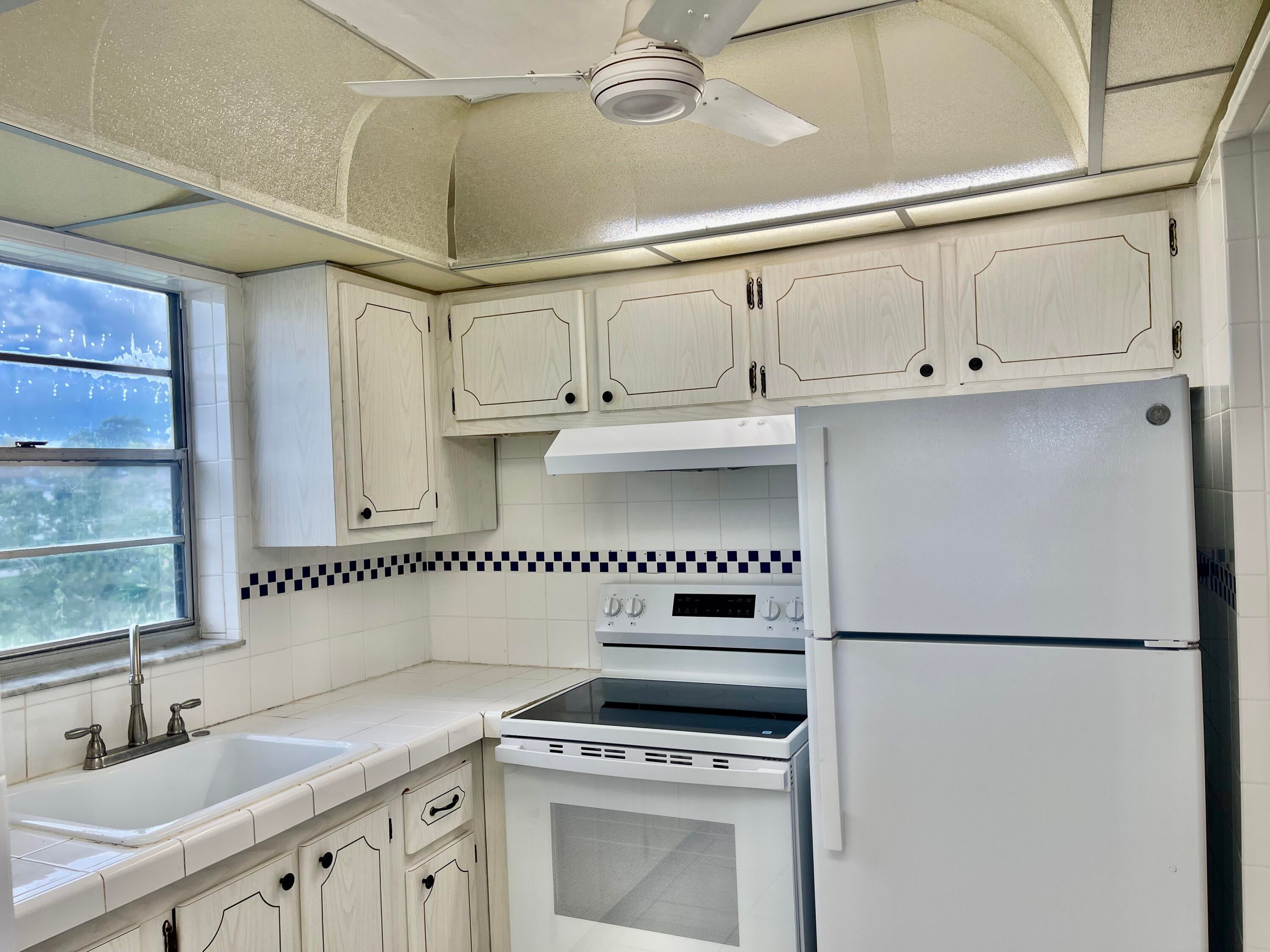 Enjoy Living in Paradise! Active 55+ Community. Lovely, private, bright corner unit with plenty of windows and Central Air. Open-concept floor plan with beautiful ceramic tile throughout. Brand new stove and gleaming new refrigerator. Plenty of counter space along with an oversized pass-through. Gorgeous, updated 1.5 baths, with a spacious owner's en-suite. Plenty of closet space along the entire wall of the owner's bedroom. A serene balcony that overlooks a beautiful grass area. Lift in Building. Near Kent pool. This community is packed with amenities, including 18 refreshing pools, a gym, clubhouse, and more, all tucked away in a 24-hour guarded community. Hop on the 7-day-a-week shuttle to get around the community or go outside for shopping.