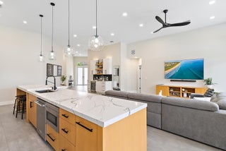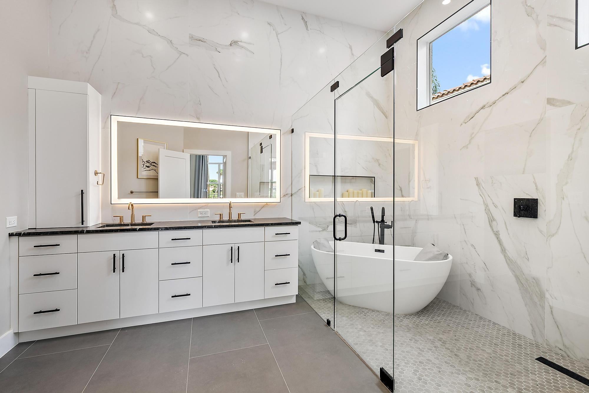 A RARELY AVAILABLE, COMPLETELY RENOVATED FALCON GREEN RESIDENCE. Homes in Falcon Green seldom come to market, and none have ever been offered in this condition. This is a truly rare opportunity: a FULLY reimagined and reconstructed residence where every element--inside and out--has been replaced, upgraded, or modernized in 2024. The renovation began with a NEW ROOF, hurricane-rated impact windows and doors, and two hurricane-rated garage doors with new openers. A brand-new HVAC system with all-new ducting, vents, and insulation ensures modern comfort and efficiency. Inside, no detail was overlooked: new drywall throughout, fresh baseboards and trim, new porcelain tile flooring in the main living spaces, plush luxury carpeting in the primary bedroom...and the addition of a versatile fourth Bedroom/Flex Room. The kitchen was graciously expanded and now features a show stopping 15-foot island, a striking mix of white and wood cabinetry, quartz countertops, a custom hood, and all-new upgraded appliancesdesigned to impress both in style and function. All three bathrooms were fully redesigned, with the Primary Bath as the dramatic showpiece. A freestanding tub within the shower enclosure creates a bold and spa-like centerpiece, maximizing space while making a stunning design statement. With sweeping vistas of the 4th and 5th holes of the Nicklaus-designed Heritage Course, the home is filled with natural light and breathtaking golf and lake views. Outdoors, the transformation continues with a fully resurfaced pool and spa, complemented by sandblasted marble pavers that create a sleek, sophisticated ambiance for lounging or entertaining. Enjoy a 2024 pool heater which heats the spa in under ten minutes and the entire pool in about two hours. Every system and finish has been addressed: new electrical, new lighting and designer fixtures, all-new plumbing and hardware, brand-new interior doors, and a full suite of new appliances. Even the oversized 2.5-car garagerare for Falcon Greenwas upgraded with new epoxy flooring. This is not just a renovated homeit is essentially a brand-new residence within the established, intimate neighborhood of Falcon Green. As a resident of The Club at Ibis, you'll enjoy world-class amenities, including a 90,000 sq. ft. clubhouse, three Nicklaus-family championship golf courses, five restaurants, a state-of-the-art fitness complex and spa, and premier tennis and pickleball facilities.