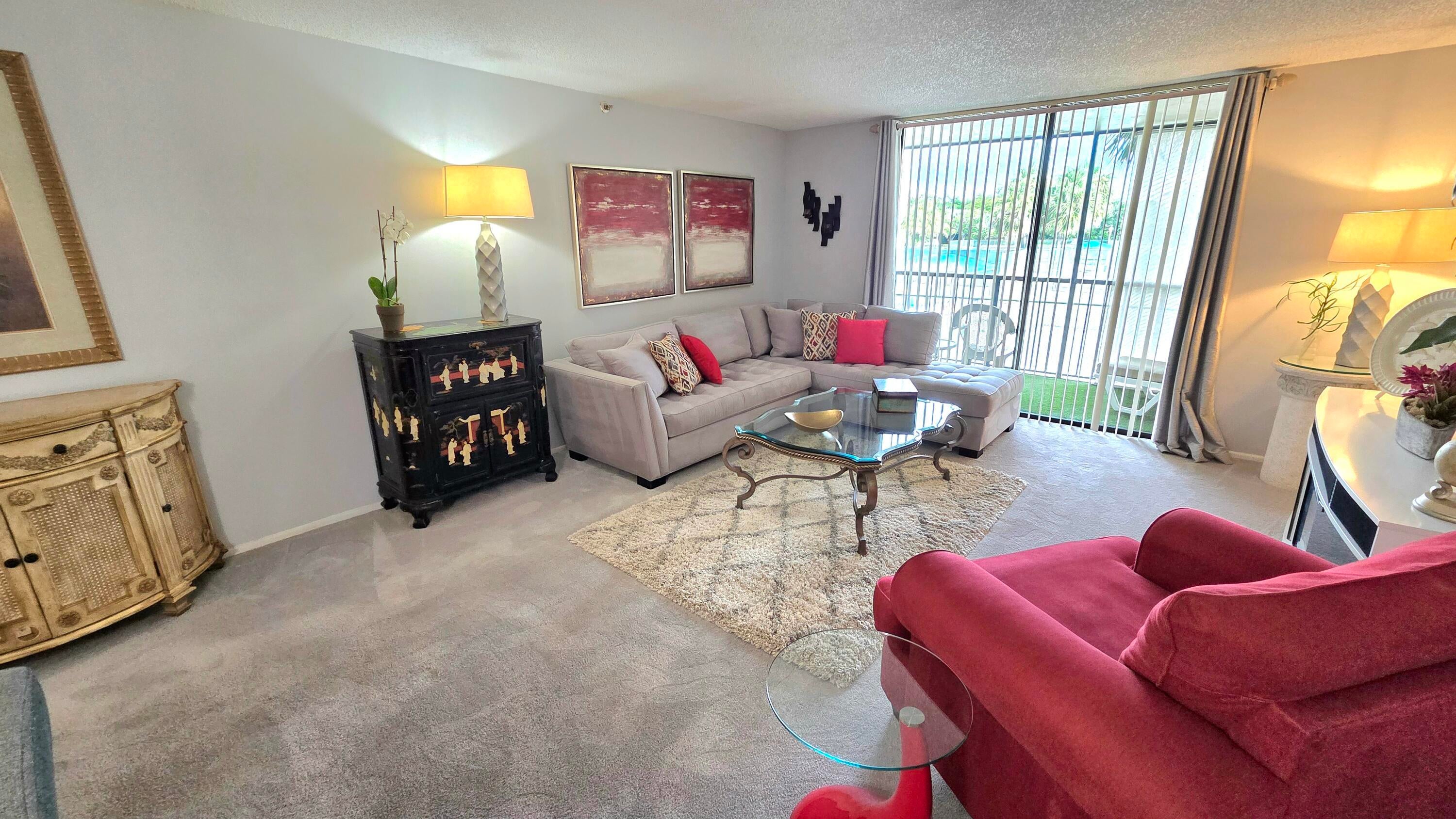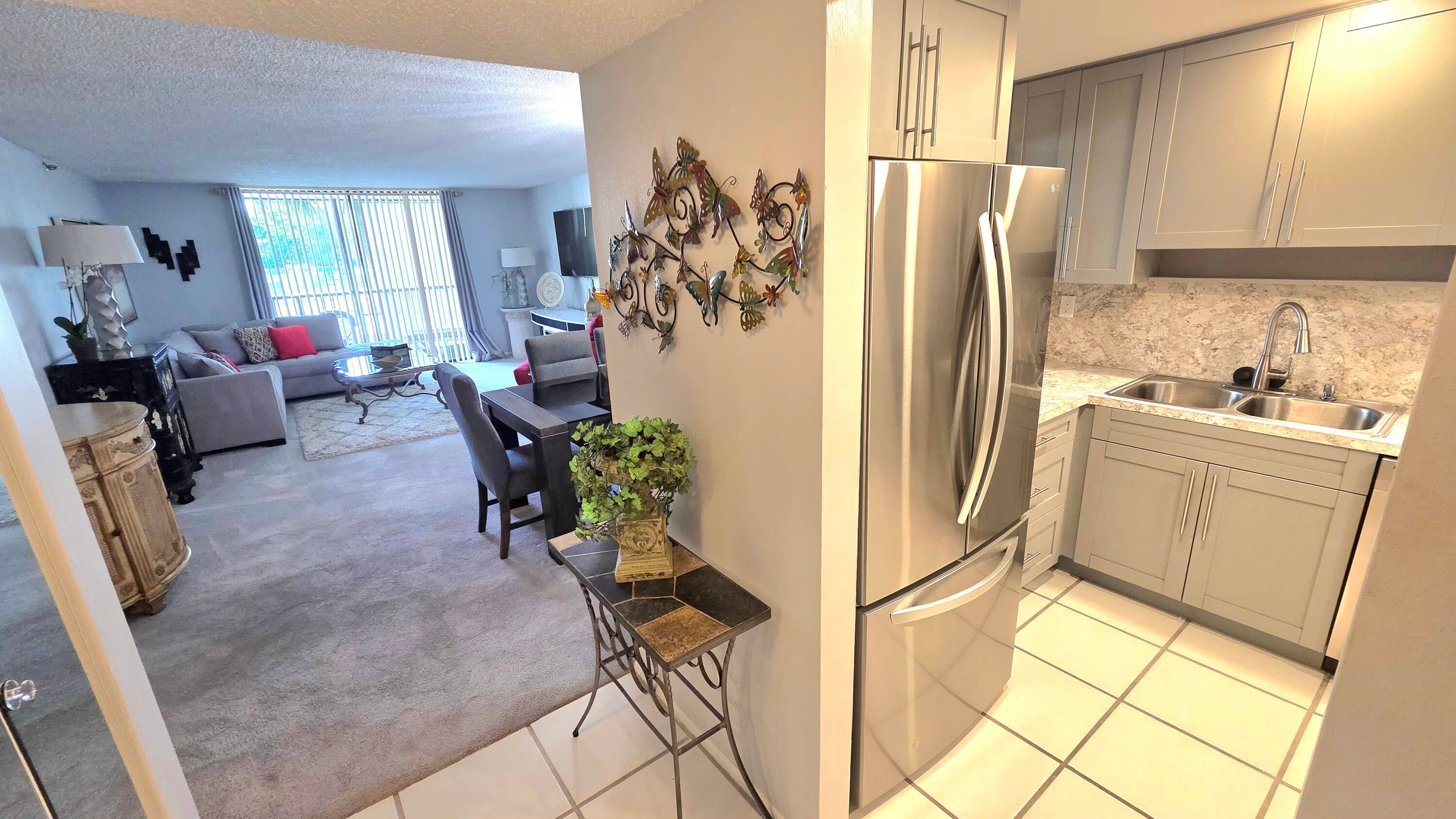 Discover comfort and convenience in this well-maintained 2/2 unit featuring updated kitchen, new hot water tank, with nice balcony overlooking tennis courts, under sink water filter, newer fridge, In-unit washer and dryer plus prime access to 22 Har-Tru tennis courts, heated pool, a pro shop and a clubhouse. Conveniently located on the second floor with elevator access. Perfectly situated near I-95, Florida's Turnpike, upscale shopping, dining, and the newly opened Ballpark of the Palm Beaches.