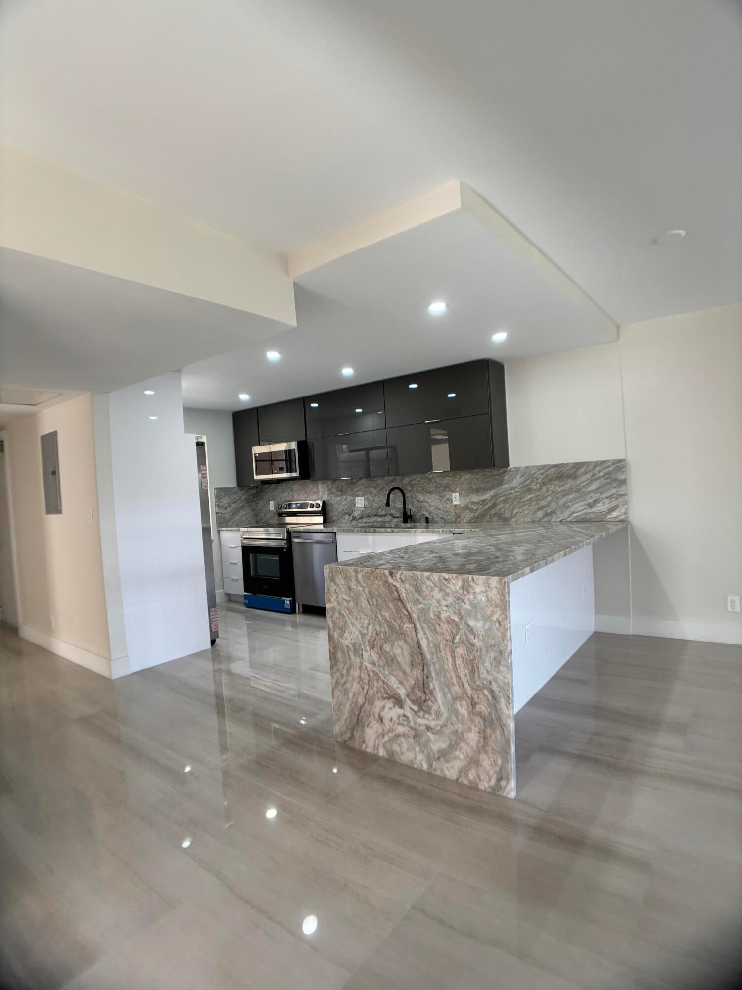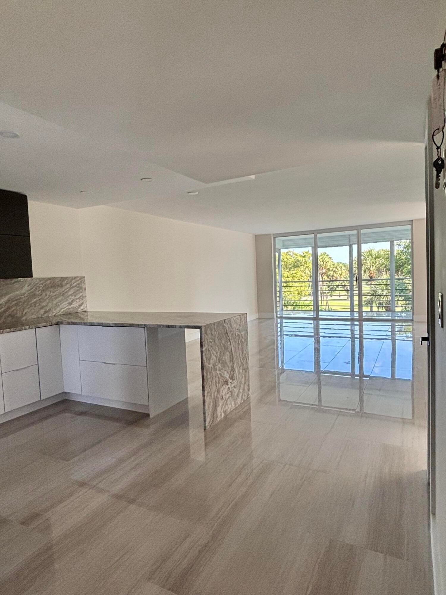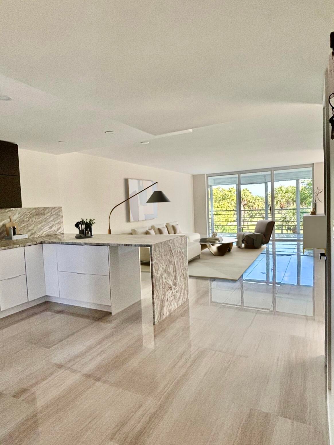 Fully remodeled corner 3BR/2BA condo bathed in natural light with panoramic golf & landscape views! Designer kitchen features unique granite, custom cabinetry, new appliances & sleek modern layout. Porcelain floors, elegant updated baths, and a spacious primary suite with sitting area. New Washer and Dryer. NEW impact windows. Parking directly across the entrance. Condo fee covers cable, internet, water, sewer & trash. 40-year inspection done, strong financials. Resort-style amenities: pool, BBQ & tennis. Walk to ''The Pomp'' with Topgolf, dining, casino & entertainment--just 4 miles to the beach. Luxury, comfort & location--bring your offer!