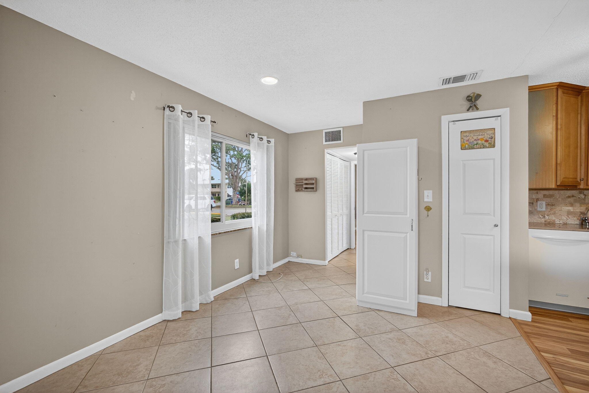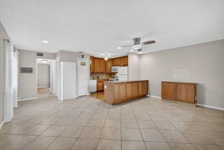 This condo offers two of the most sought-after features--an in-unit washer and dryer and central A/C--making it stand out from the rest. Located on the ground floor, this home is open, bright, and full of natural light. The updated kitchen includes a large island with cabinetry on both sides, a dishwasher, and a spacious pantry. Both bathrooms have been remodeled and the master features a walk-in shower, while the bedroom offers two walk-in closets for plenty of storage. Impact windows (except for the slider & front door) add peace of mind. A screened porch provides additional living space and convenient access to the parking lot.Don't miss this rare opportunity to own a beautifully updated condo with all the modern conveniences you've been searching for--schedule your showing today!