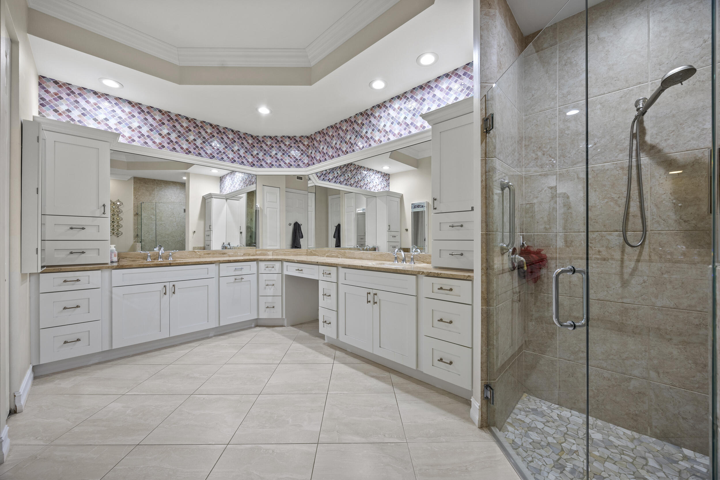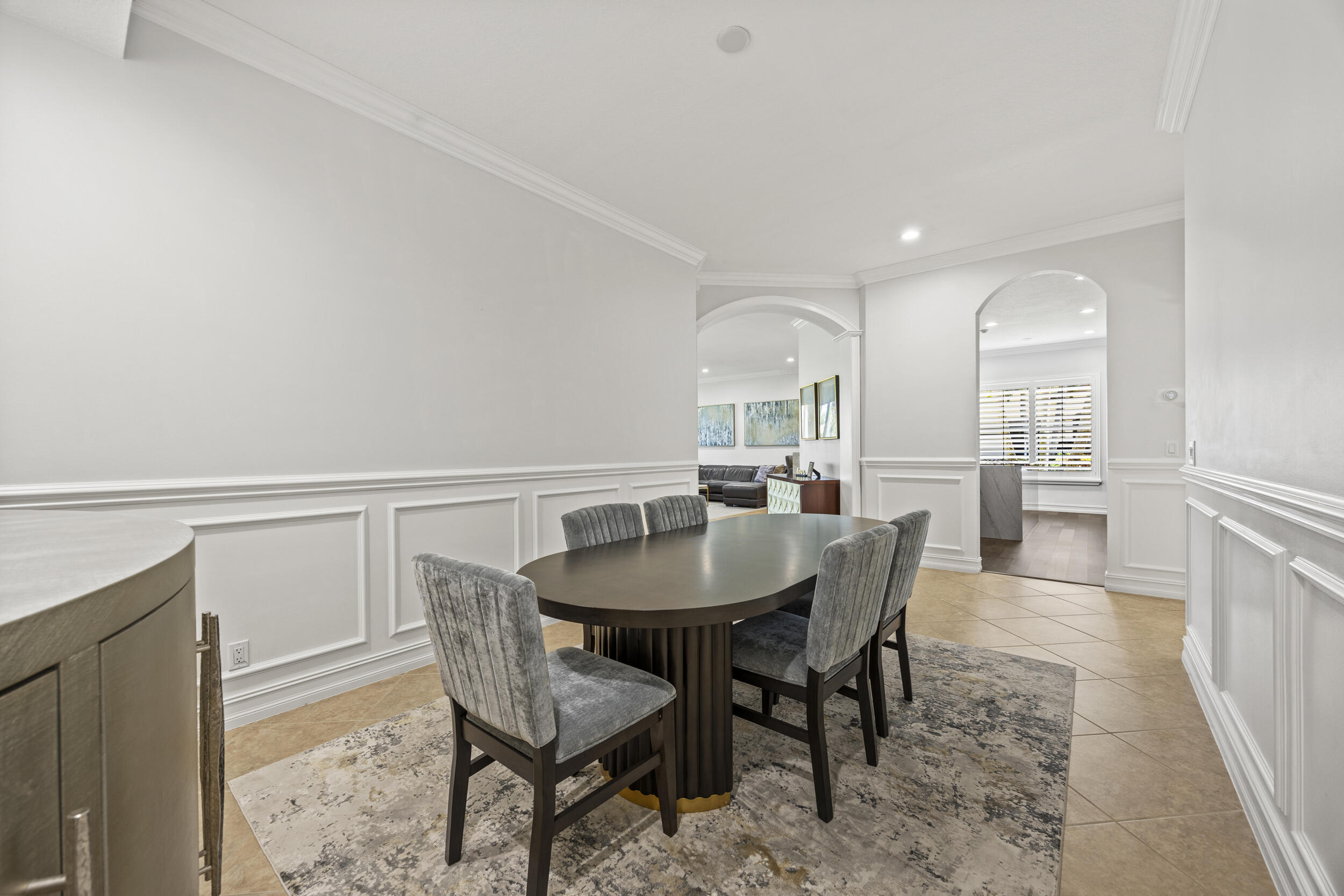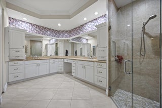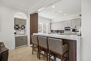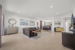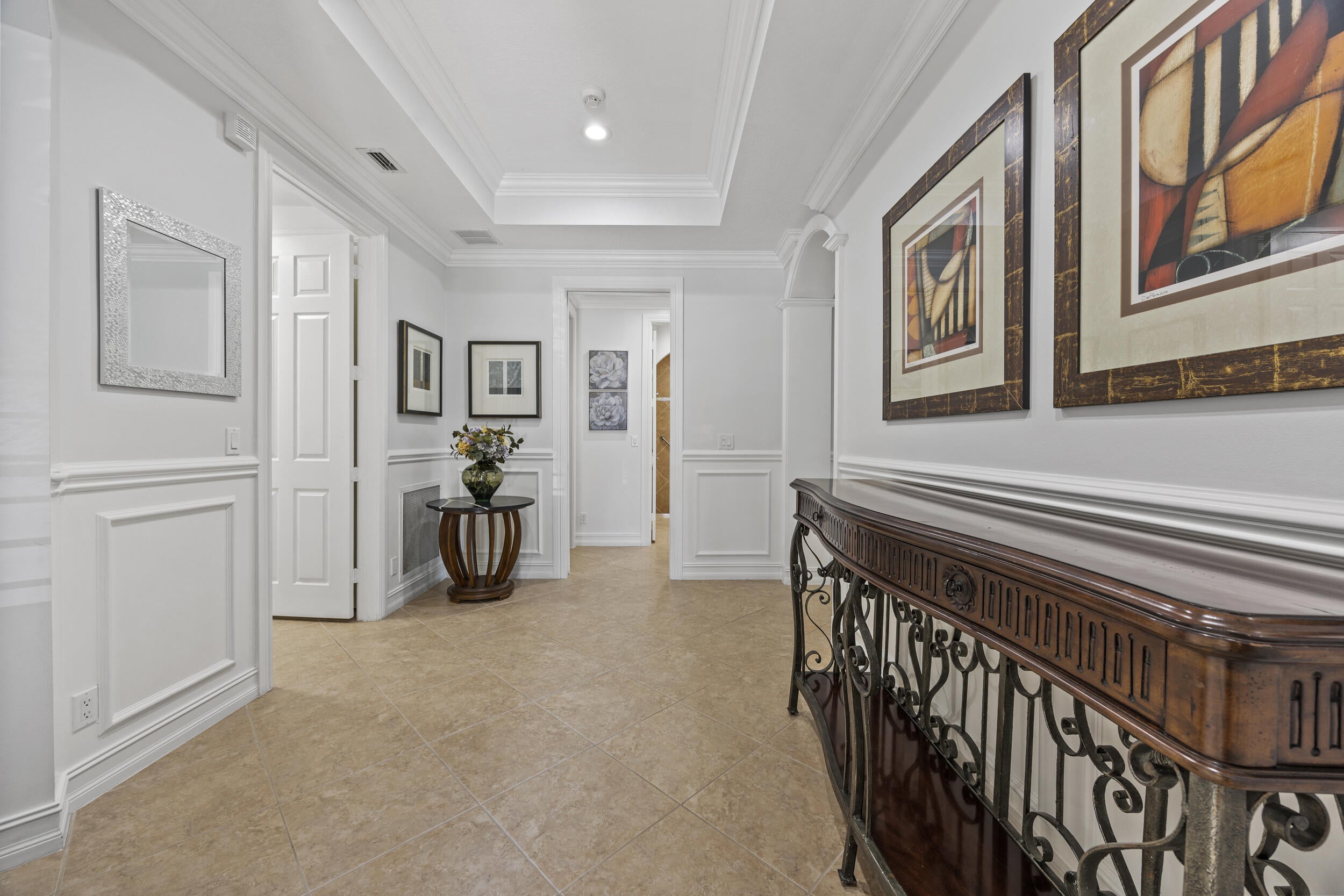 Spectacular golf course view and a fully renovated custom kitchen make this first-floor luxury condo with impact windows a special find. With nearly 2,400 square feet of living space, this 2BR/2BA + DEN home is a must see. Recent renovations include a redesigned kitchen which enhances the great room concept, flow and functionality of the entire space. Luxurious quartzite countertops, Frigidaire Professional appliances, undercabinet lighting, coffee bar and reverse osmosis system are just a few of the things that make this contemporary kitchen a chef's dream. The beautiful and functional dry bar compliments the large open living space, as does the well-appointed dining room. Gorgeous wainscoting, crown molding, millwork, and bright white plantation shutters throughout. Much desired woodfloors have been added to all bedrooms, closets, and den. The primary bedroom is generously sized and has dual walk-in closets while updates to the ensuite bath include: marble countertops, updated vanities, flooring, plumbing fixtures, and frameless shower. Newer LED recessed lighting and ample natural light create a bright and inviting space. The screened patio is a perfect spot for dining or relaxing while taking in the views of the Tradition golf course. The Club at Ibis is an award-winning community that boasts 3 Nicklaus-designed golf courses, 20-acre practice facility, 16 tennis courts, 7 pickle ball courts, 4+ restaurants, fitness center with spa/salon, resort style pool and lap pool. 24-hour gated security and impeccably landscaped grounds. Come enjoy the Florida lifestyle and call 10383 Orchid Reserve your home!