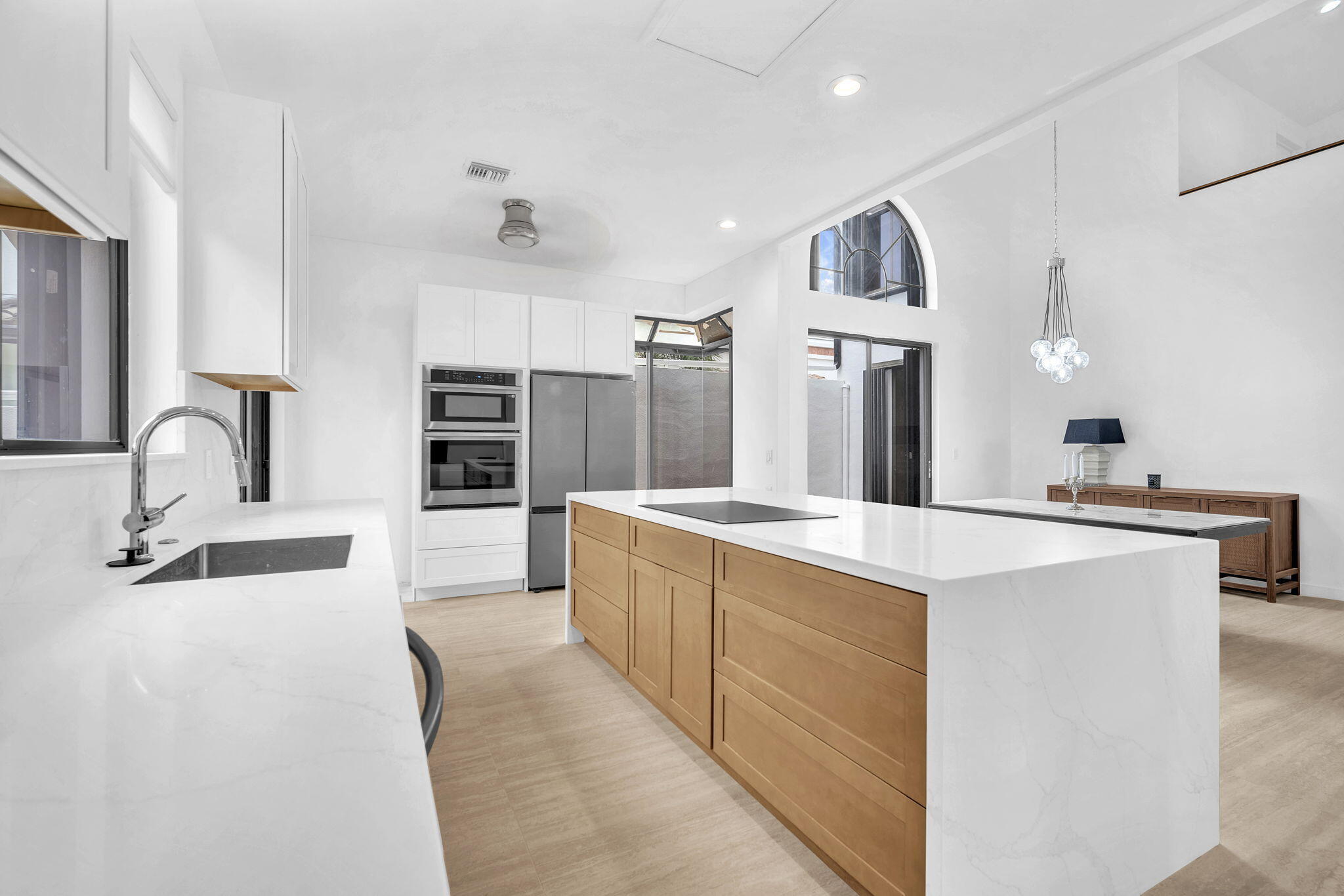 Discover luxury and comfort in this fully renovated 3-bedroom, 2-bathroom home located in the exclusive gated community of Villa Flora at Boca Pointe. Flooded with natural light and designed with soaring ceilings and a sleek open-concept layout, this home is as stylish as it is functional. The designer chef's kitchen is a true centerpiece, featuring quartz countertops, custom cabinetry, and a modern design perfect for both entertaining and everyday living. The spacious primary suite is conveniently situated on the main level, offering both privacy and elegance. This move-in ready home comes fully furnished with high-end finishes and quality furnishings throughout. Additional upgrades include a new AC system, new water heater, roof replaced in 2012, and a 2-car garage.