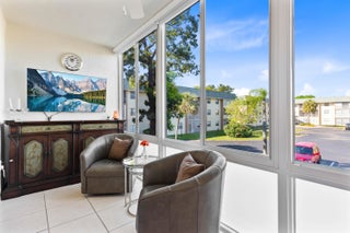 Bright & Airy well-kept 1/1 condo located at Sabal Palm Village in Tamarac, 55+ Community. This immaculate cozy unit is located on the 2nd floor, Large open concept kitchen wooden cabinets w/ additional cabinetry, newer quartz counter tops, under cabinet lighting, SS fridge & white appliances. Tile flooring throughout, A/C 2017, W/Heater 2018, Newer impact hurricane windows. Large M/bedroom w/ custom wall closet (great for extra storing) & walk-in. Enclosed patio features impact windows, electric blinds with remote - Can be used as a Den/Office. Laundry room on premises located on same floor, unit comes w/ extra storage. The association offers a clubhouse with library, fitness room, heated pool, BBQ area & tennis courts etc. Secured Lobby. Mins to Turnpike, Shopping Plazas and Restaurants