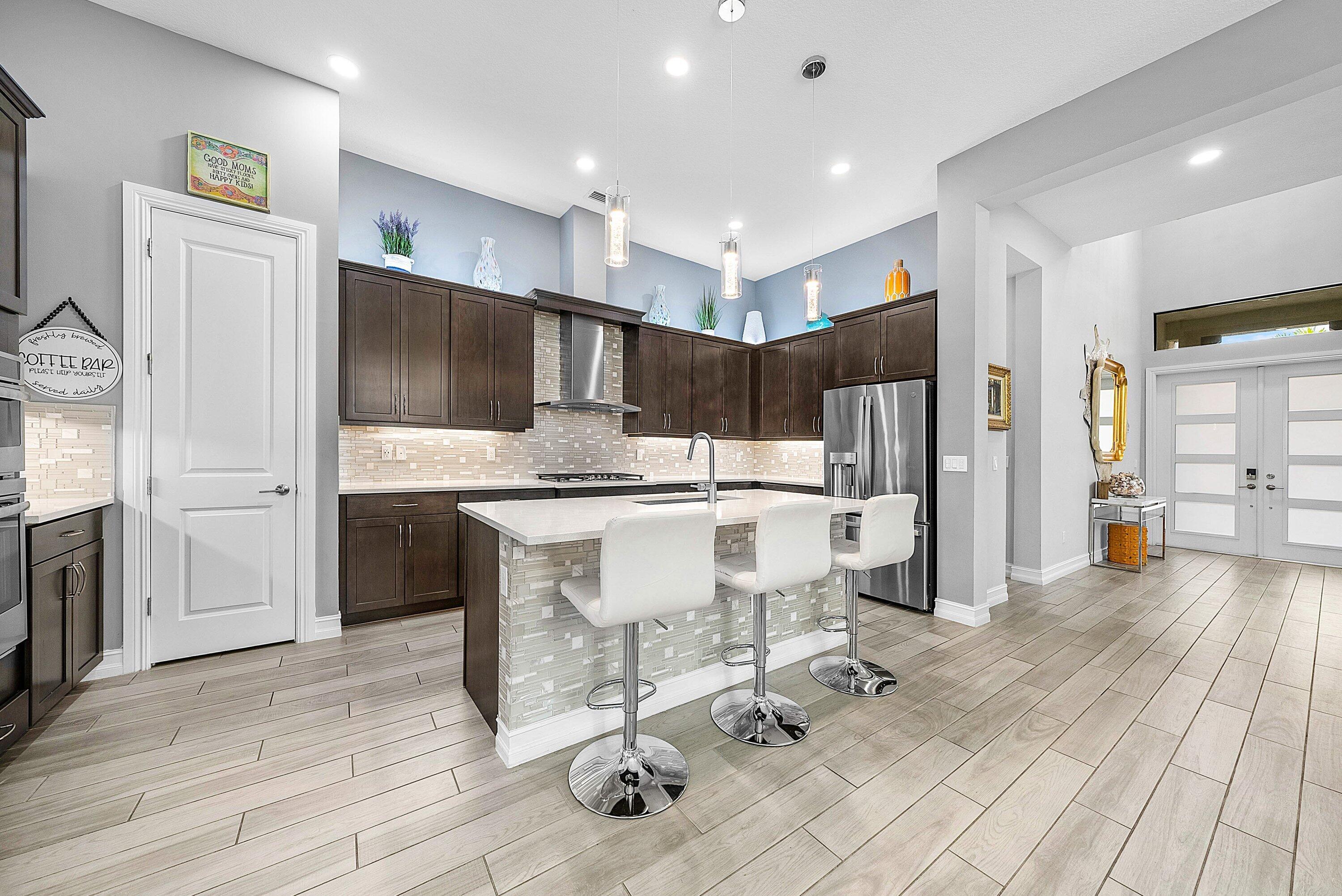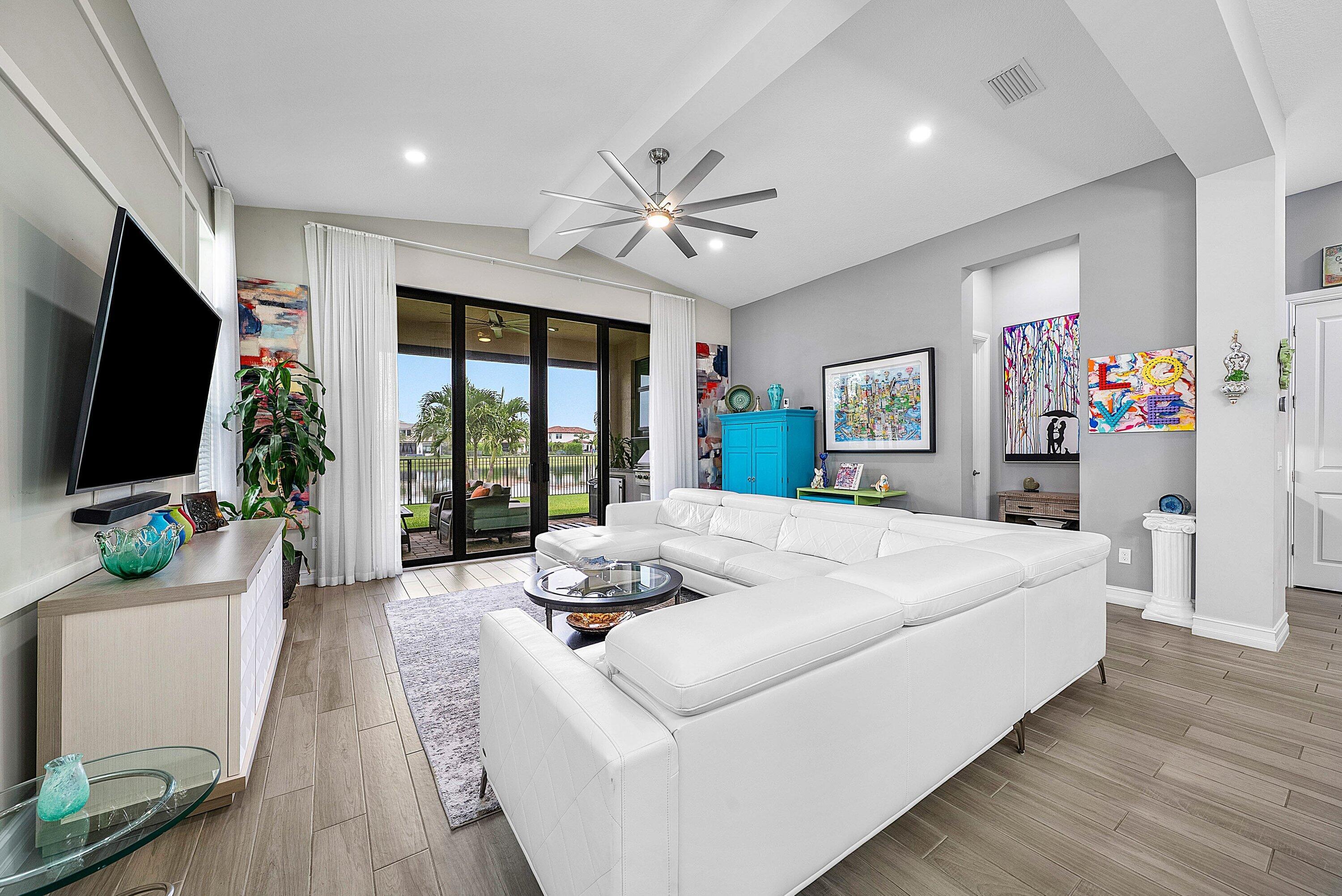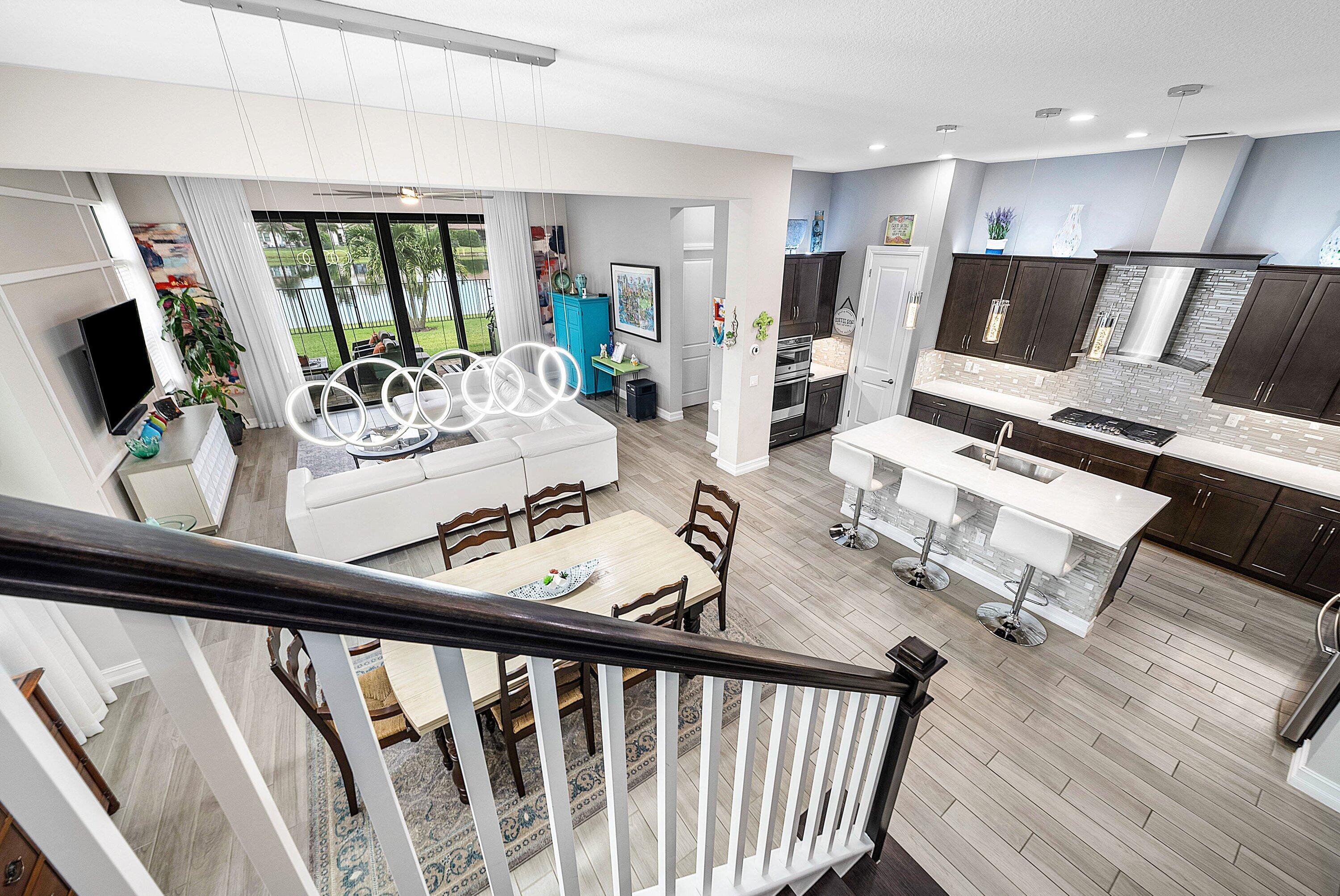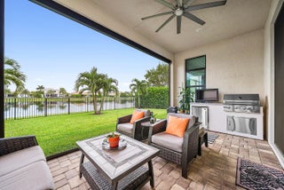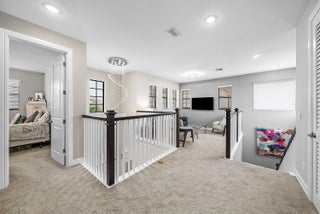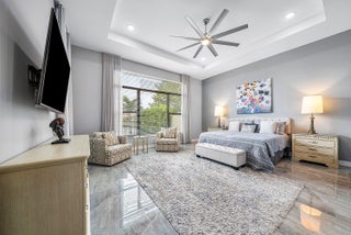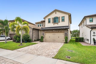 Elegantly upgraded stunning lakefront home impresses from the moment you step inside w/t soaring 20ft foyer & elevated ceilings. Gourmet chef's kitchen boasts a gas cooktop, wall oven, walk-in pantry & designer lighting. The expanded ground-floor master suite features serene lake views, custom walk-in closets and & luxurious spa-inspired bath. Upstairs offers a spacious loft & 2 bedrooms/2 baths. Additional highlights include full house generator, impact windows, retractable screen, custom closets, whole house water filtration, overhead garage storage & more. Palm Meadows is a guard-gated community offering resort-style amenities: clubhouse, fitness center, aerobic room, pool/hot tub, kiddie pool, splash zone, playroom, tennis, pickleball, indoor basketball, playground & covered BBQ area.