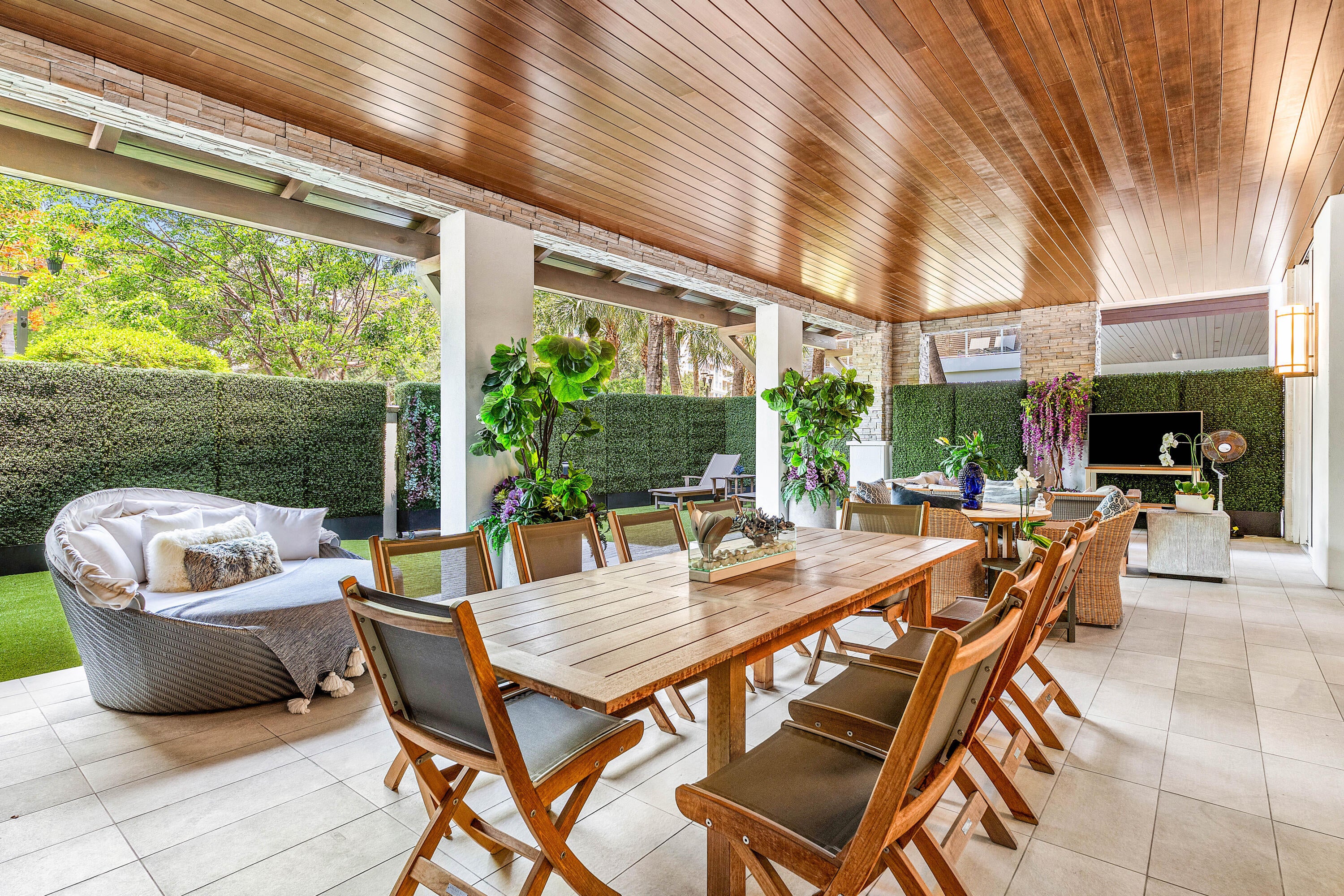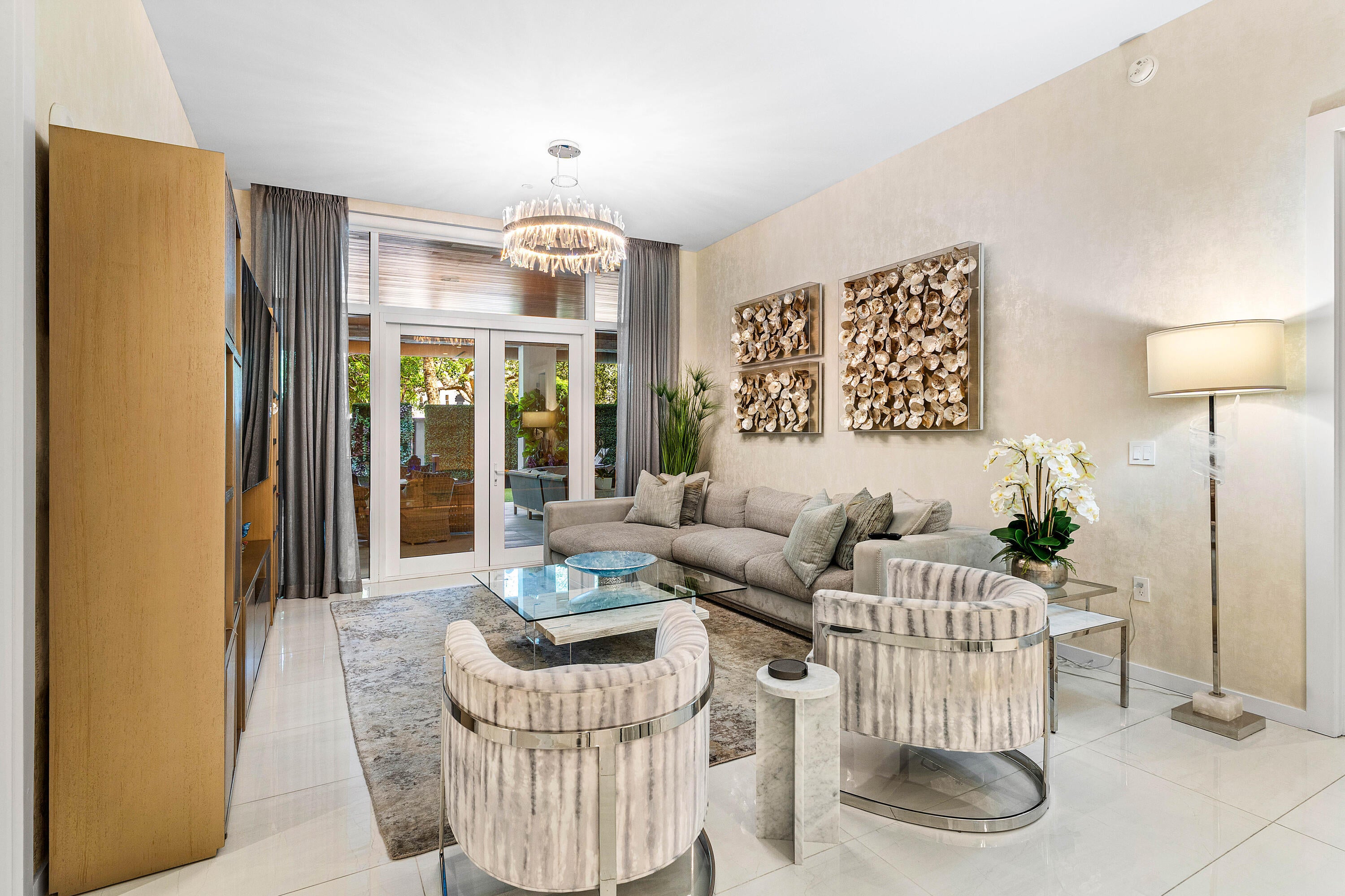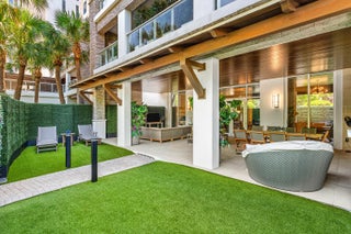 FANTASTIC GROUND FLOOR VILLA OFFERS AN INCREDIBLE OVERSIZE OUTDOOR PATIO, WITH DOG-FRIENDLY TURF AND 7-FOOT HIGH HEDGES FOR COMPLETE PRIVACY. EASY ACCESS TO OUTSIDE. 2 BEDROOMS PLUS DEN PROFESSIONALLY DECORATED WITH WALLPAPER.BIG OUTDOOR LIVING SPACE., 11-FOOT CEILINGS: NO STAIRS OR ELEVATOR, NEARBY GARAGE. WALK TO BEACH, MIZNER PARK, AND MULTITUDE OF NEARBY RESTAURANTS AND SHOPS. INCREDIBLE LIFESTYLE IS AWAITING YOU. 24-HOUR SECURITY, FITNESS CENTER, SPA, POOL, PUTTING GREEN, CLUBROOM, AND MORE