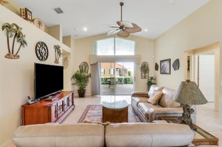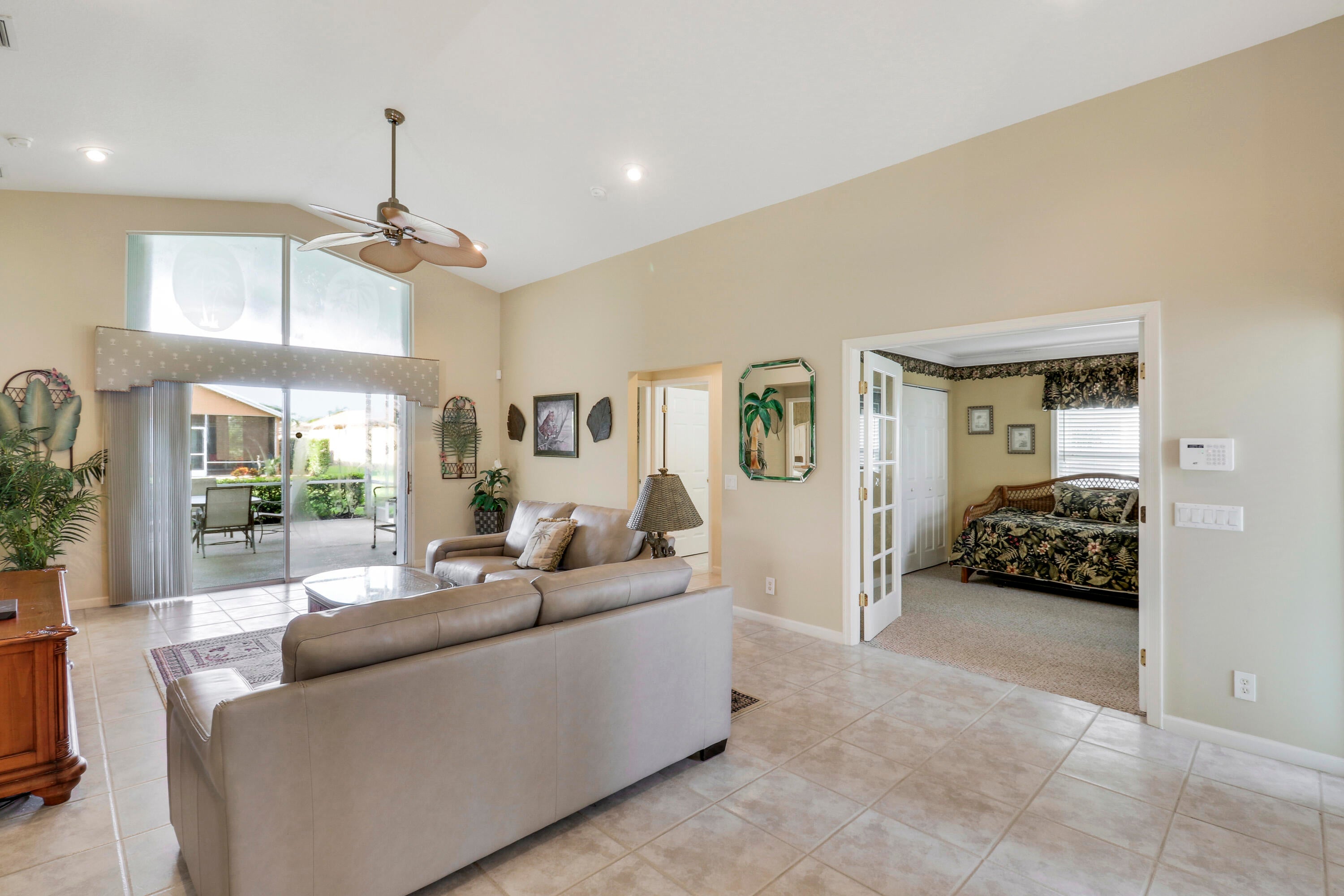 Welcome to your Florida getaway! This 3BR/2BA/2CG home in the St. Lucie Falls 55+ community offers a split floor plan with vaulted ceilings and open living spaces. The kitchen features granite countertops, tile backsplash, stainless steel appliances, and a breakfast bar. The primary suite includes a walk-in closet and private bath with dual sinks and walk-in shower. Enjoy the large extended screened patio, perfect for entertaining or relaxing in the Florida breeze. For added peace of mind, the home is prewired for a generator and includes a 12,000-watt dual fuel (gas/propane) portable generator. New A/C (2023). Resort-style amenities include 2 pools, clubhouse, tennis, pickleball, fitness, billiards, bocce, gated boat/RV storage, a community boat launch, and endless activities