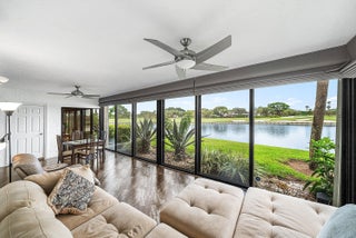 Fully furnished, first-floor, true 3-bedroom condo with ultra-premium views in Eastgate at Hunters Run Country Club. This updated residence spans 2,106 square feet, offering an extended living room and stunning panoramic views of the water and East golf course. The interior is thoughtfully designed, featuring recessed lighting, crown molding, porcelain tile flooring, and plush carpeted bedrooms. The eat-in kitchen includes stainless steel appliances, an updated washer & dryer, and easy access to the open patio, perfect for outdoor dining and golf cart parking! The oversized primary suite impresses with a huge walk-in closet and an ensuite bathroom. The guest bedroom and den/3rd bedroom provide generous accommodations for all of your guests. Make this your home at Hunters Run today!Experience world-class Country Club living at Hunters Run. Featuring 54 holes of championship golf (with a brand new East Course designed by Kip Schulties), 18 har-tru tennis courts, 12 pickleball courts, resort-style clubhouse and pool, salon & spa, state of the art fitness center, six dining venues and so much more.