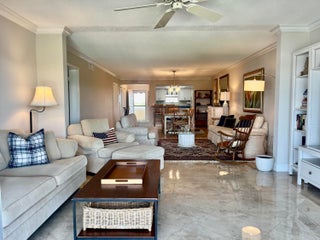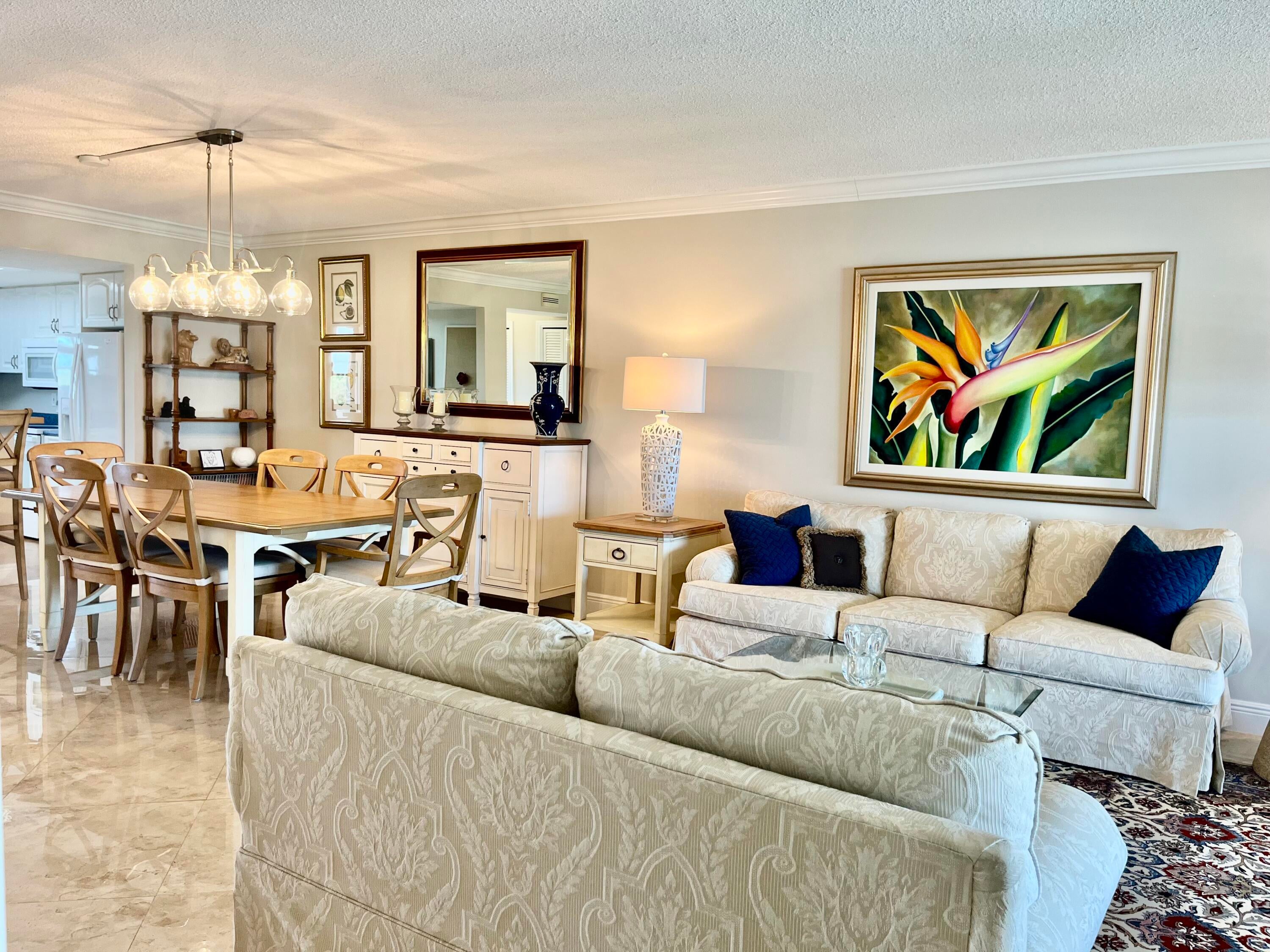 Fabulous, spacious 2/2 Penthouse with sweeping golf & lake views is move-in ready! Corner location allows for natural light to stream through impact glass windows. Enjoy the tropical breezes and beautiful views from the covered and screened lanai, which runs the width of the condo. Kitchen is tastefully appointed with newer countertops, a breakfast bar and views all the way to WPB! Two living areas beyond the dining room make for comfortable entertaining or daily living. Large primary suite opens to lanai. Guest room, bath & laundry closet in private area. Covered & assigned parking spot with extra guest spots. Sherbrooke community room & pool. Two golf courses. JFK Hospital, PBI & beaches close by. Furniture negotiable. Perfect retreat for seasonal or year round living! Come see today!
