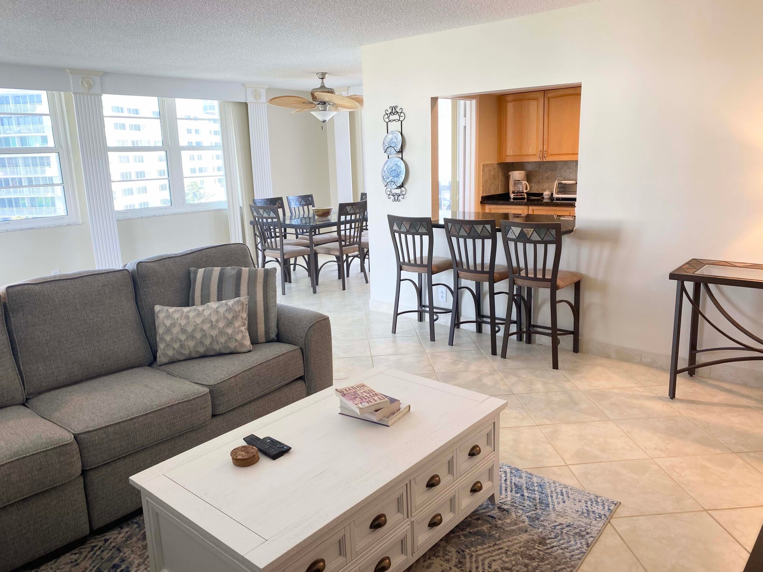 Ocean views from the east balcony and city views from the west balcony of this 2 bedroom/2 bath cornerunit ready for seasonal rental available November 1. Washer/dryer in unit. Covered parking. Tuscany is anoceanfront building in South Palm Beach close to shopping, restaurants, golf courses and all Palm Beach has to offer.