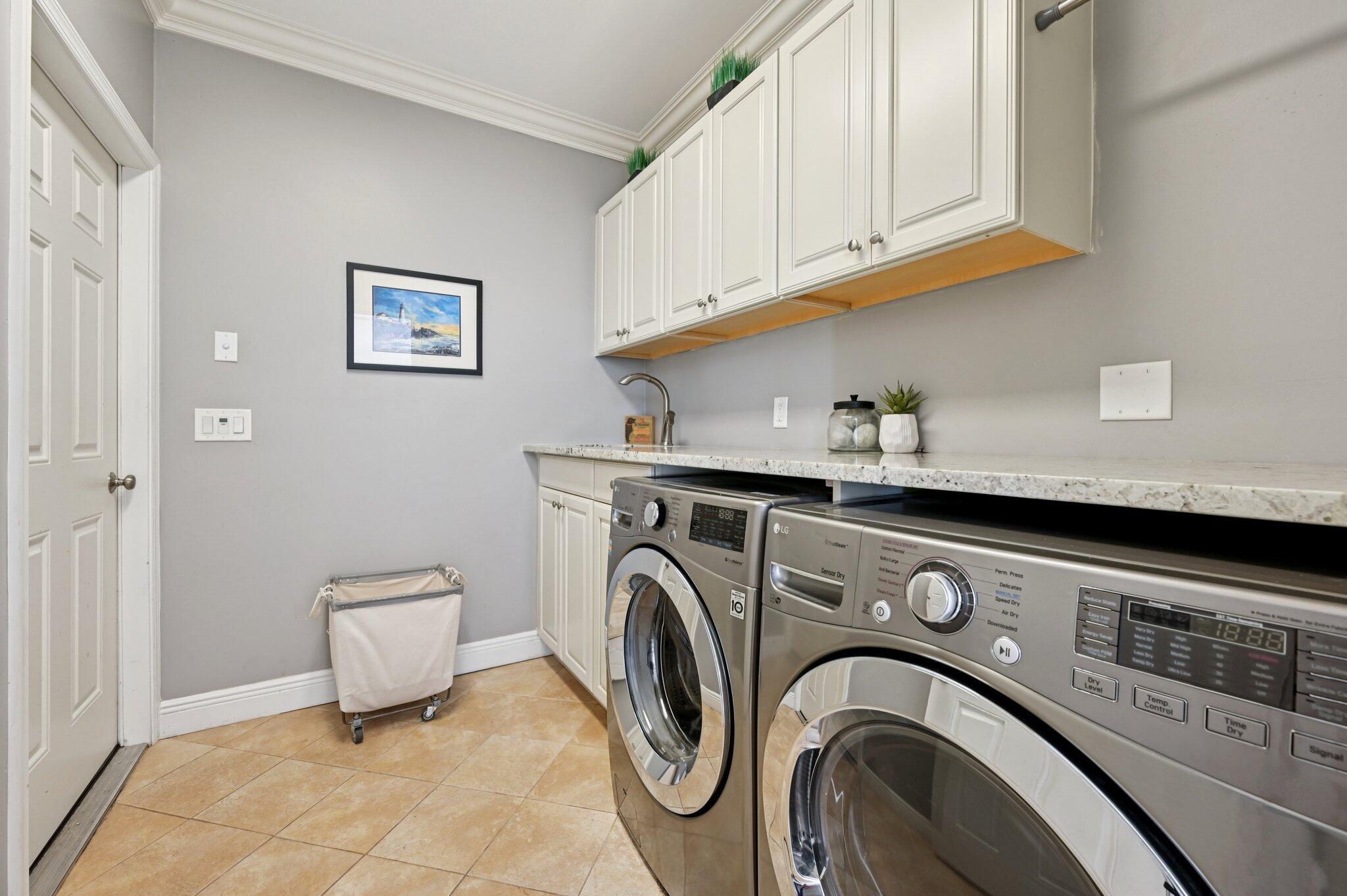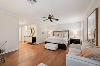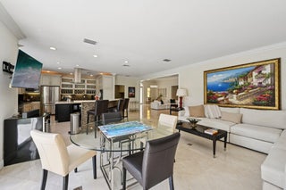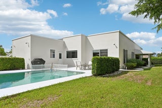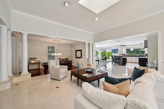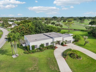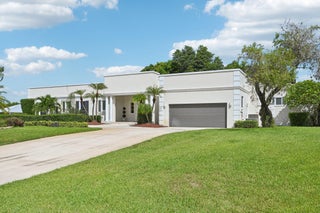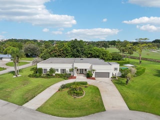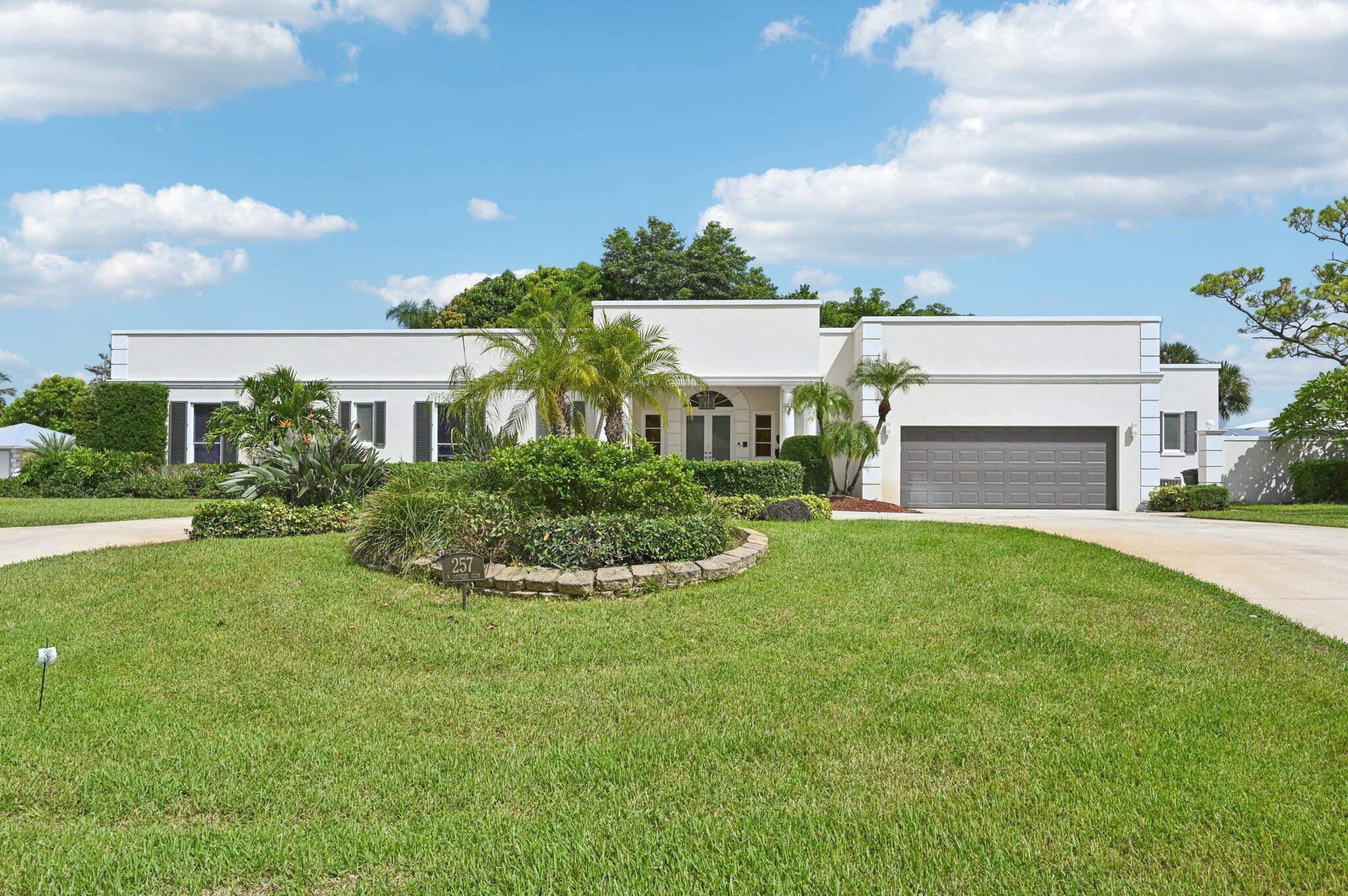 Welcome to 257 Country Club Drive in the gated community of Atlantis! This 4-bedroom, 5-bath estate features soaring ceilings, and marble floors. This Palm Beach Regency style home boasts a huge open floorplan with split bedrooms. Every bedroom is en suite, with wood flooring in the master. Enjoy stunning private golf course and waterfront views, plus a huge pool, outdoor bar, and spacious veranda--perfect for entertaining. The fenced backyard, circular drive, and 2-car garage add convenience, while the cul-de-sac location ensures privacy. Golf cart-friendly and move-in ready, this home offers the best of luxury Florida living.