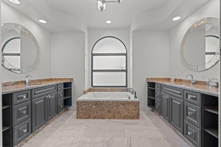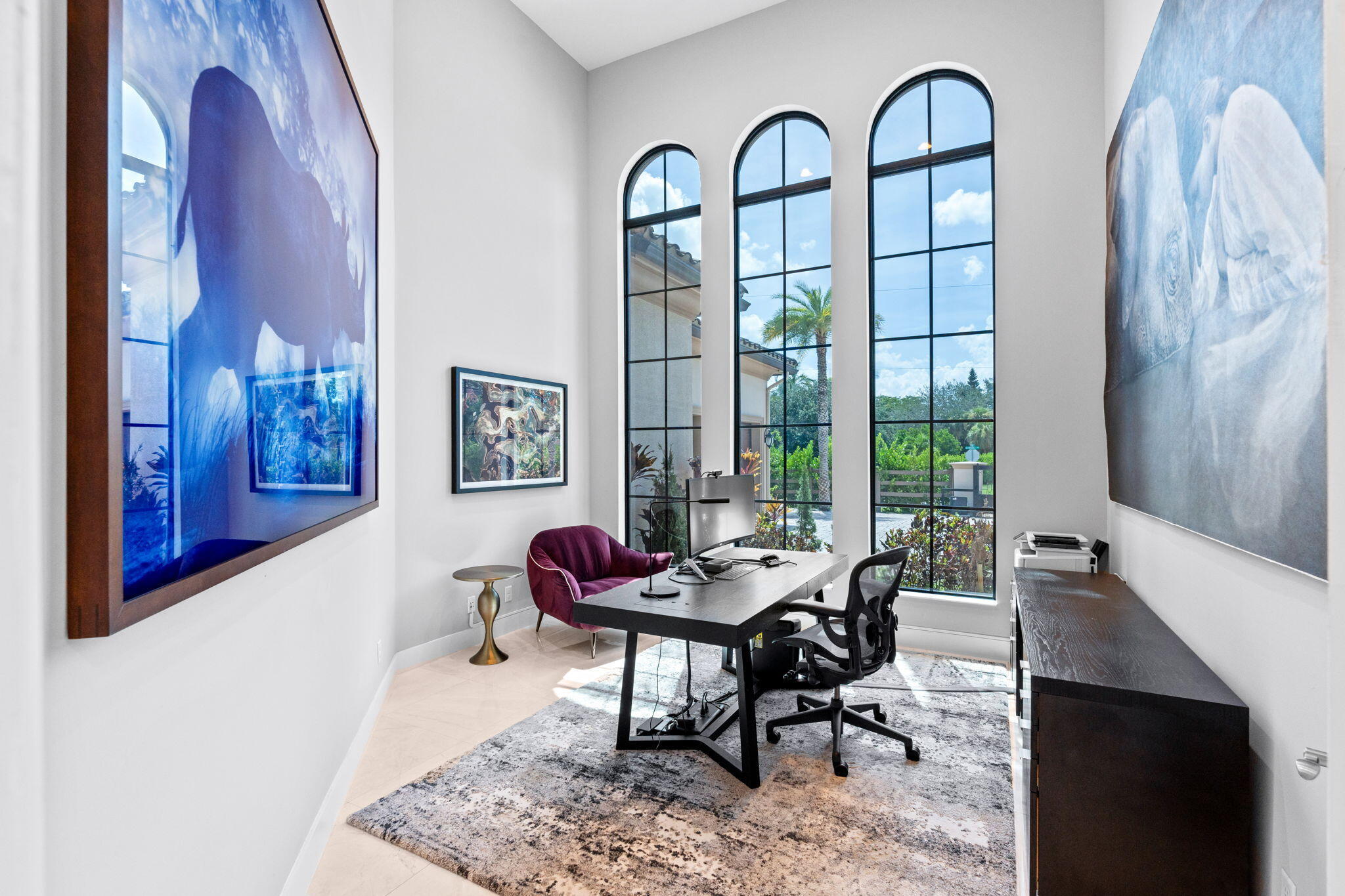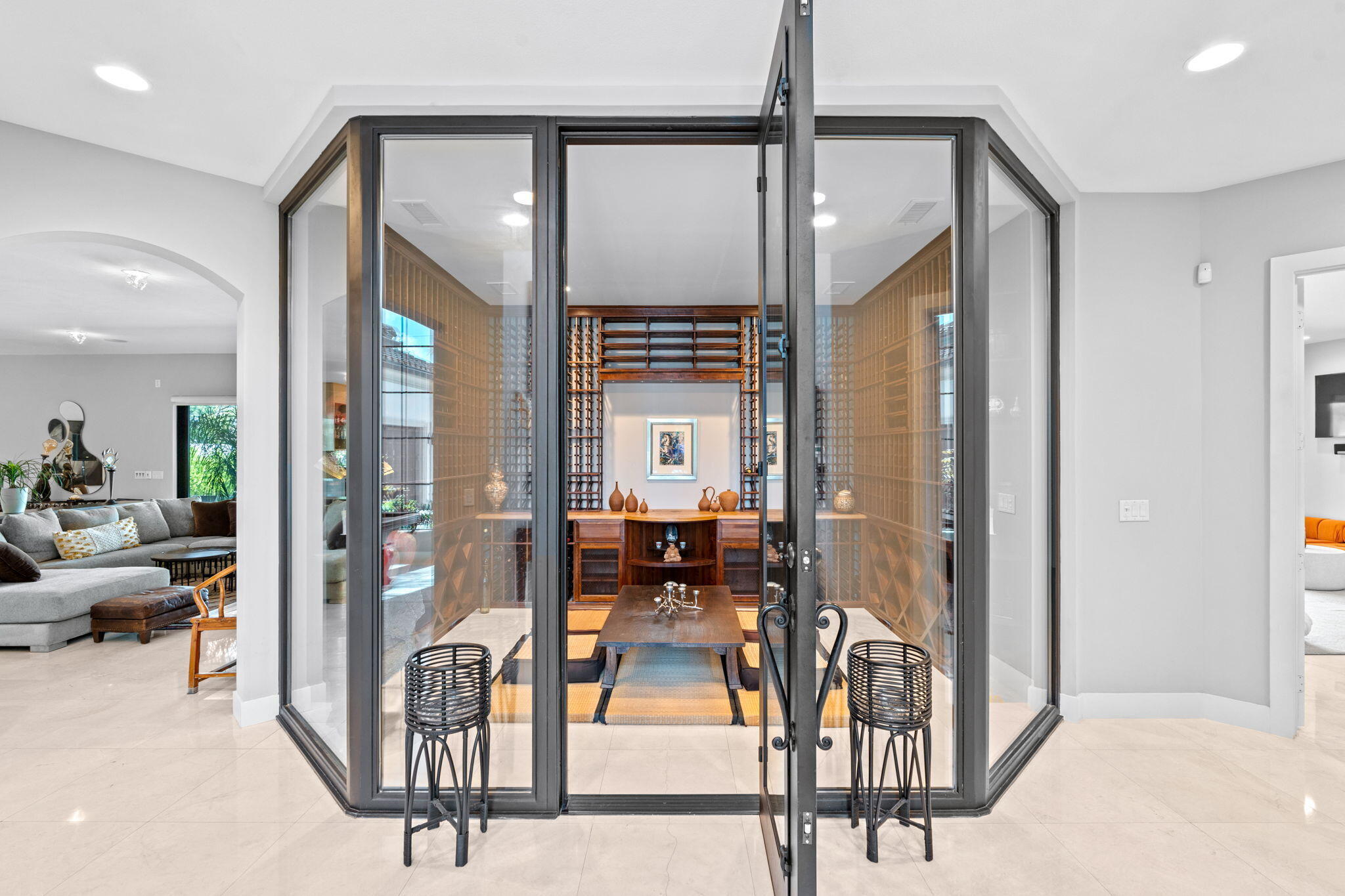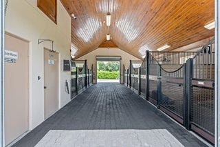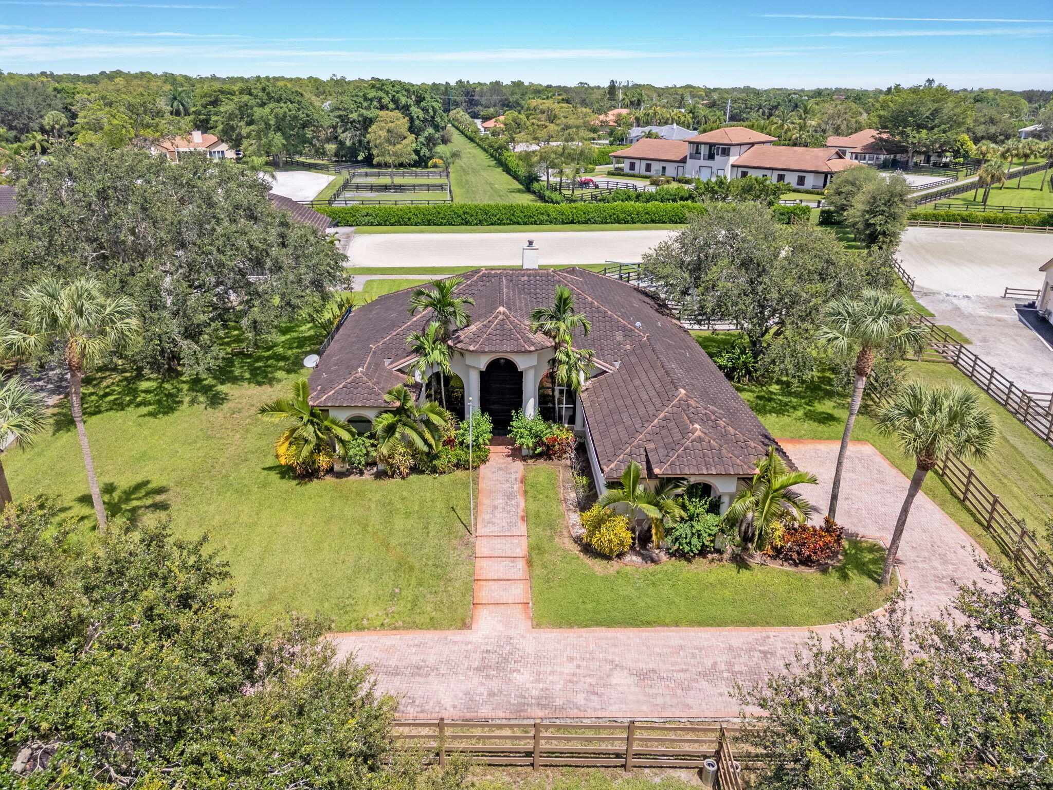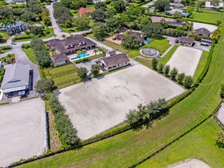 An equestrian dream opportunity: two adjoining properties totaling 3.75 acres with world-class equestrian facilities, including a fully equipped 7-stall barn with tack, feed, laundry, and full bath; a 5-stall barn with tack and feed rooms; multiple wash stalls; two sand arenas; a hot walker; and five paddocks. Three gated driveways and mature landscaping provide privacy and ease of access, just minutes from the Wellington International, Global Dressage venues, and Wellington's dining and shopping--perfectly timed for show season.The main residence is a modern entertainer's dream with bright, wide-open spaces, soaring ceilings, and nearly floor-to-ceiling windows. The entry leads into a striking, one-of-a-kind wine room. Italian marble and wood flooring flow throughout,complemented by a custom office, formal dining, a gorgeous loft, and a spectacular kitchen with a huge center island, custom cabinetry, and a double pantry. An elegant indoor bar provides a separate space for entertaining. The main-level primary suite is a luxurious retreat with dual spa-inspired bathrooms, a freestanding soaking tub, double vanities, a huge walk-in shower, a sitting area, an oversized closet, and a cabana-style bath. Living areas open to a resort-style pool with summer kitchen, putting green, and cabana bath. A 4-car garage, coffee bar, and state-of-the-art laundry with automated lighting complete the residence. A separate 1-bedroom apartment with a full kitchen and laundry provides private guest or staff accommodations. The second residence offers 3 bedrooms, 2 baths, an office, formal dining, partial hurricane-impact windows, its own pool, a detached studio efficiency, and a 3-car garage. This rare Wellington property blends luxury living with exceptional equestrian amenities, offering an unparalleled lifestyle for entertaining, leisure, and equestrian pursuits.