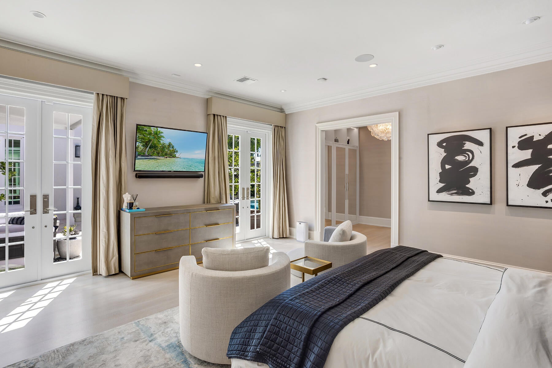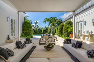 Tucked away on one of Palm Beach's most coveted cul-de-sacs and just a short stroll from the vibrancy of town, 134 Casa Bendita is a turn-key and timeless architectural jewel that seamlessly blends classic elegance with modern sophistication.From the moment you arrive, this stunning home captivates with its impressive street appeal, a grand facade, and meticulously curated designer landscaping that sets the tone for what lies within. Step inside to soaring 18-foot ceilings and a voluminous, sun-drenched great room, a true showstopper - and the heart of the home - which is both dramatic and inviting. Providing unparalleled indoor-to-outdoor living on an oversized lot, the residence is perfectly suited for both refined entertaining and quiet repose.The spectacular chef's kitchen, outfitted with premium Wolf and Sub-Zero appliances, sleek custom cabinetry, and a generous island ideal for culinary pursuits, pairs with an adjacent butler's pantry to enhance functionality and ensure seamless entertaining. Offering four bedrooms and four and a half baths, every room is thoughtfully proportioned and exquisitely finished. A beautiful wine cellar and multiple outdoor entertaining areas set amidst an expansive oversized lot elevate the lifestyle here. The grounds are a tropical haven, complete with lush landscaping, private lounging spaces, and tranquil garden paths. Additional features include a pristine two-car garage, a discreet enclosed carport, and a host of bespoke finishes throughout that speak to the home's enduring sophistication and attention to detail. Capturing the true essence of quintessential Palm Beach Island living, this move-in ready oasis offers the rare combination of privacy, an A++ near North End location, and timeless design - all creating a legacy residence. And it is all just steps to the Lake Trail, deeded beach access, and the idyllic town of Palm Beach.