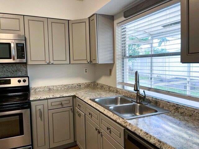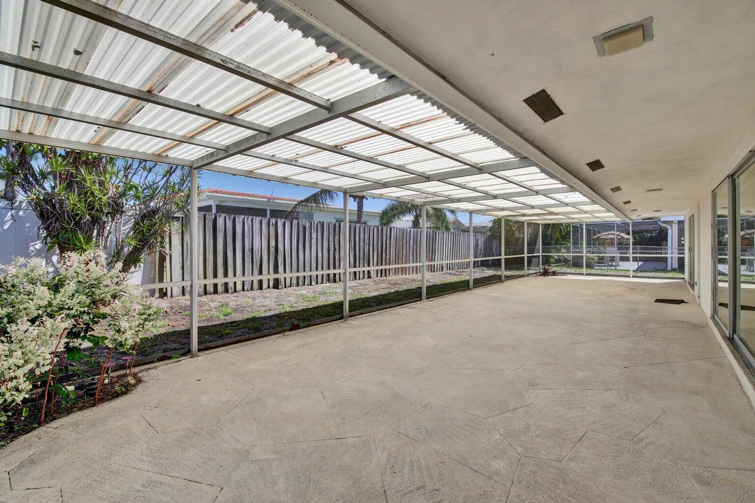 This charming East Boca Raton home has a very large and open floor plan with terrazzo flooring throughout, cove ceilings, large closets and a freshly painted interior. Two nicely sized bedrooms with plus newly updated bathrooms and newly updated kitchen. Additional features include a new AC, very large screened and covered patio on back of home that runs the entire width of home plus a one car garage. No HOA plus all ''A'' rated schools.